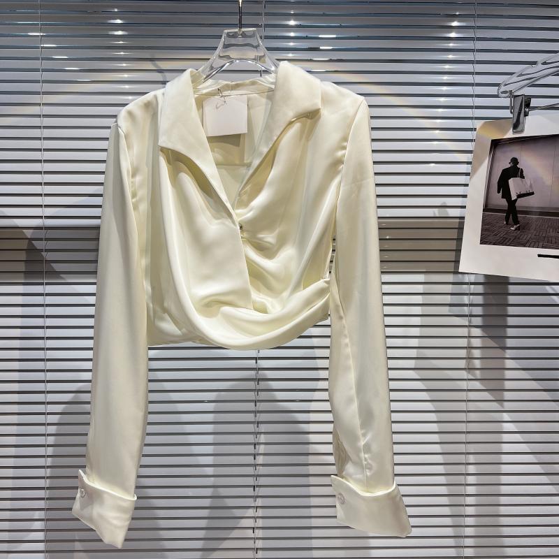 インターネットセレブと同じスタイル 2024 春の新スタイル小さな香りのよい私服セレブ気質 V ネックシルクショートシャツシャツ女性 スプリング 春物 Vネック gyan3357386701397 | vestitialla