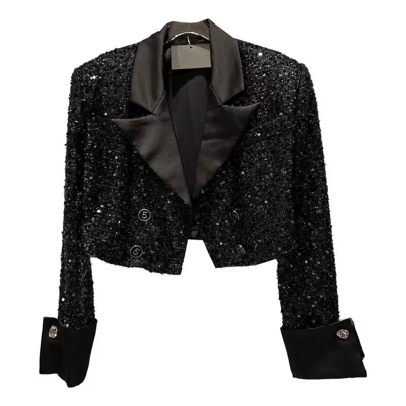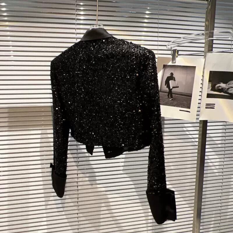 インターネットセレブの同じスタイル2024春の新しいスタイルスパンコールと絹のような気質がいっぱいの小さな香りのスタイルセレブショートコートスーツスーツ スプリング 春物 シルキー gyan3341306505531 | vestitialla