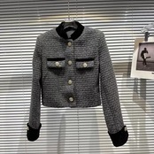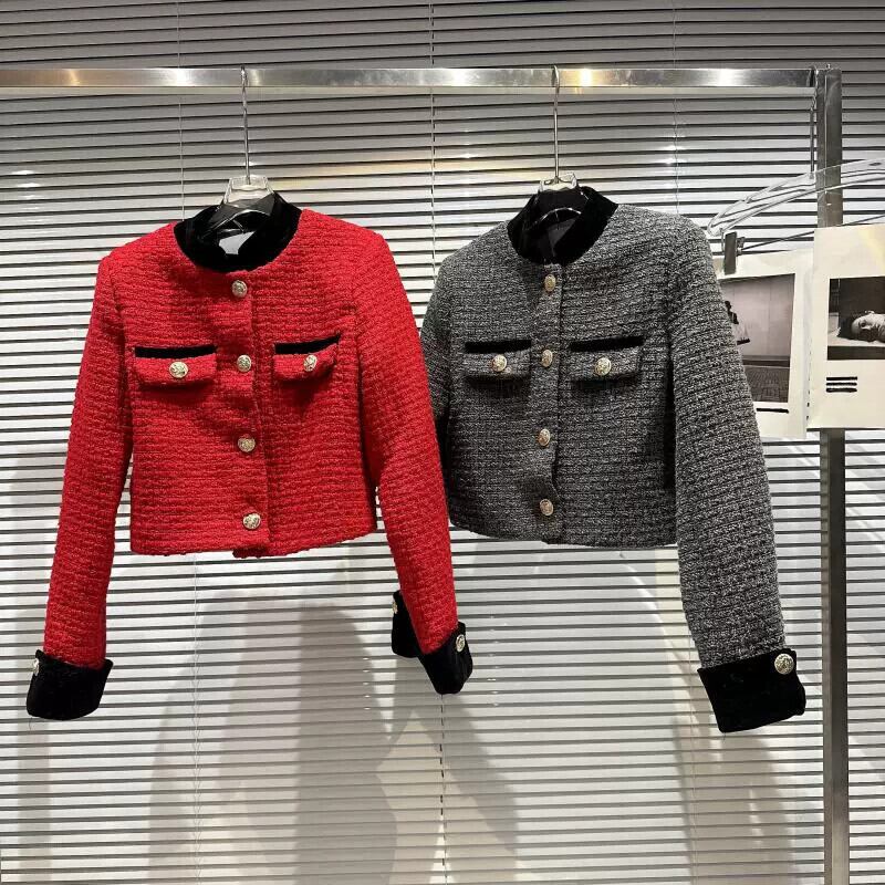 インターネット有名人の同じスタイル2024新しい冬スタイル小さな香りのスタイルレトロメタルバックルツイードショートジャケット、ロールスリーブとショルダーパッド付き ウィンター 冬物 gyan3366340888565 | vestitialla
