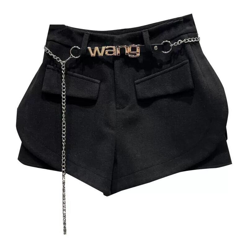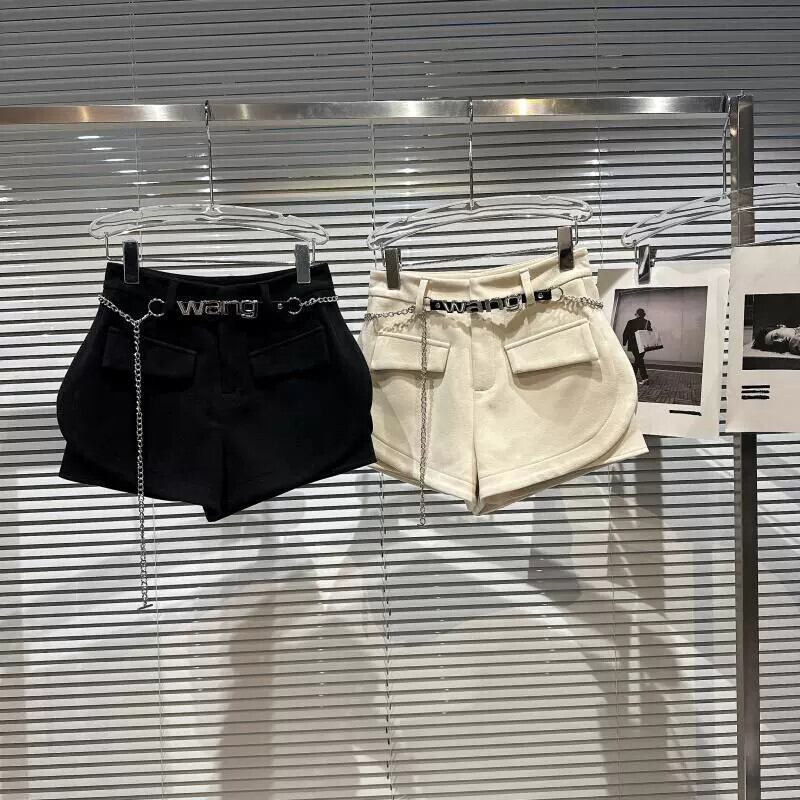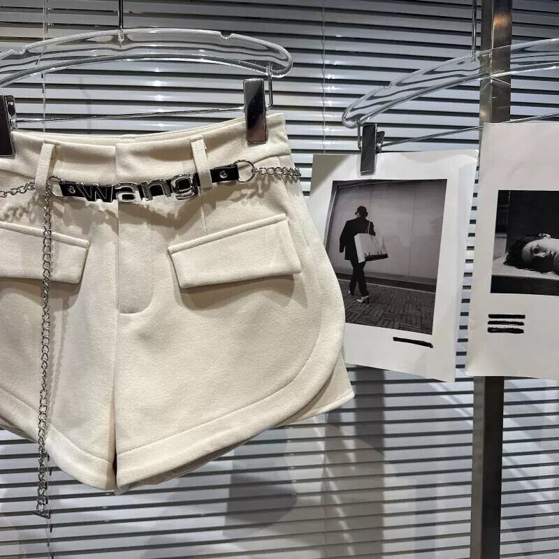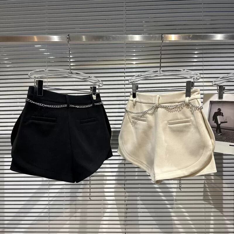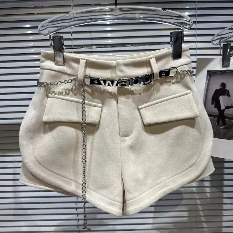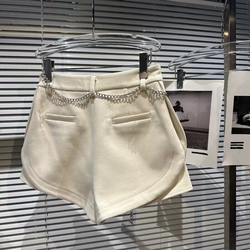 インターネットセレブと同じスタイル 2024 春の新スタイル小さな香りのスタイルメタルレターウエストチェーン立体ポケット 3 点ウールショーツ女性 スプリング 春物 ブルマー gyan3391841215610 | vestitialla