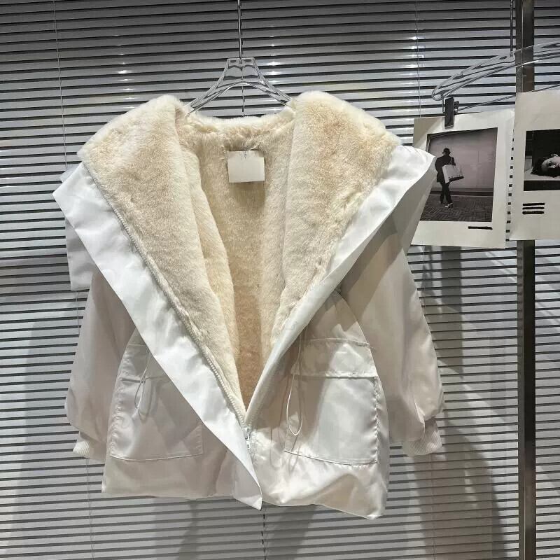 インターネット有名人同様の2024冬新スタイルストリートネイビーカラードローストリングウエストプラスベルベットパイ克服ウインドブレーカー厚手のコート ウィンター 冬物 gyan3347749341851 | vestitialla