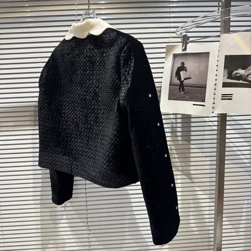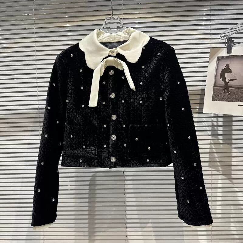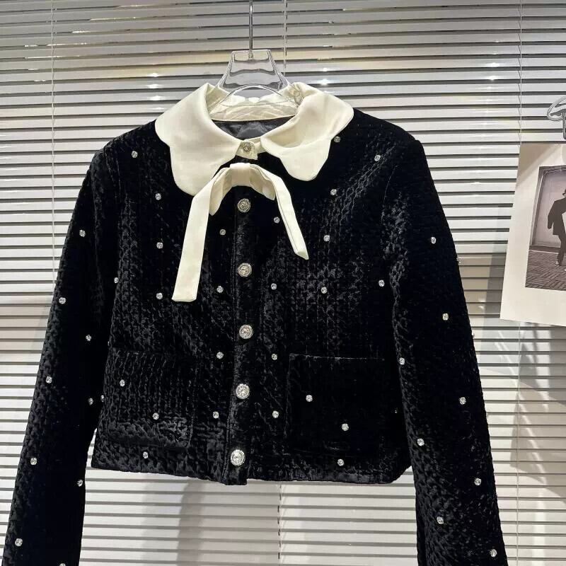 インターネット有名人の同じスタイル、大きな目、大きな店、小さな香りのスタイル、粒子ラインストーン、シルクの弓襟、ベルベットのプレスコットンショートジャケット リボン gyan3321643446657 | vestitialla
