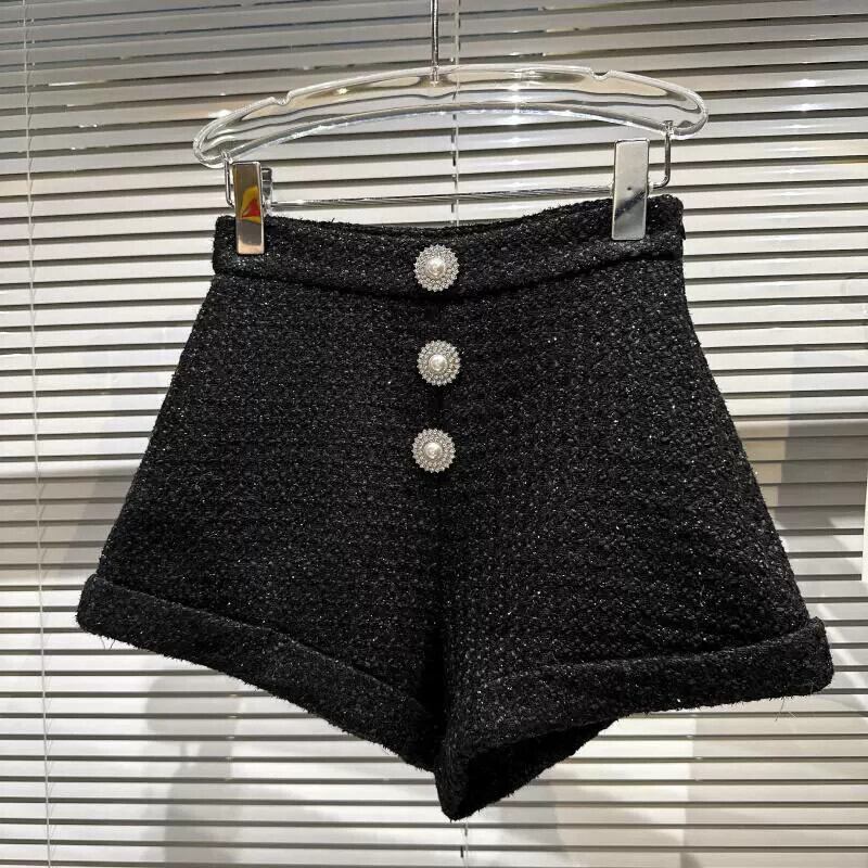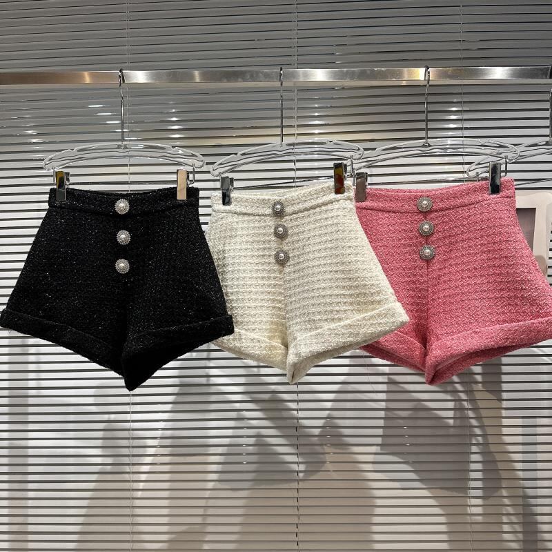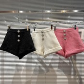 インターネットセレブの同じスタイル2024春の新しいスタイルの小さな香りの良い私服セレブパールボタンツイードカフス七分パンツショーツ スプリング 春物 ブルマー 真珠 gyan3375842949781 | vestitialla