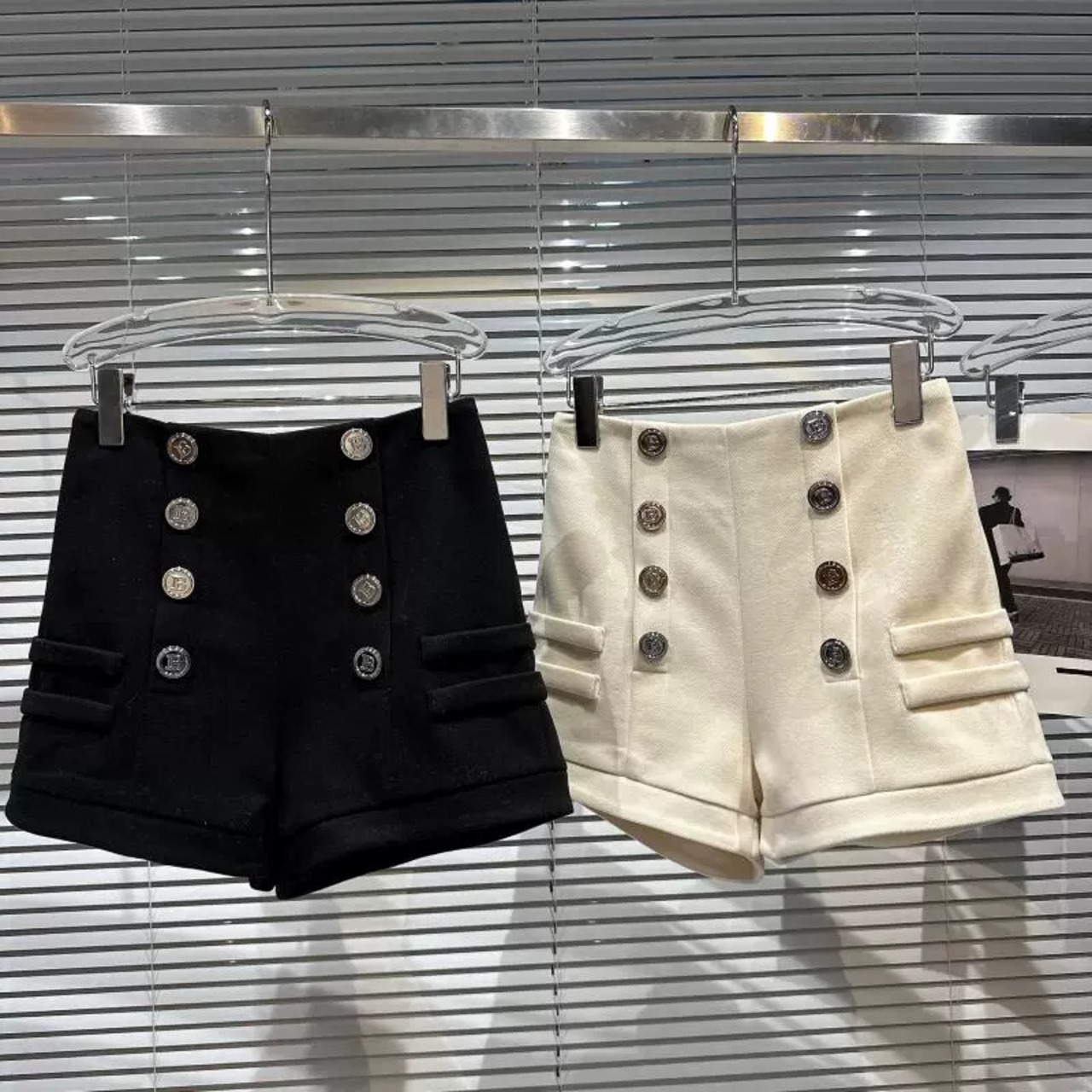 インターネット有名人の同じスタイル2024春の新しい小さな香りのスタイルサイドポケット二列メタルバックル気質ウール3点ショーツ スプリング 春物 ブルマー gyan3350392798823 | vestitialla