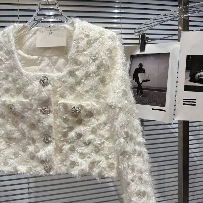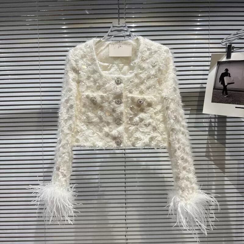 ネットセレブ同様2024春新スタイルフレンチスタイル高精細ダイヤモンドボタンフェザーファー袖スパンコールキルティングショートジャケット スプリング 春物 gyan3316420624847 | vestitialla