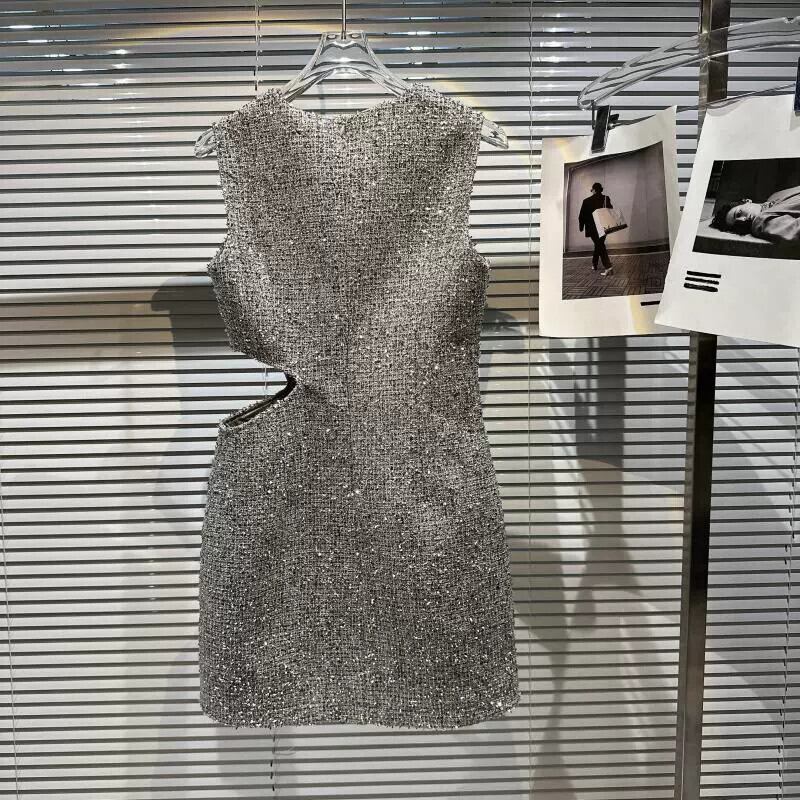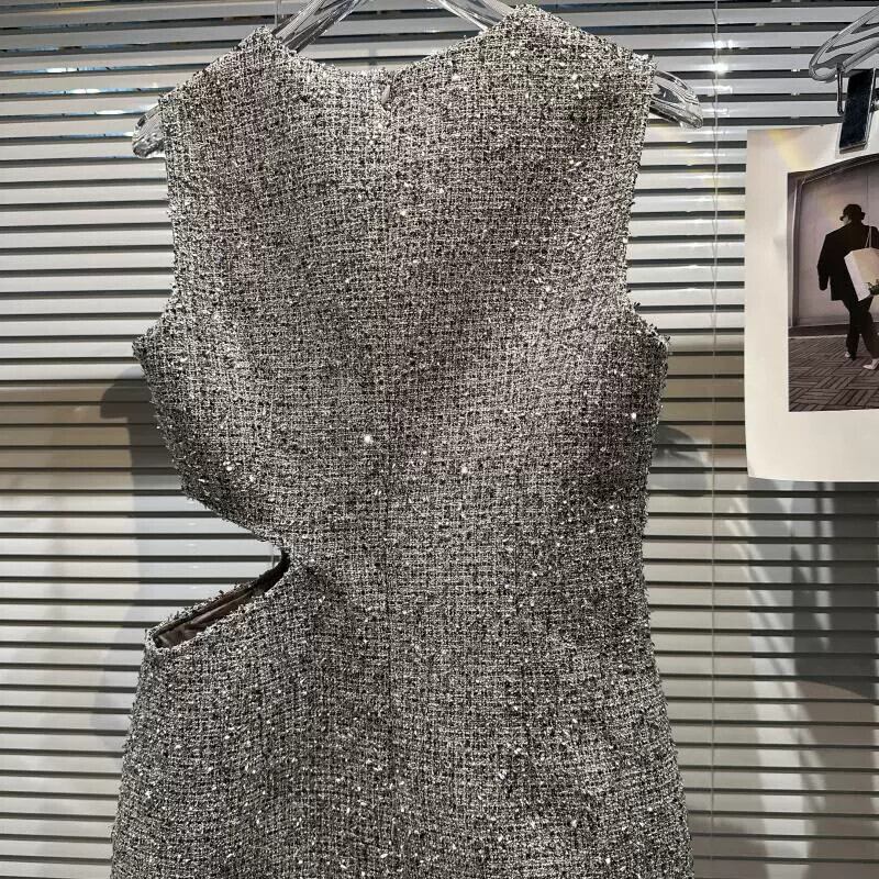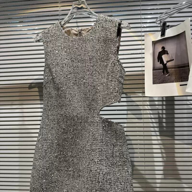 インターネットセレブの同じスタイル2024春の新スタイル小さな香りのスタイル中空ウエスト露出明るいシルク生地の気質セレブドレスの女性 スプリング 春物 gyan3385794307174 | vestitialla