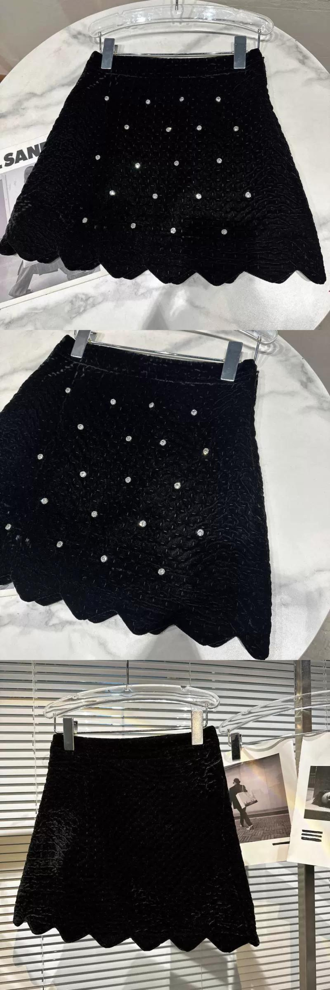 大きな目のネットセレブ、大きなショップ、小さなフレグランススタイル、ラインストーンビーズ、波状のエッジのベルベットのヒップカバースカート、短いスカートの女性 ショート gyan3334536794390 | vestitialla