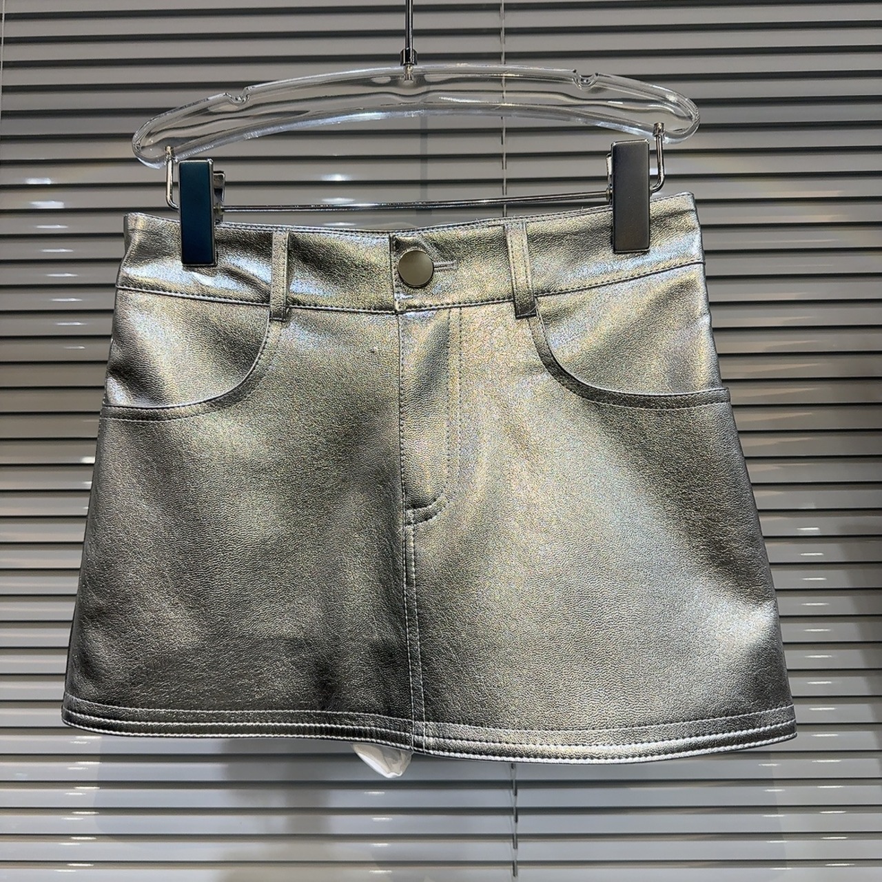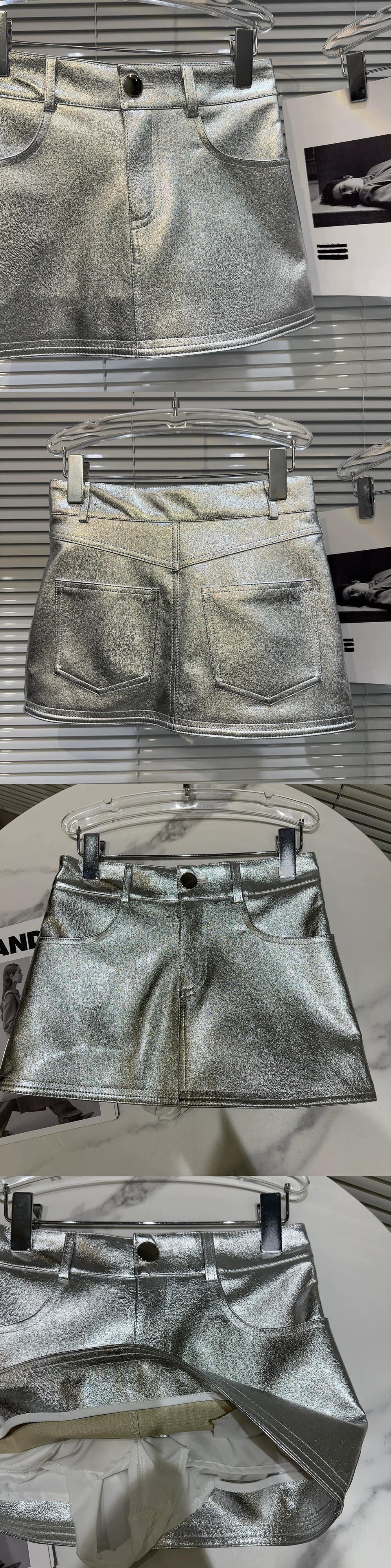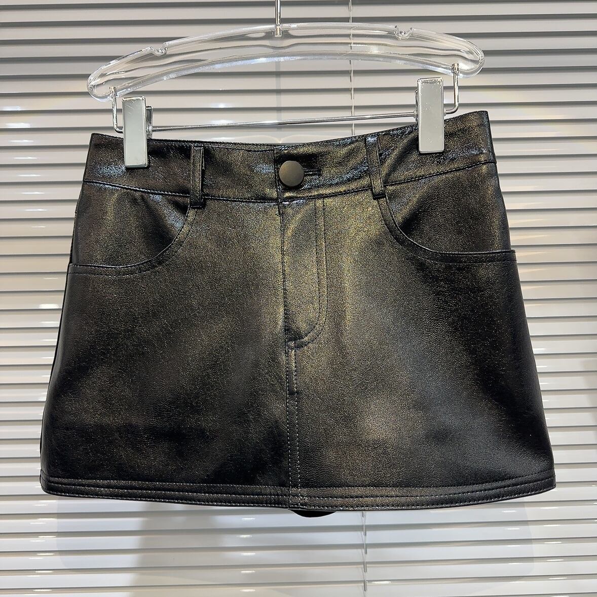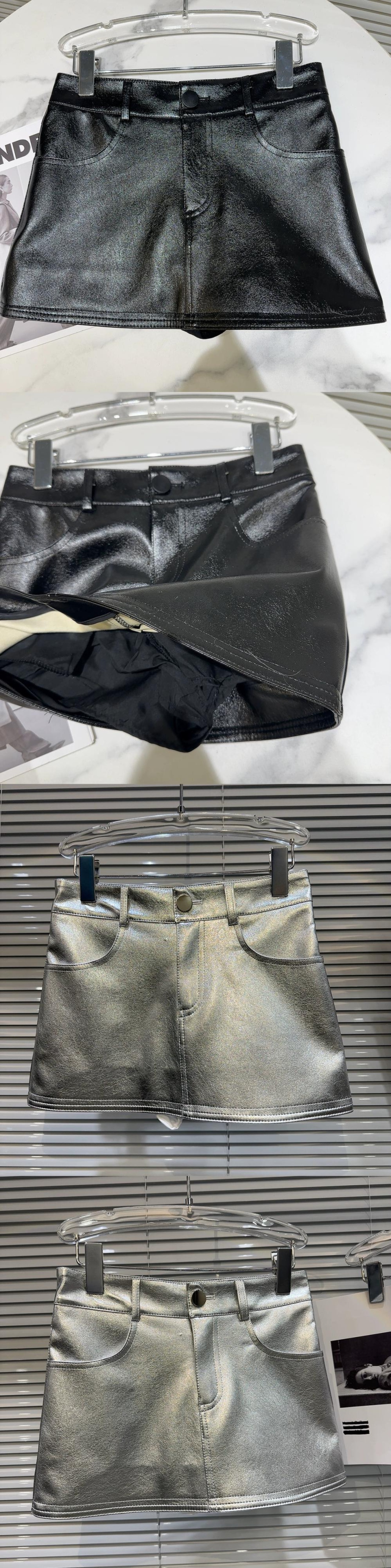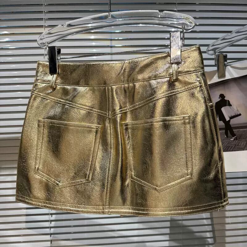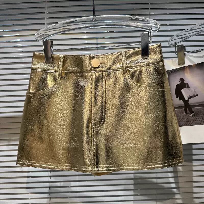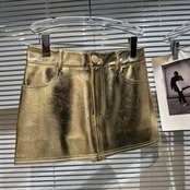 インターネットセレブと同じスタイル 2024 春の新ストリートレトロゴールデン PU レザーブライトレザーパテントレザーヒップスカートショートスカート女性 スプリング 春物 gyan3375027688464 | vestitialla