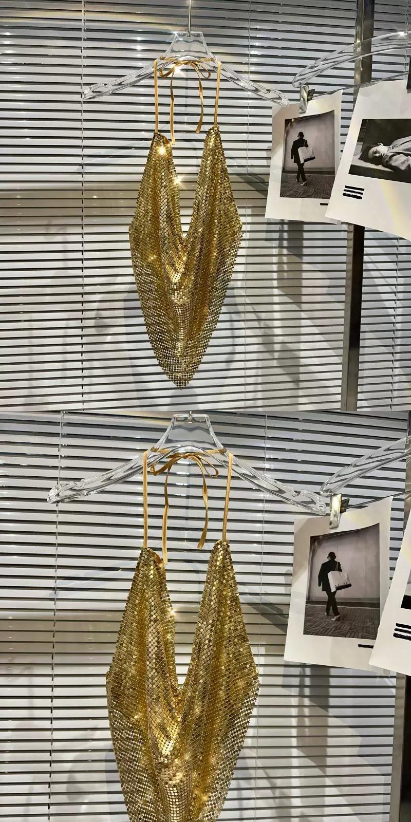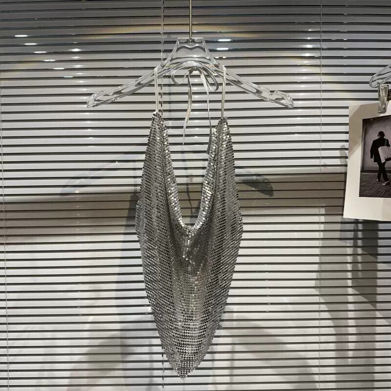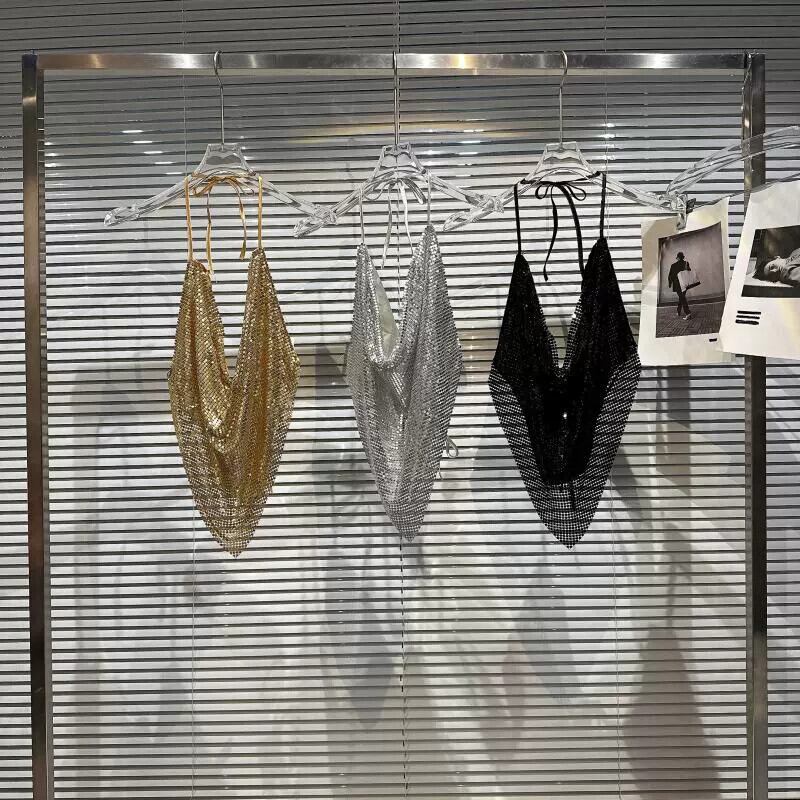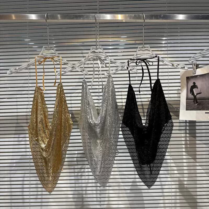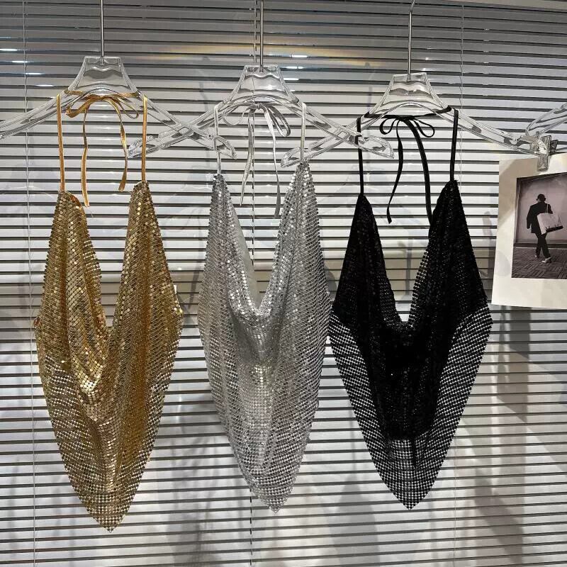 ネットセレブ同様2024春新スタイルストリートメタリックスパンコールナイトクラブセレブパーマンスホルターネックキャミソール スプリング 春物 gyan3341140359557 | vestitialla