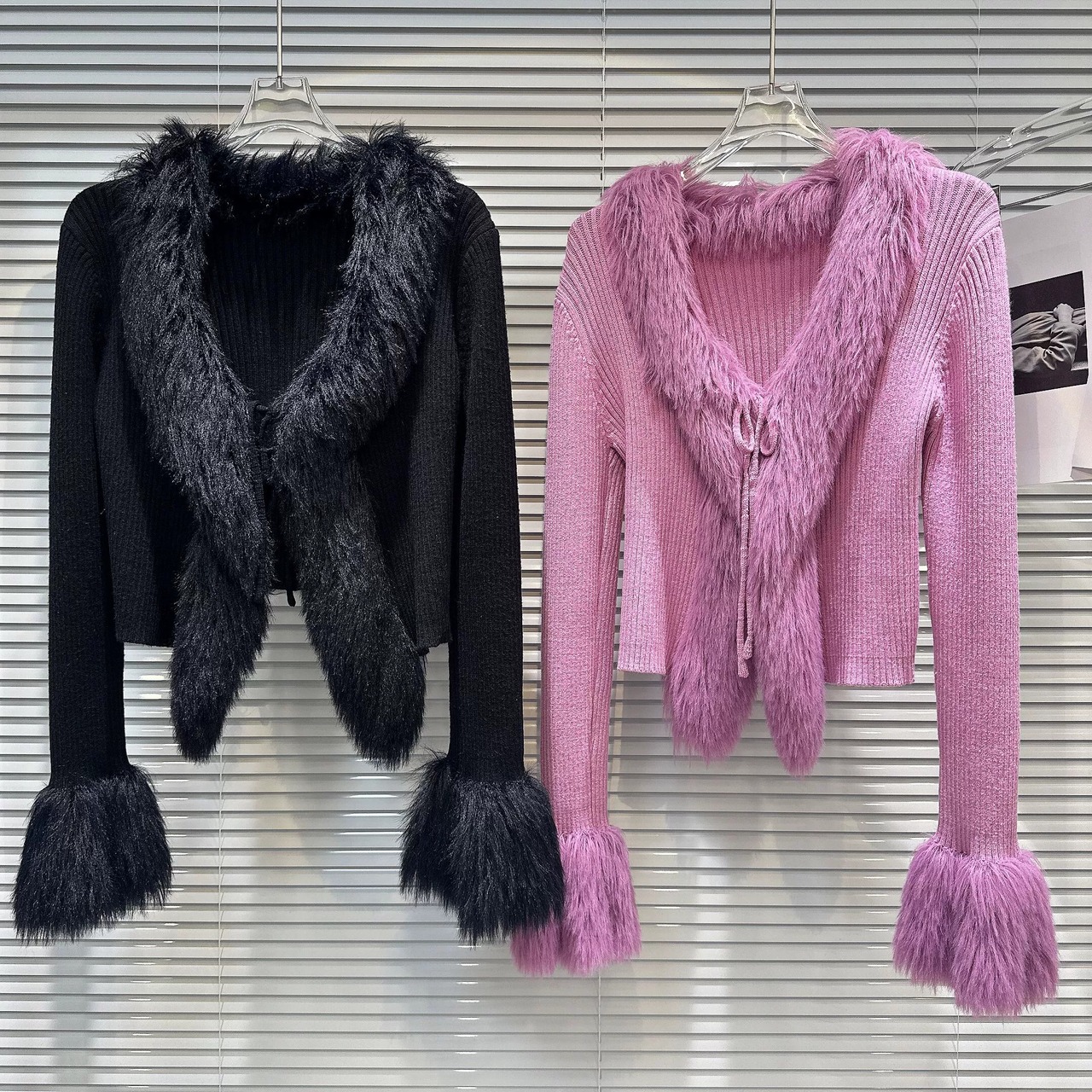 ネット有名人の同じスタイル2024春の新スタイル小さな香り環境に優しい毛皮の襟袖口レースアップ無地セーターカーディガン スプリング 春物 ソリッドカラー gyan3345790716223 | vestitialla