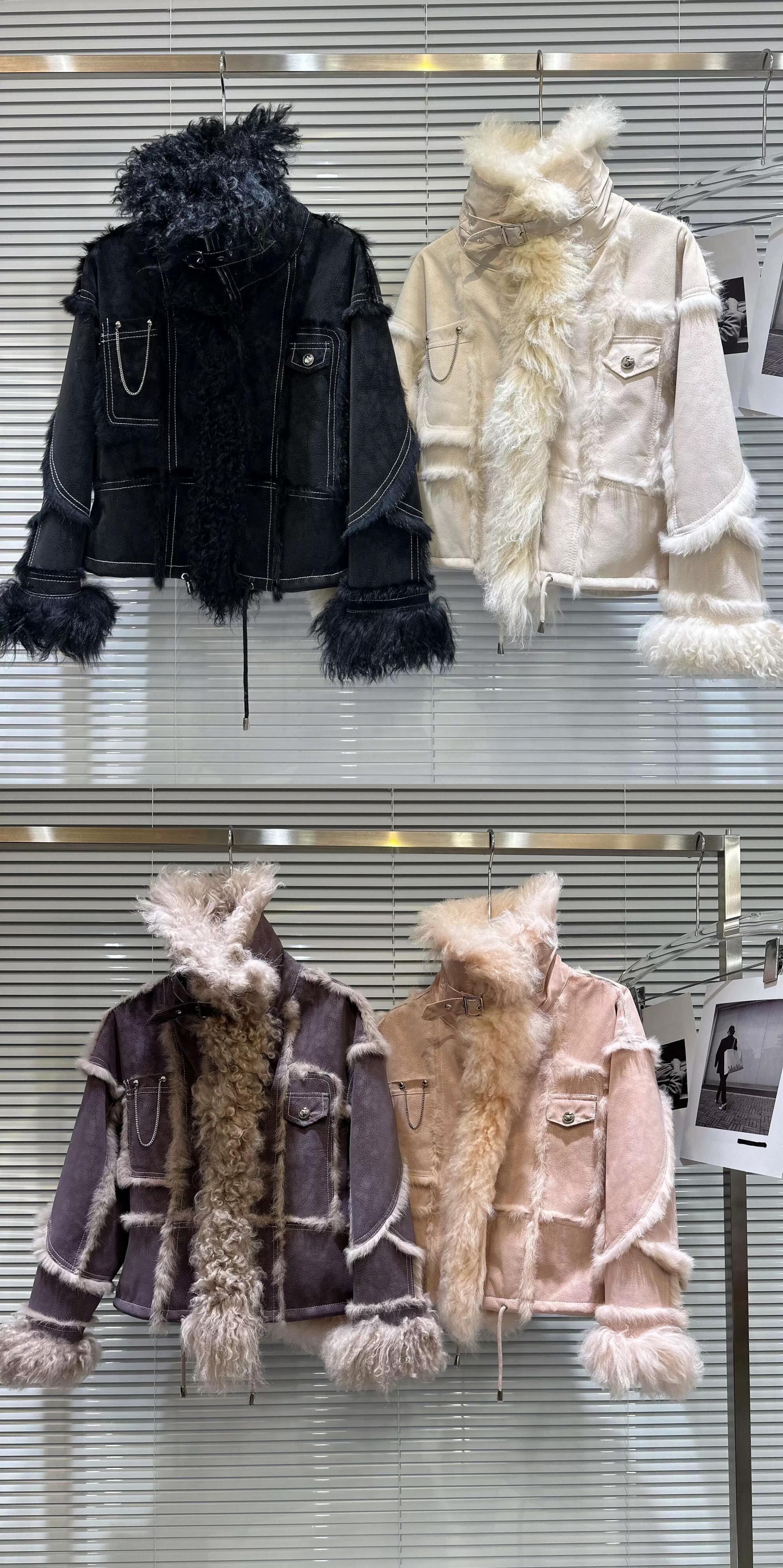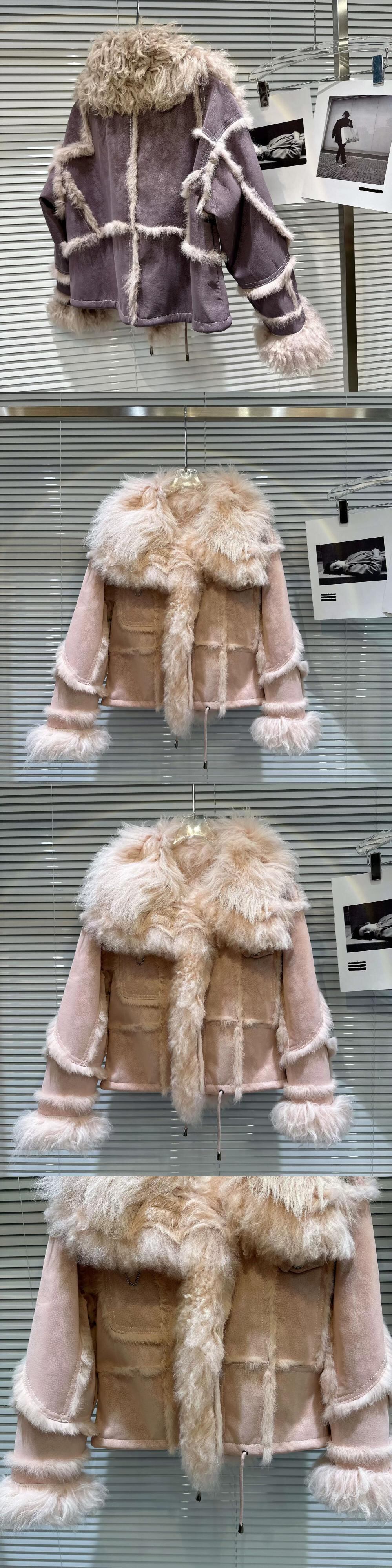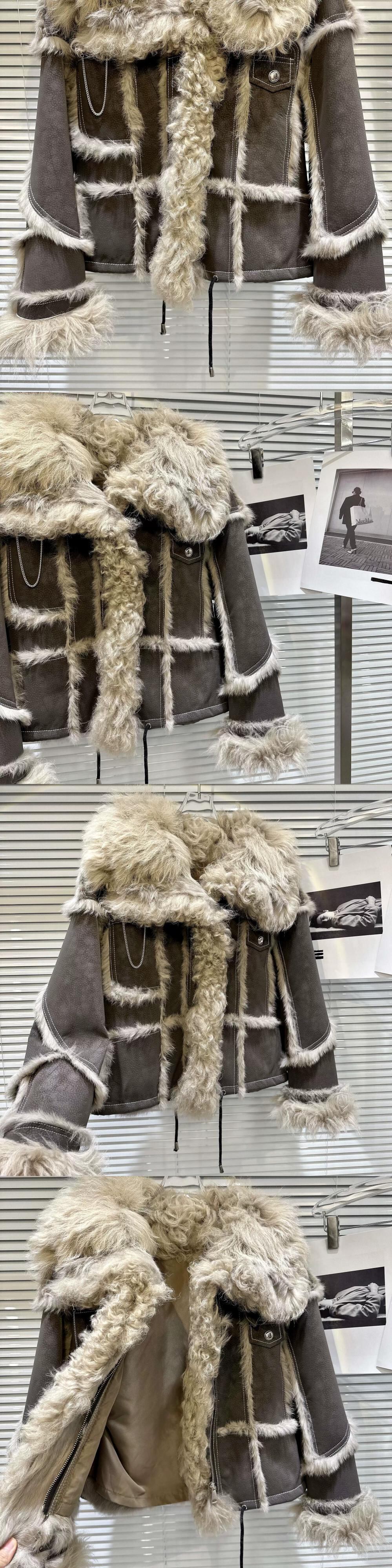 ネット有名人の同じスタイル 2024 冬の新しいストリートビッグラムファー襟マットファーオールインワン暖かいレザージャケットの女性 ウィンター 冬物 gyan3326844698360 | vestitialla
