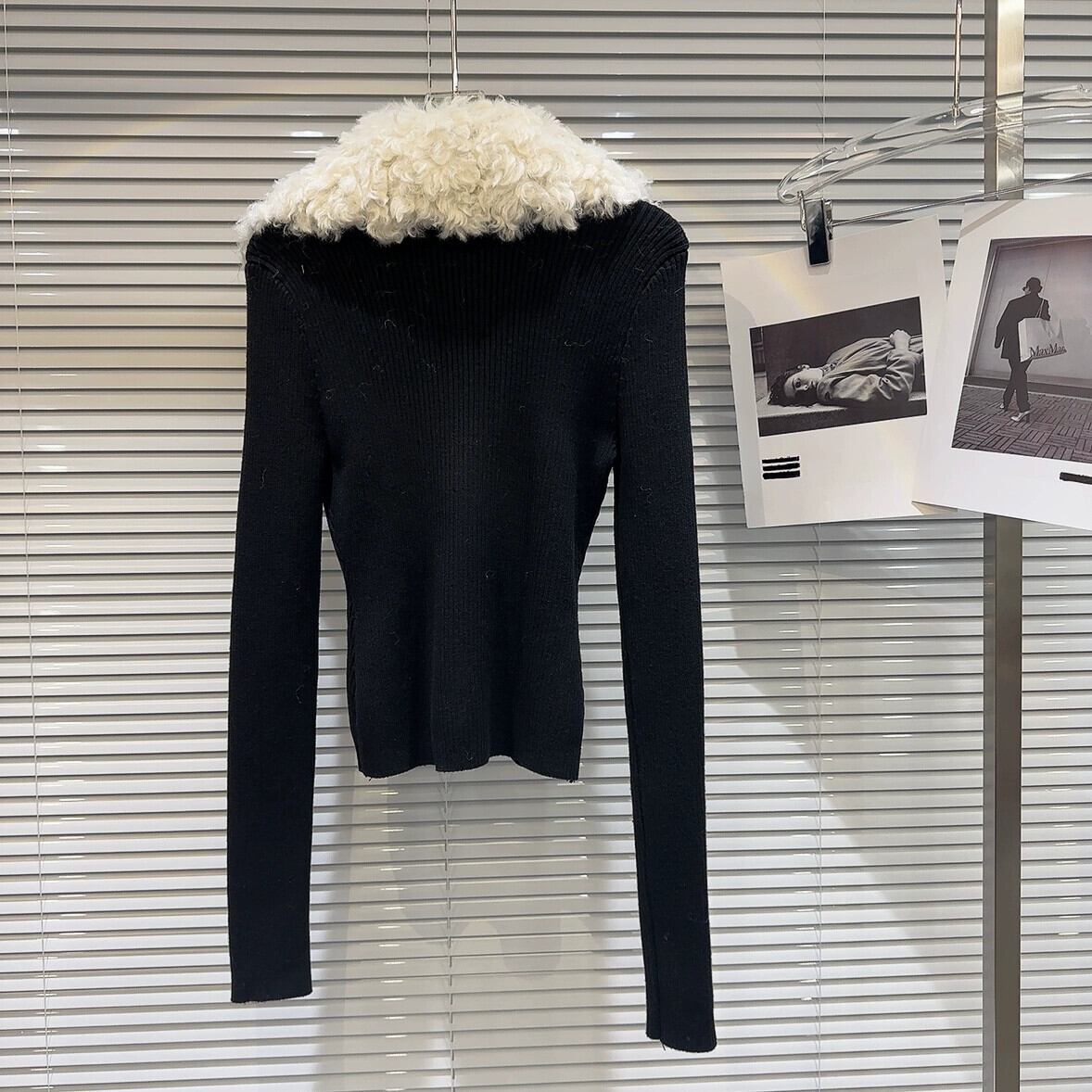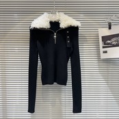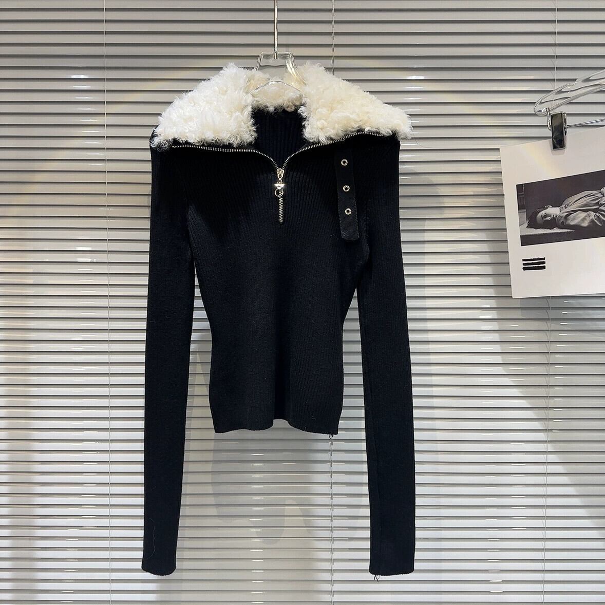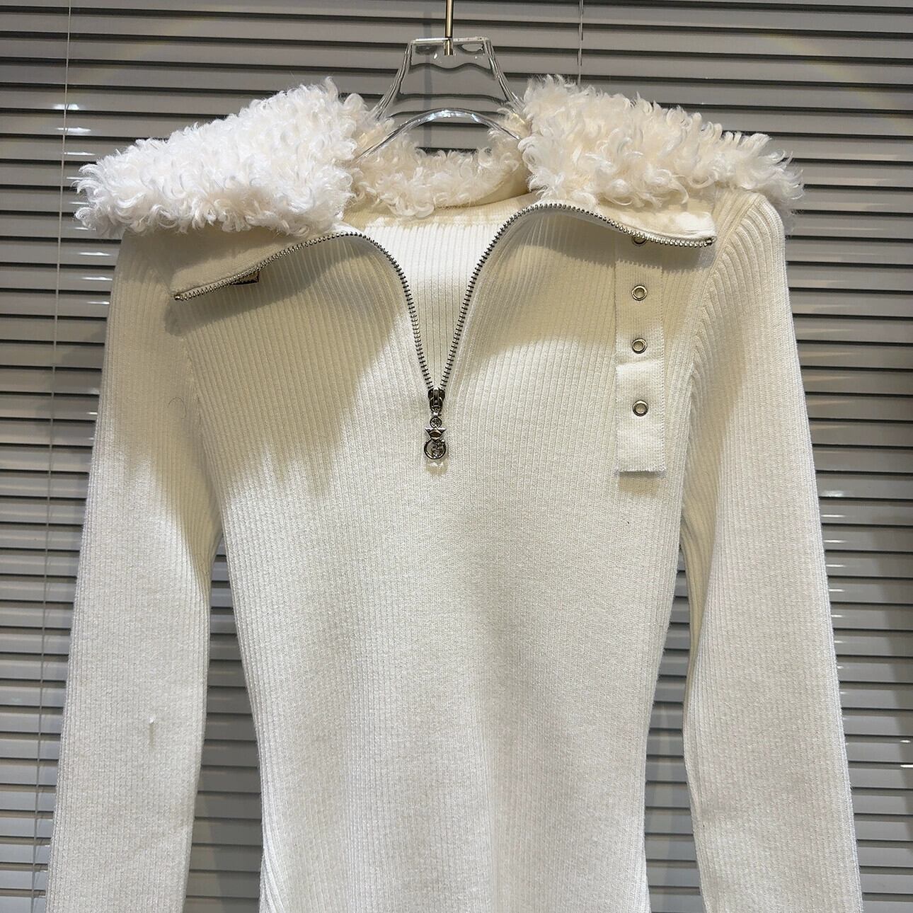 インターネット有名人の同じスタイル2024春の新しいニッチモデル模造ラムファー襟ジッパー気質社交家ニットセーターセーター スプリング 春物 gyan3352706440941 | vestitialla