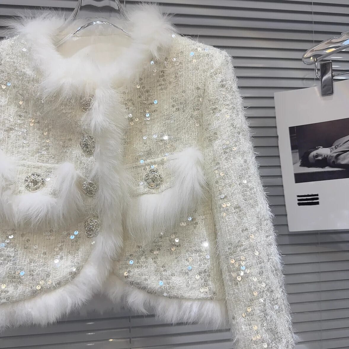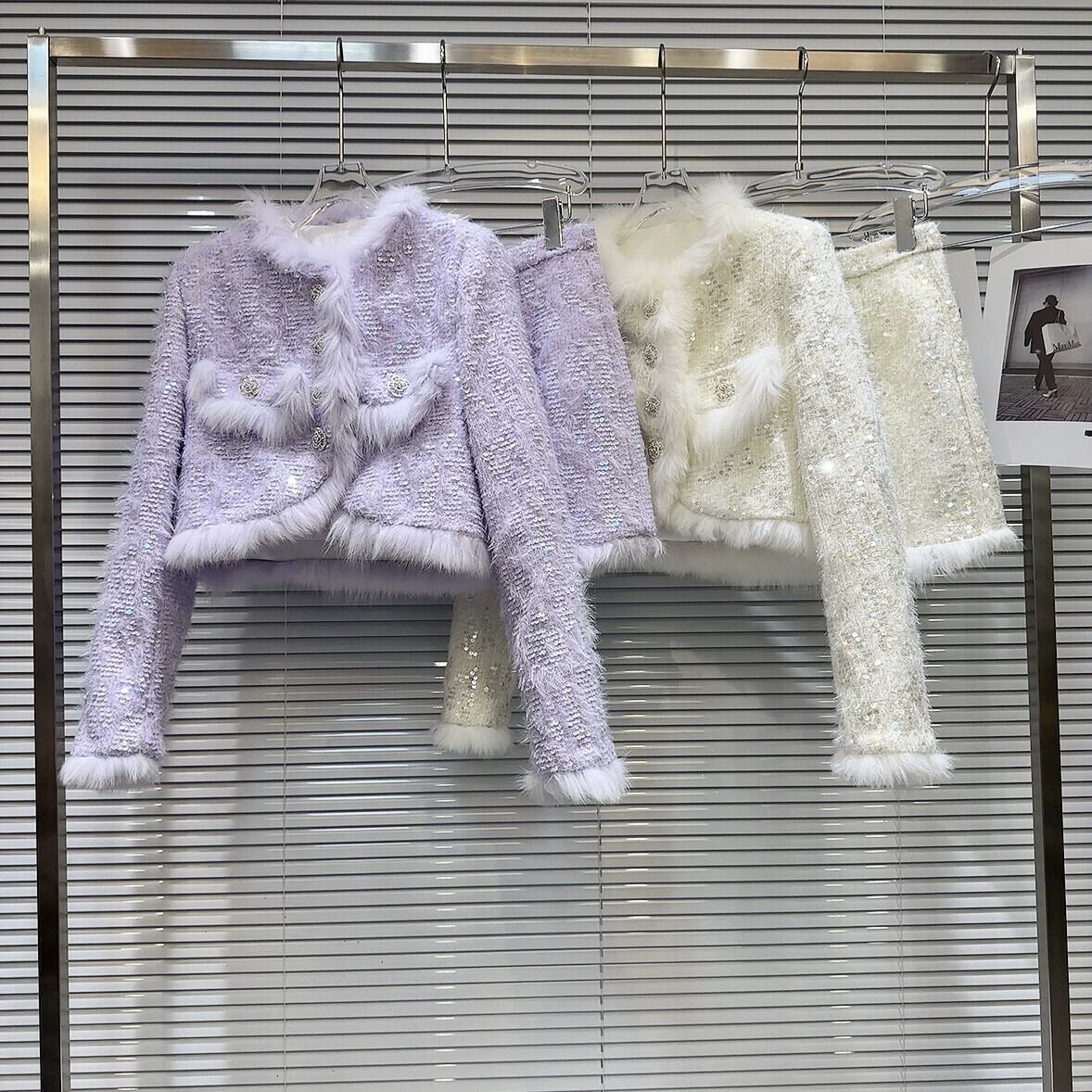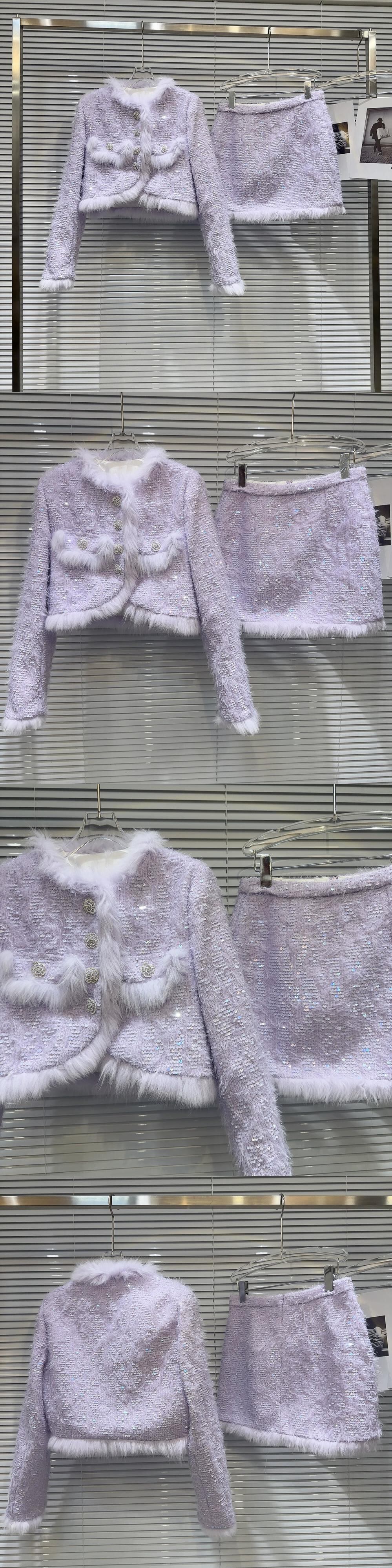 インターネット有名人の同じスタイル2024新しい冬スタイルフォックスファーエッジスパンコールツイードジャケット+ショートスカートキルティングスーツ ウィンター 冬物 gyan3330526155555 | vestitialla