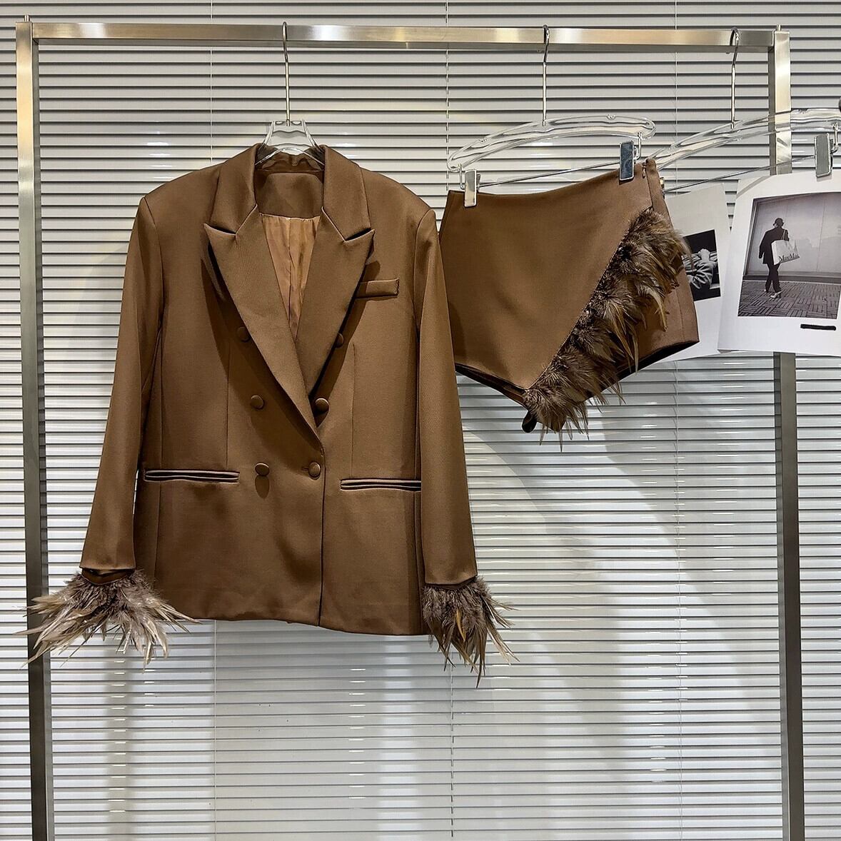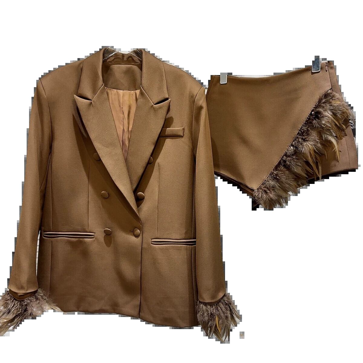 ネットセレブと同じスタイル2024春新作ニッチセレブフェザースリーブショルダーパッドスーツスーツジャケット+ショーツセット スプリング 春物 ブルマー gyan3354619744250 | vestitialla