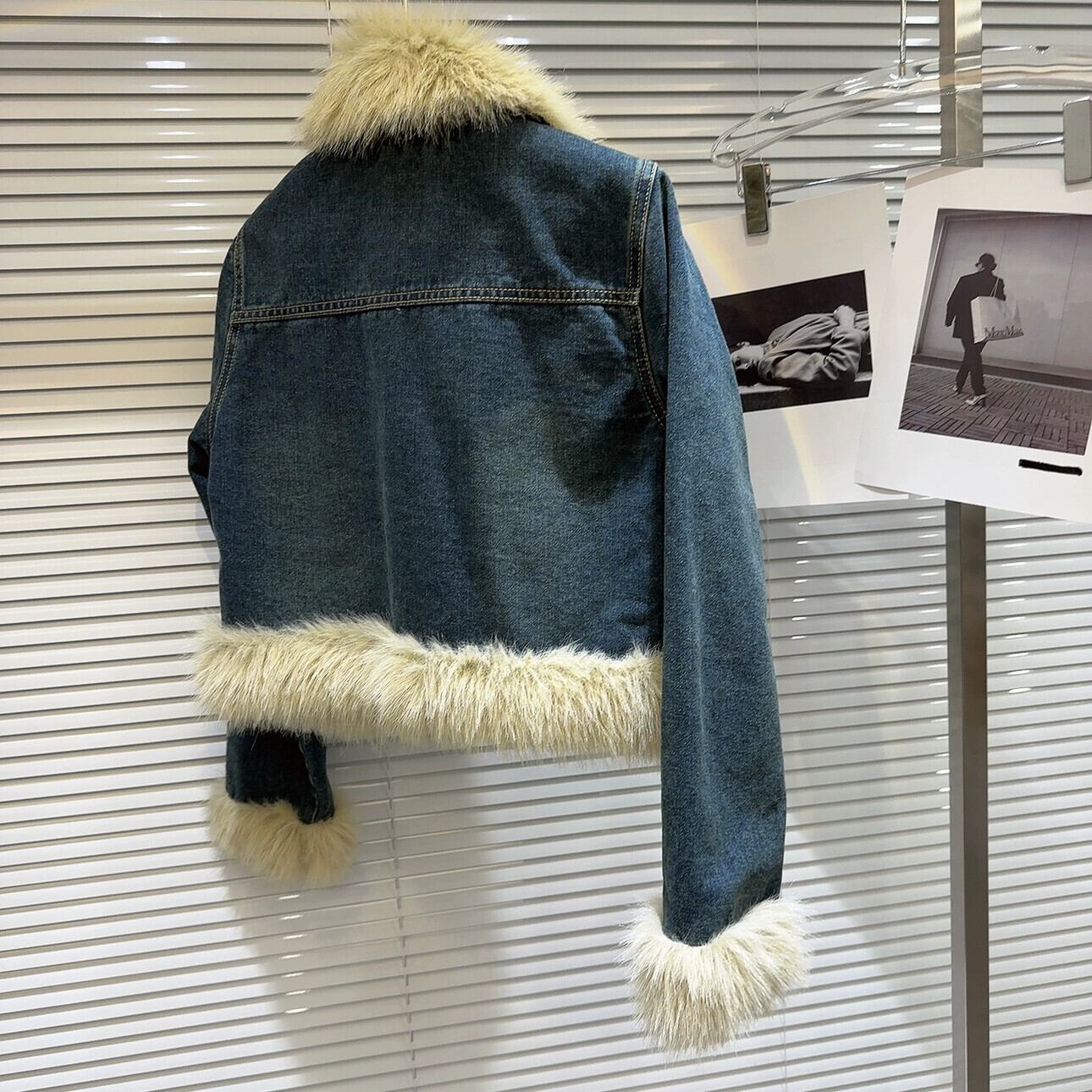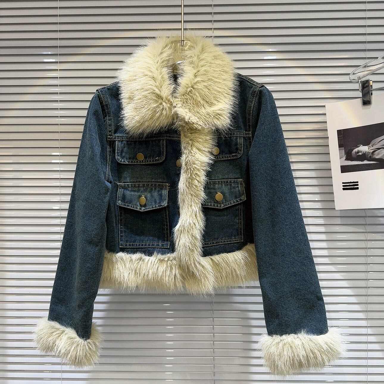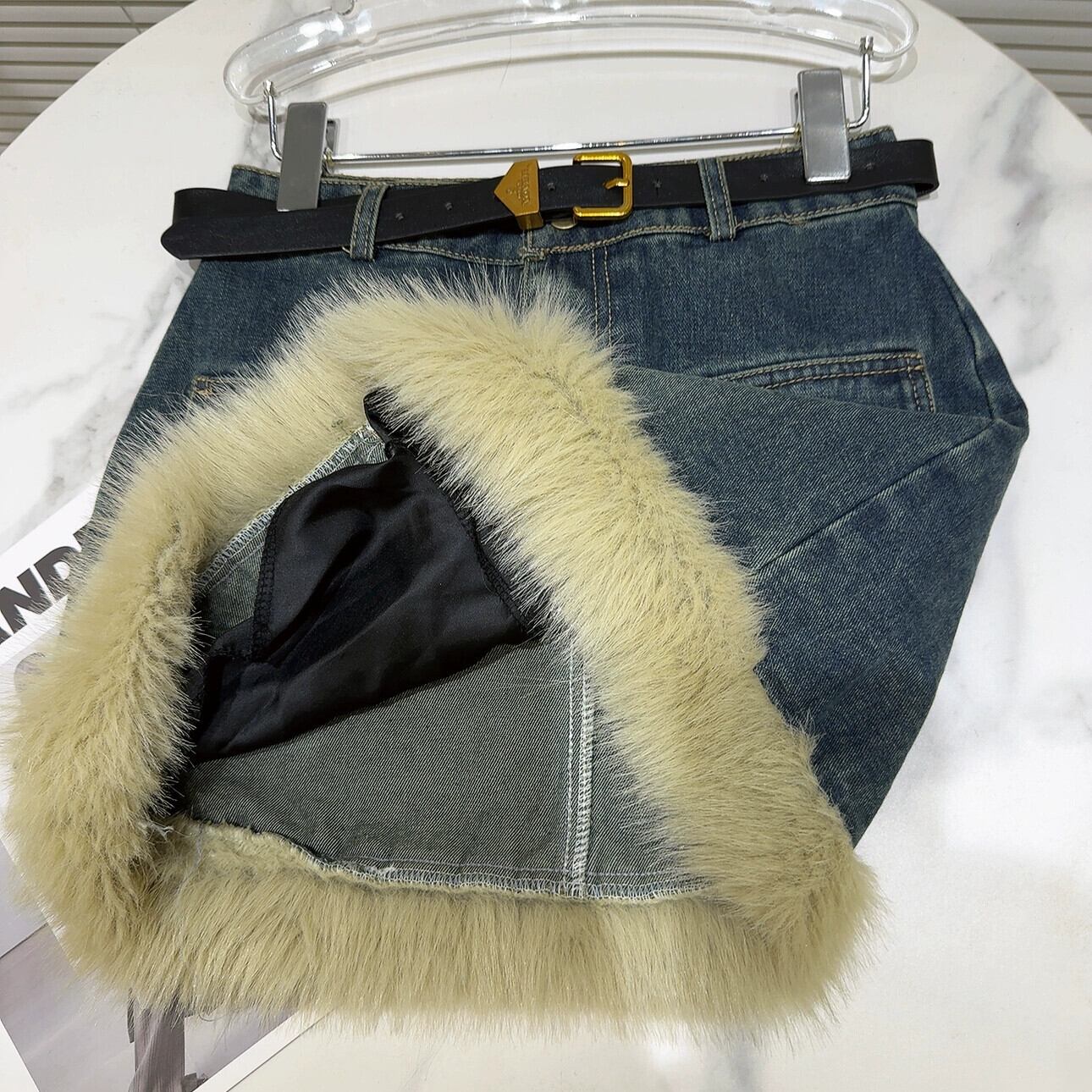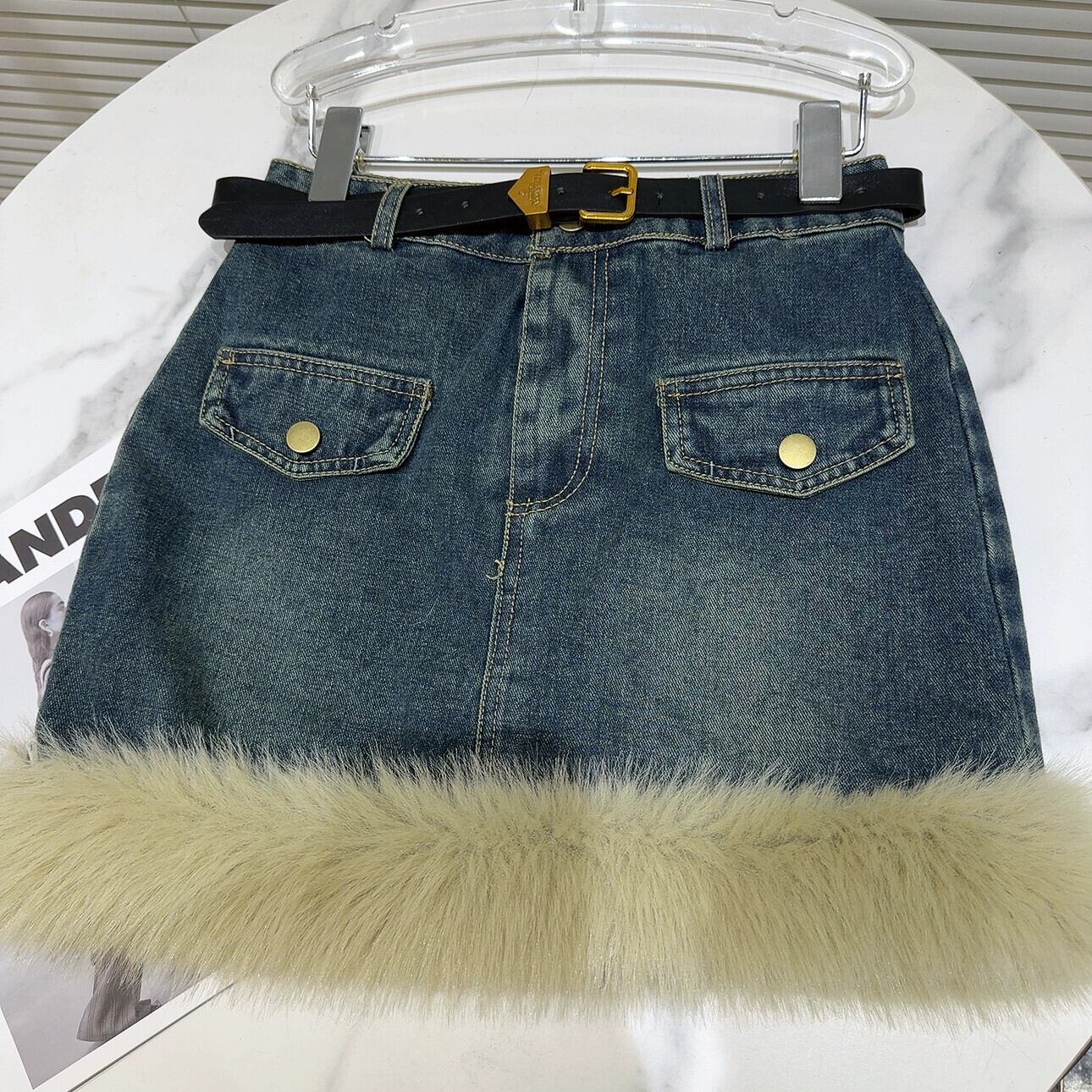 ネットセレブ同様2024冬新作ニッチスタイルレトロカラー環境に優しいファーポケットショートジャケット+ショートスカートデニムセット ウィンター 冬物 gyan3390970784445 | vestitialla