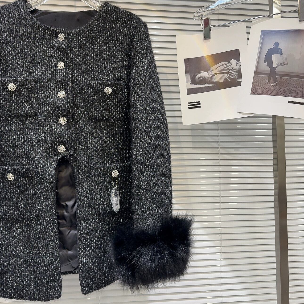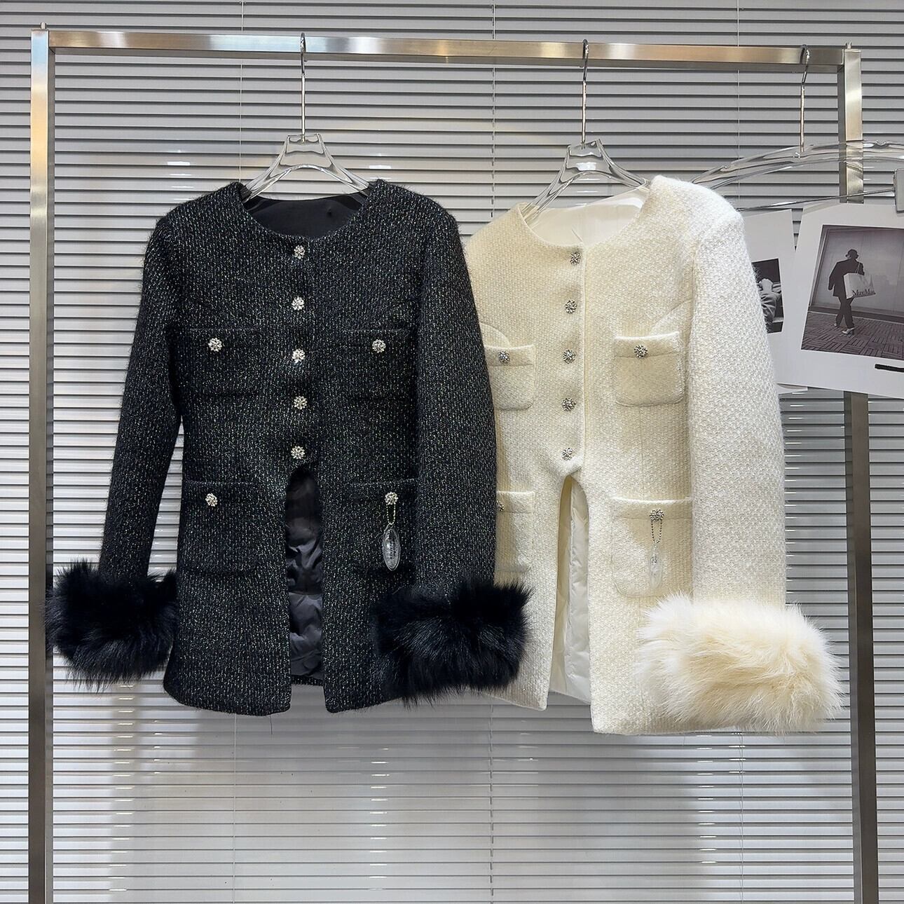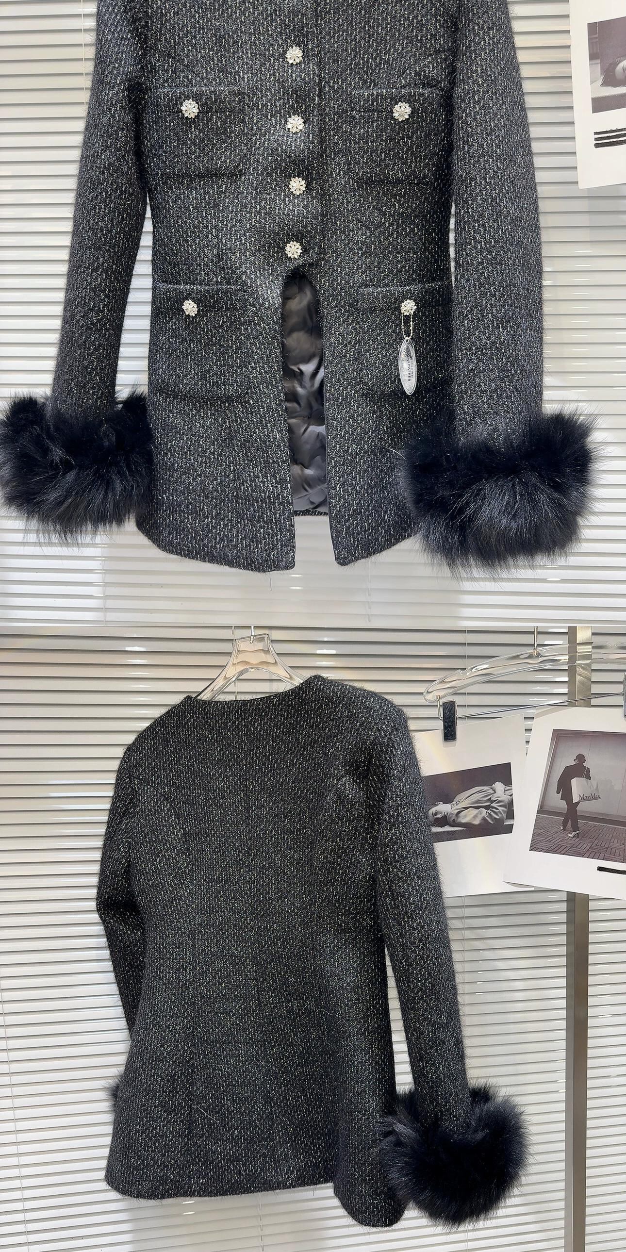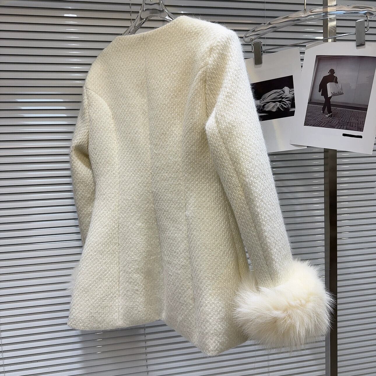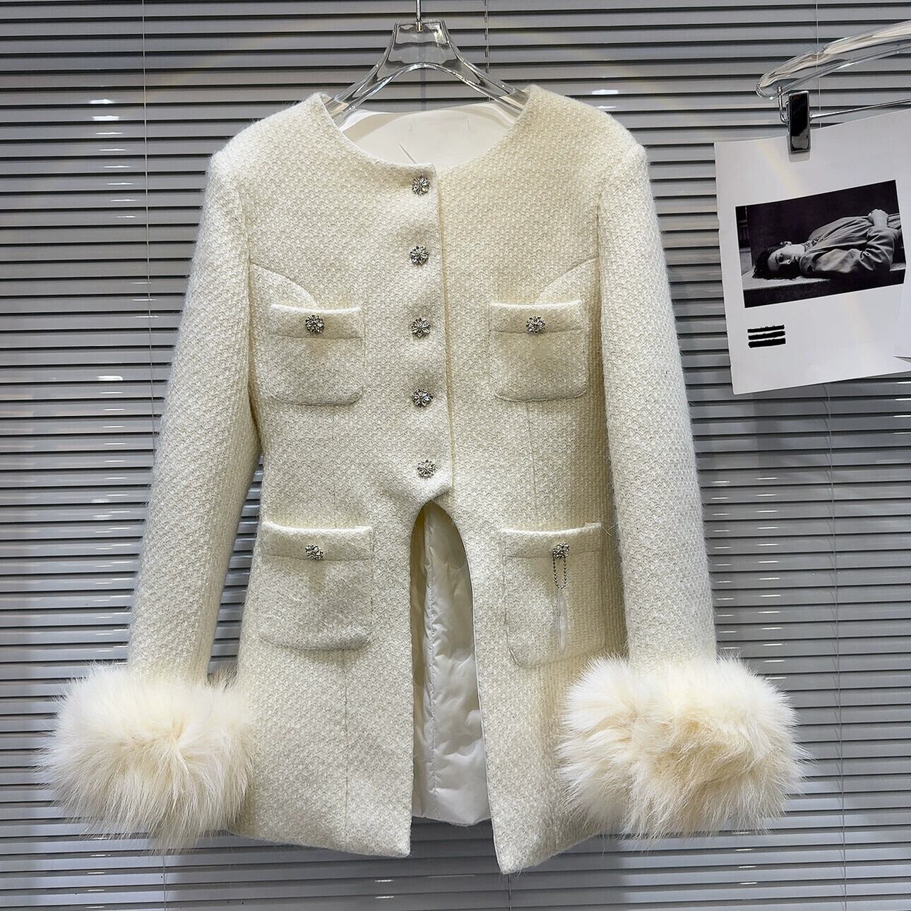 インターネット有名人の同じスタイル2024新しい冬スタイル小さな香りのよいキツネの毛皮の袖とラインストーンボタン付きダウン裏地付きウールウインドブレーカージャケット ウィンター 冬物 gyan3341769881787 | vestitialla