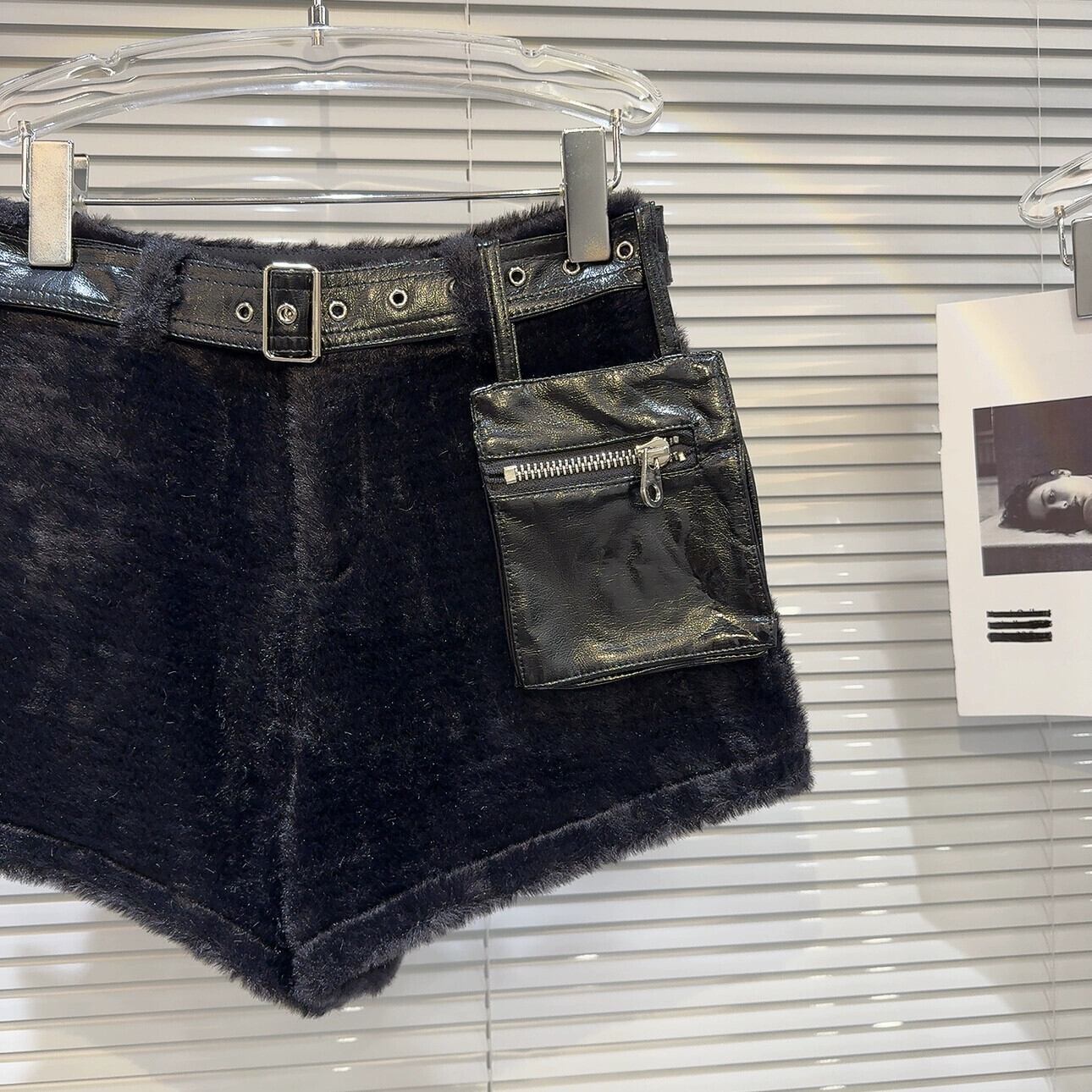インターネット有名人の同じスタイル2024冬の新しいニッチスタイルPUレザーポケット装飾ぬいぐるみダークショートパンツブーツパンツ ウィンター 冬物 ショーツ ブルマー gyan3345691904139 | vestitialla