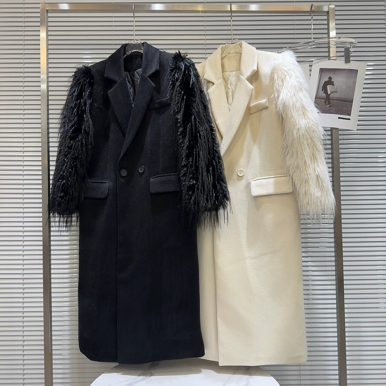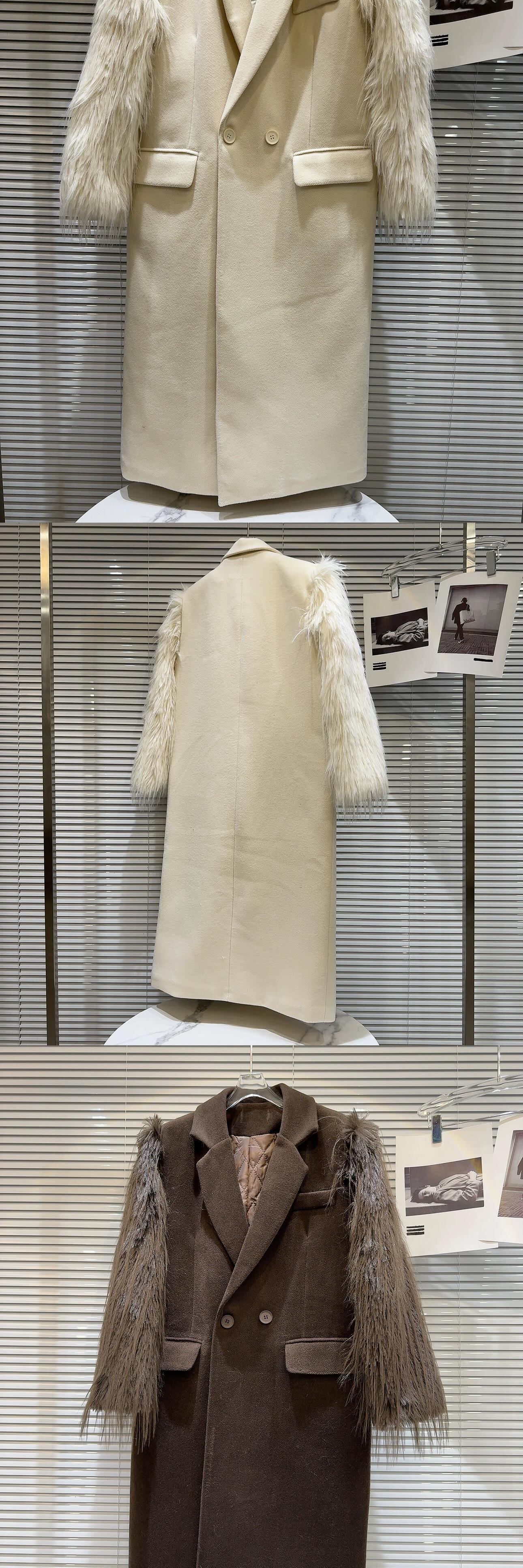 インターネット有名人同じスタイル 2024 冬の新しいニッチ環境に優しい毛皮のような袖デザインキルティングロングウールウインドブレーカージャケット女性 ウィンター 冬物 gyan3320307297946 | vestitialla