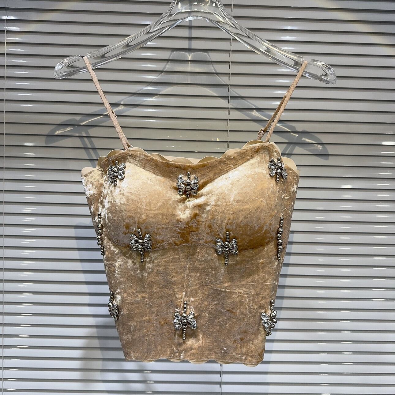 インターネット有名人同じスタイル 2024 冬の新スタイル小さな香り風水ダイヤモンドトンボビーズデザインベルベット胸パッドキャミソール女性 ウィンター 冬物 gyan3318495402240 | vestitialla