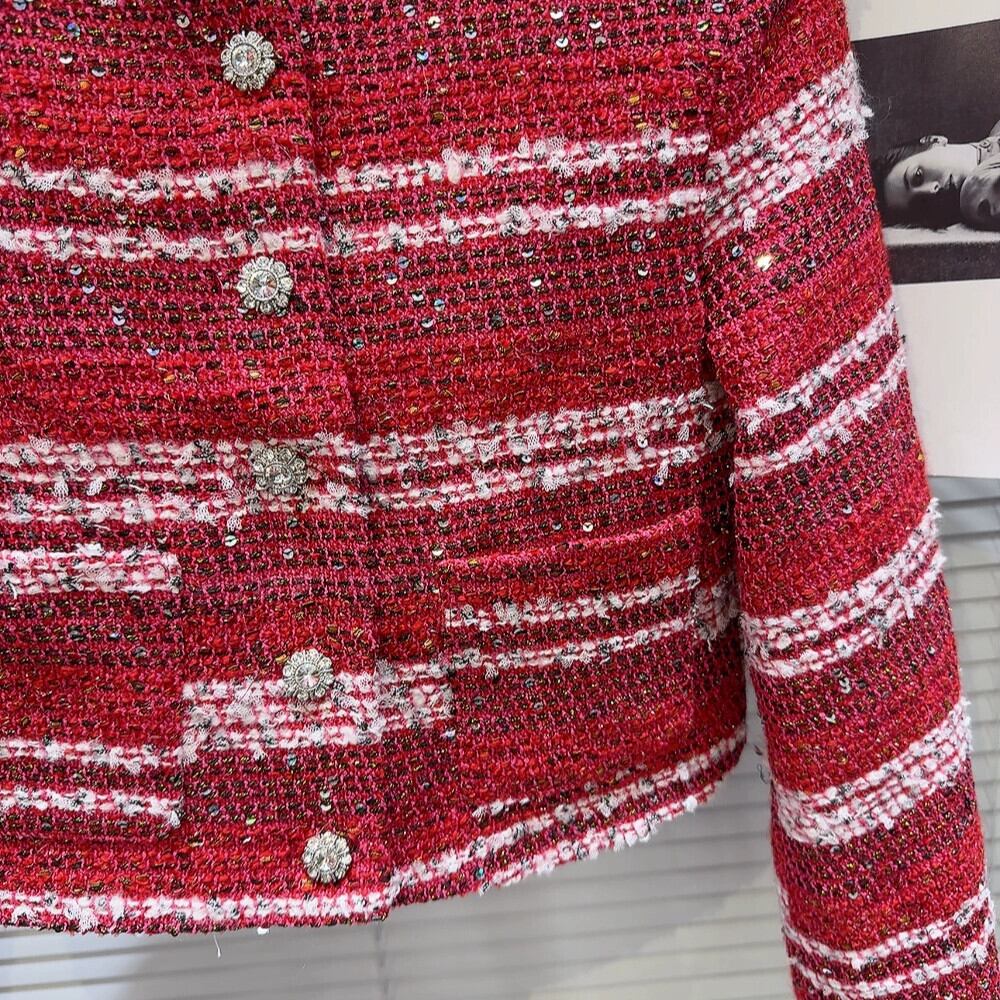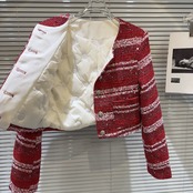 ネットセレブ同様2024冬新スタイル小香るラインストーンフラワーボタンツイード気質ダウン裏地ショートジャケット ウィンター 冬物 フラワーデザイン gyan3340762986833 | vestitialla