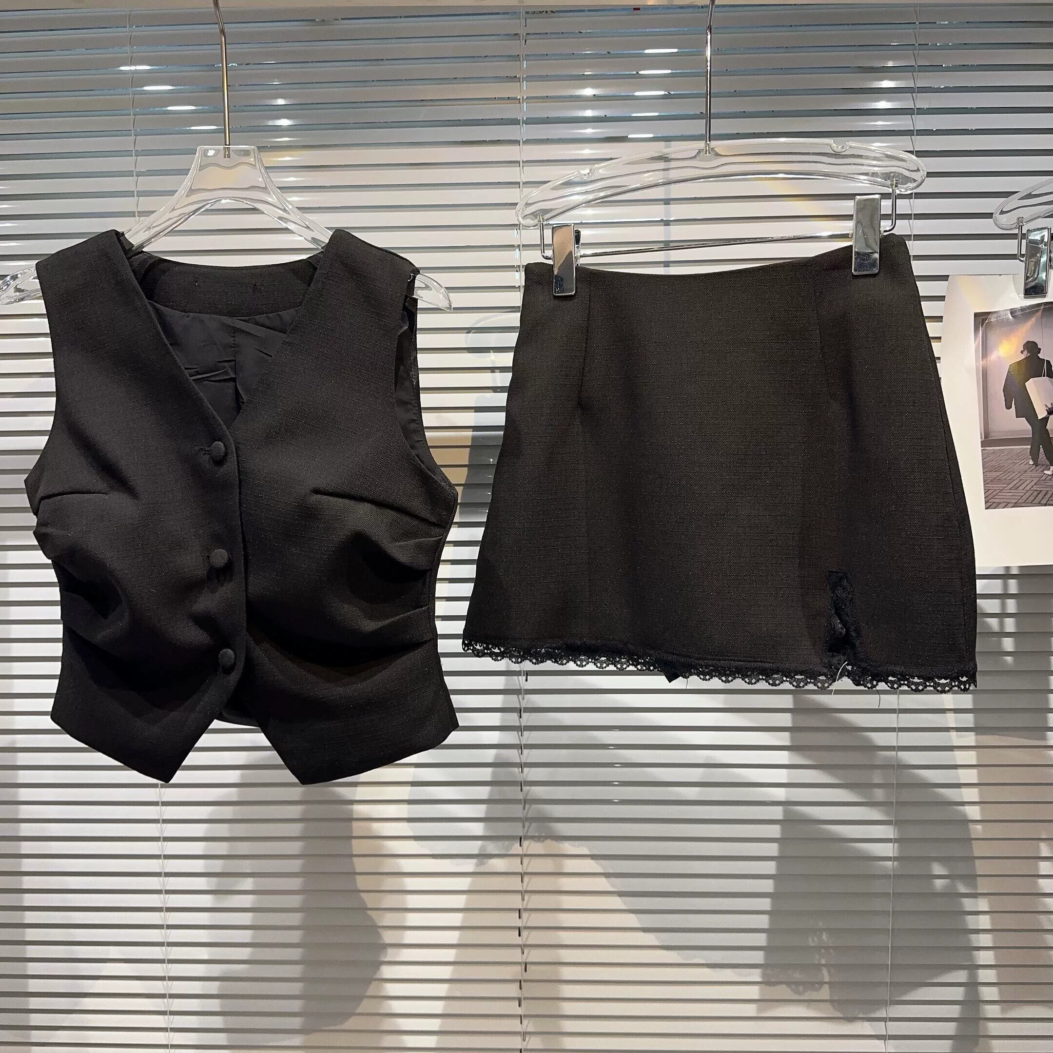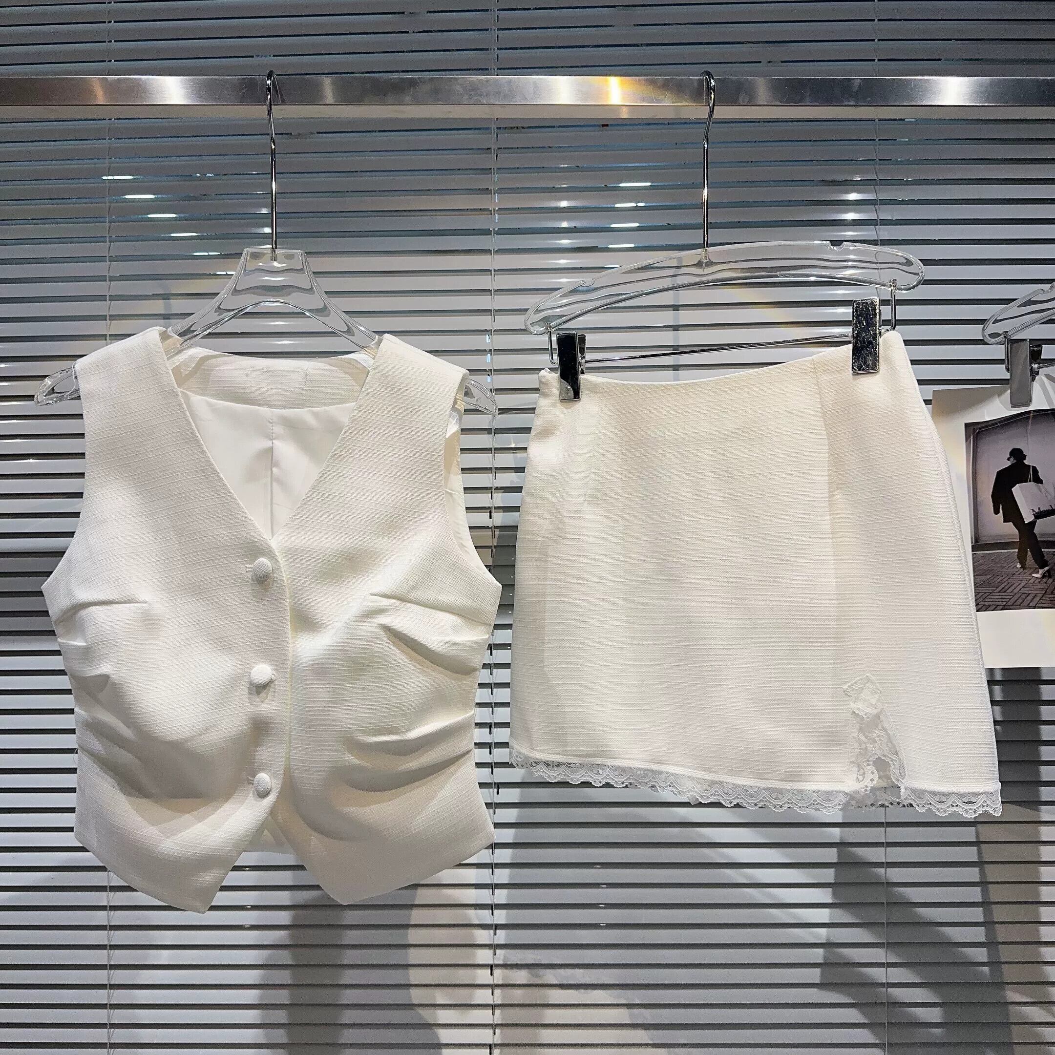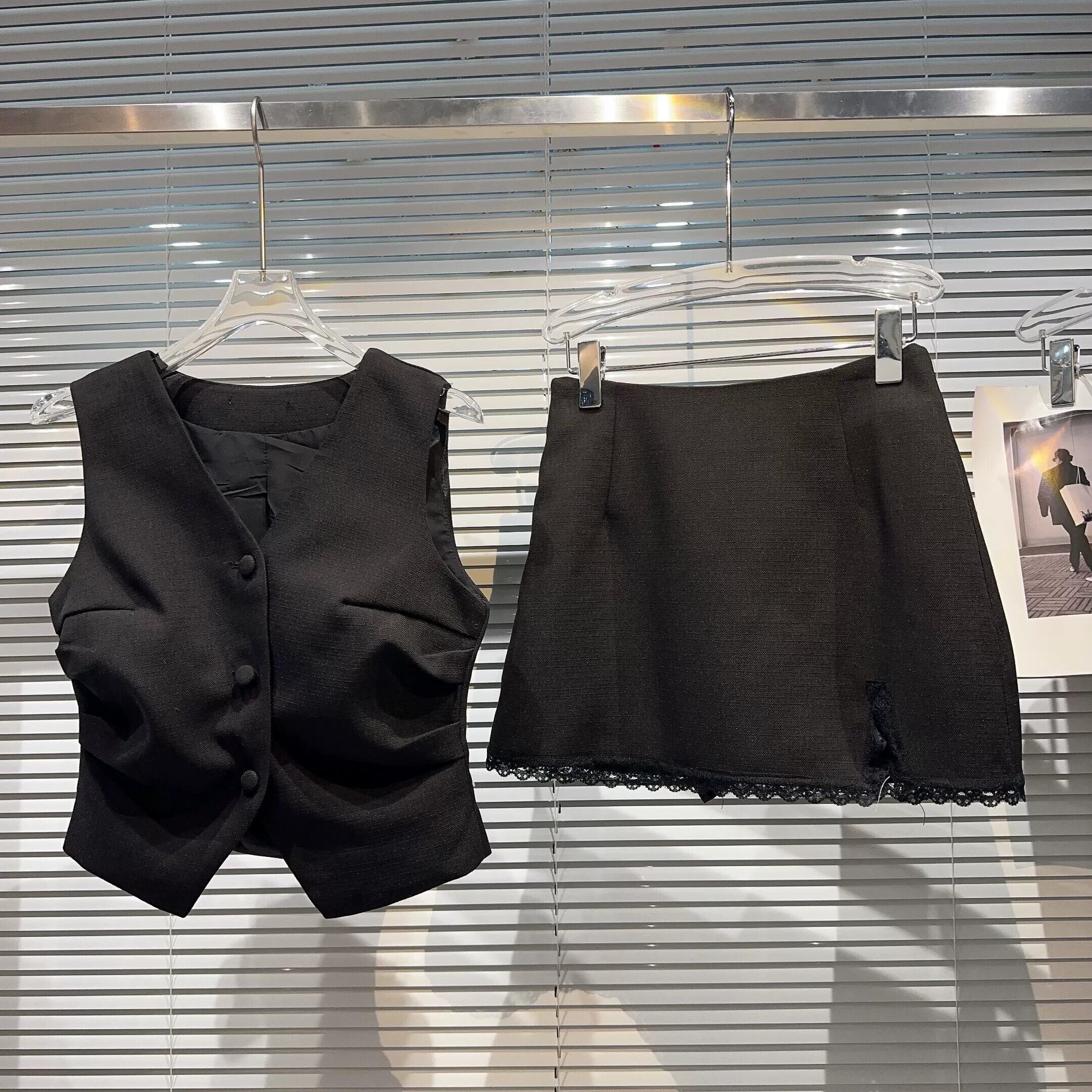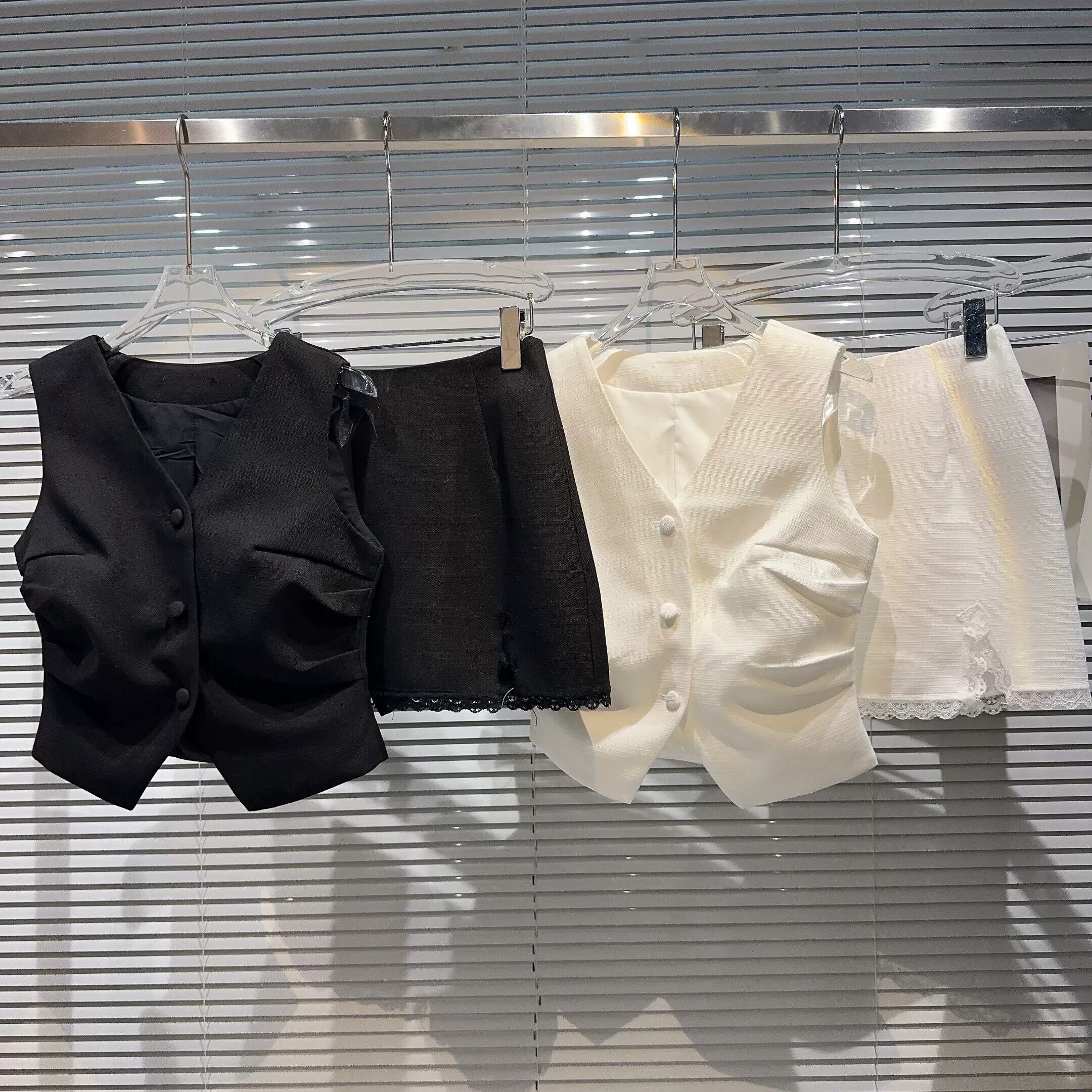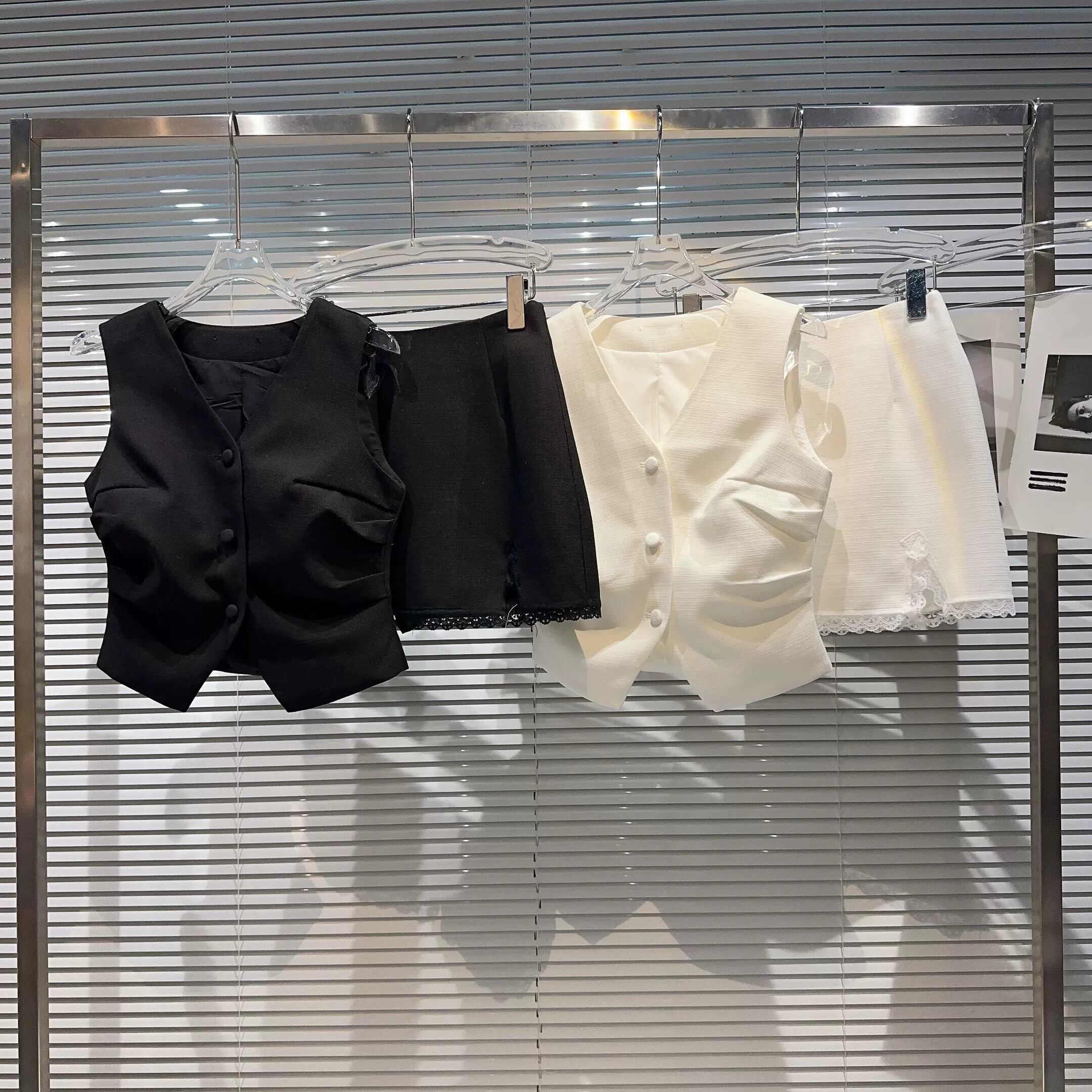 インターネットセレブの2023新しい夏スタイルの小さな香りの良いプリーツ気質チョッキ+無地レースエッジスカートカバー サマー 夏物 ソリッドカラー gyan334731240753 | vestitialla