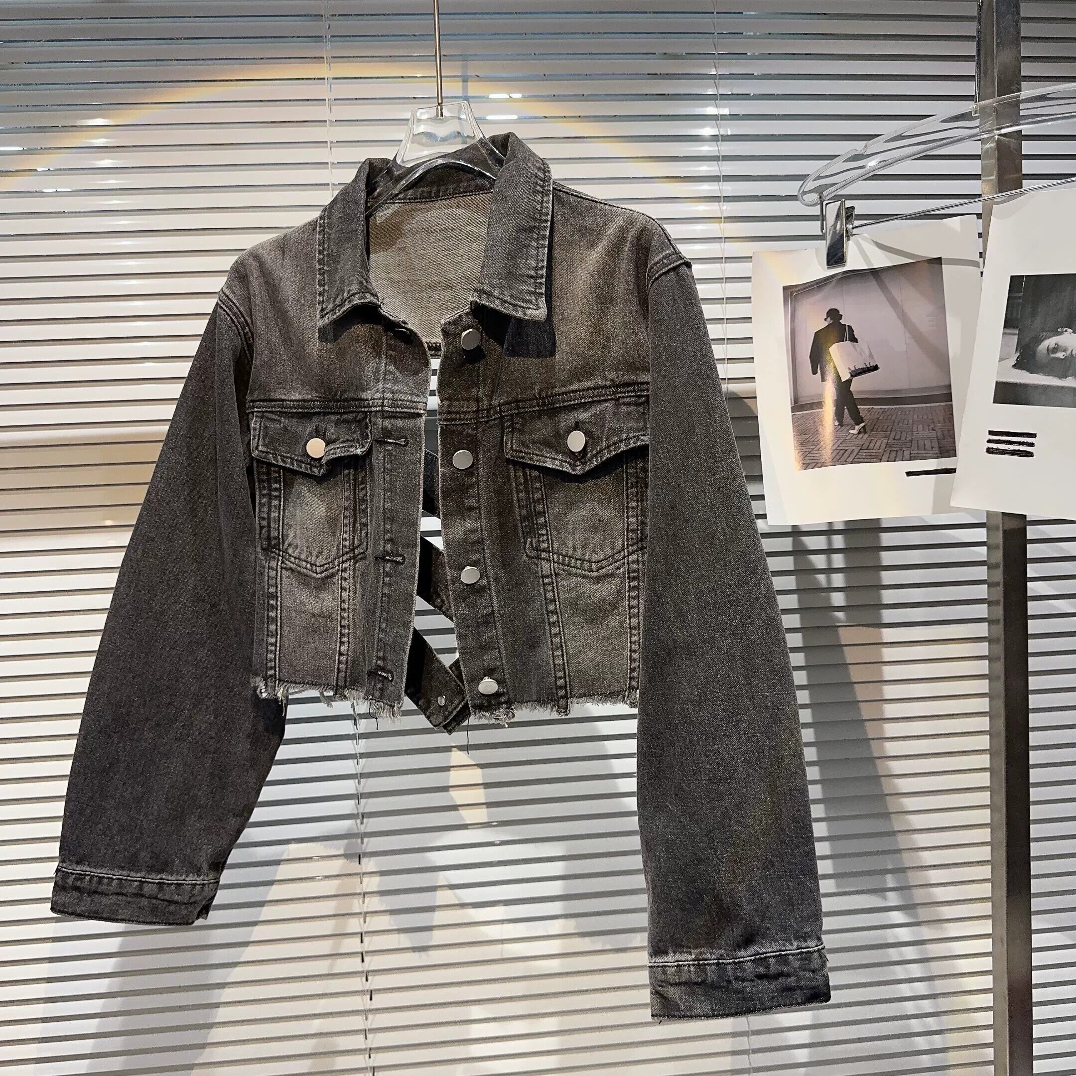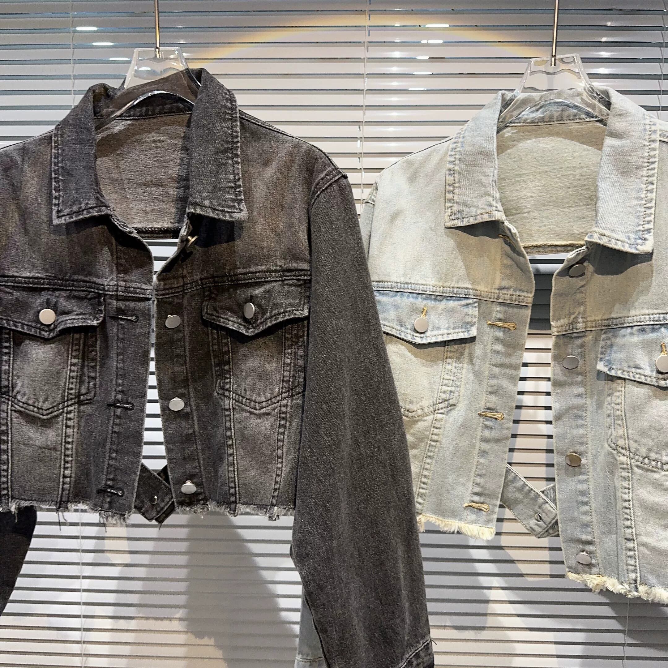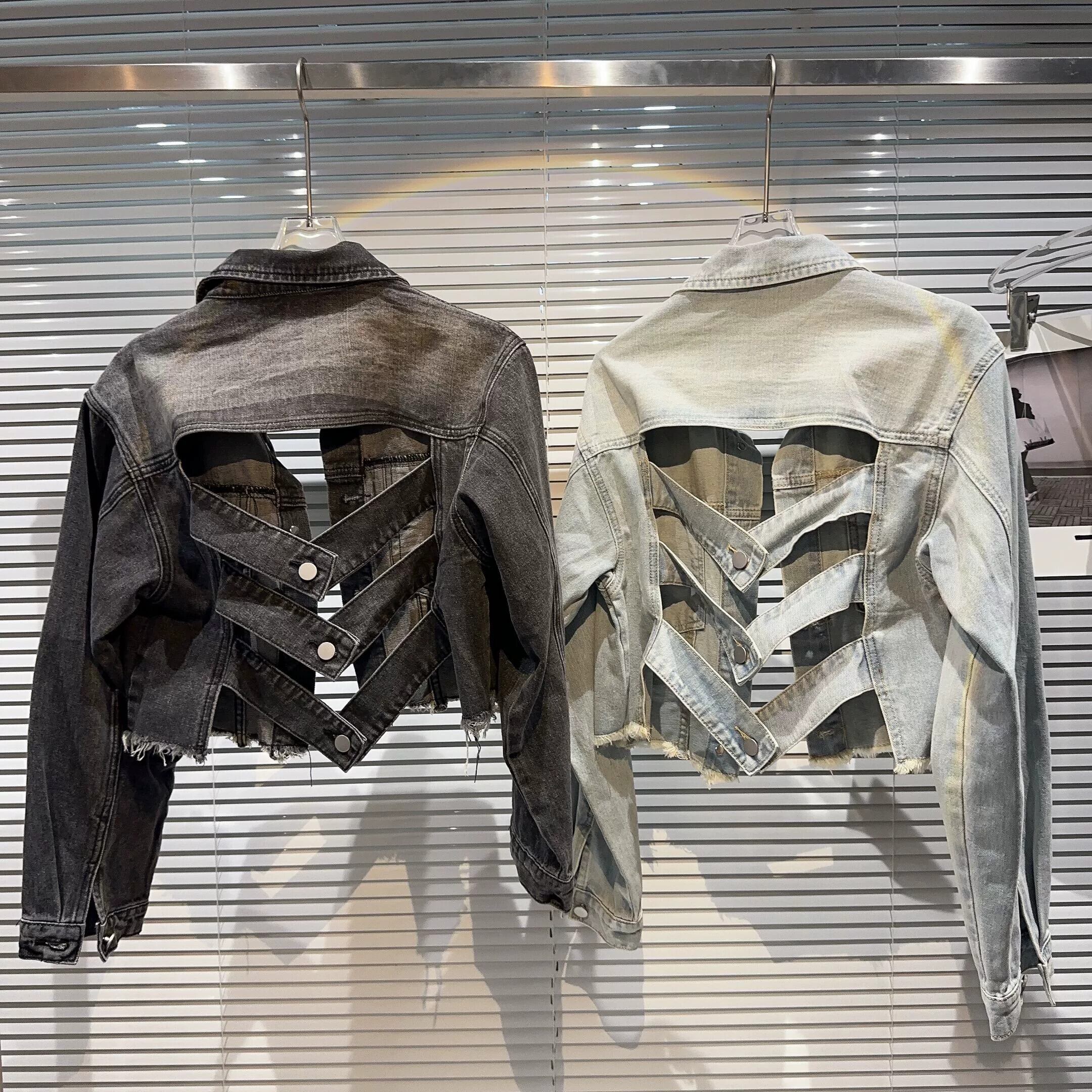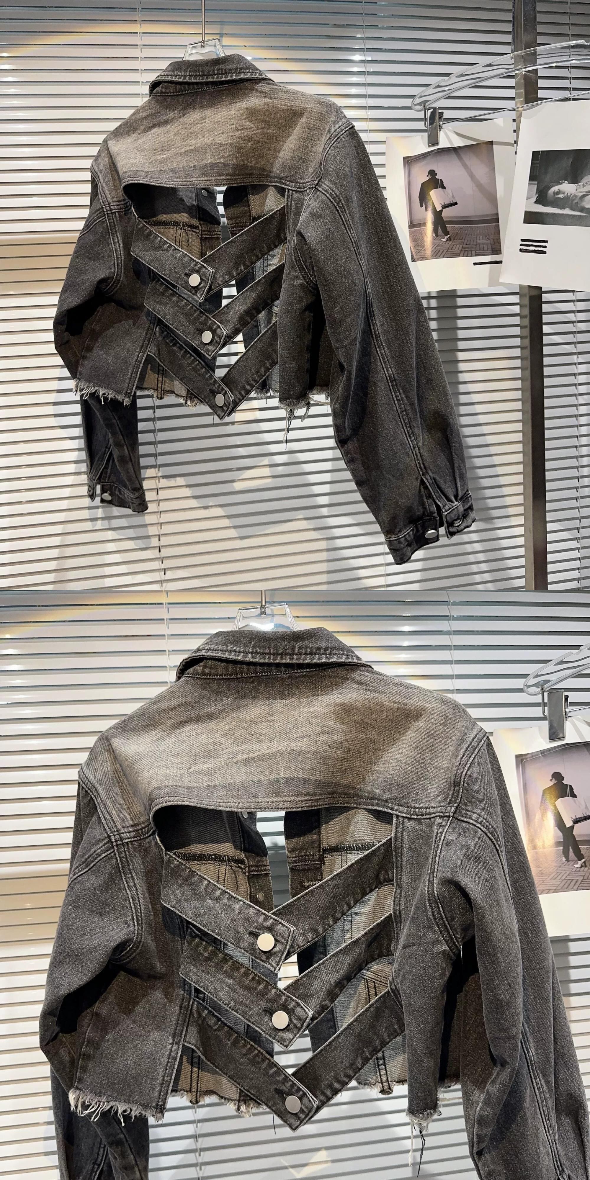 ネットセレブと同じスタイルの2024春夏新作ストリートウォッシュデニムジャケットショートコート、背中にクロス中空デザイン スプリング 春物 サマー 夏物 gyan3333502196674 | vestitialla