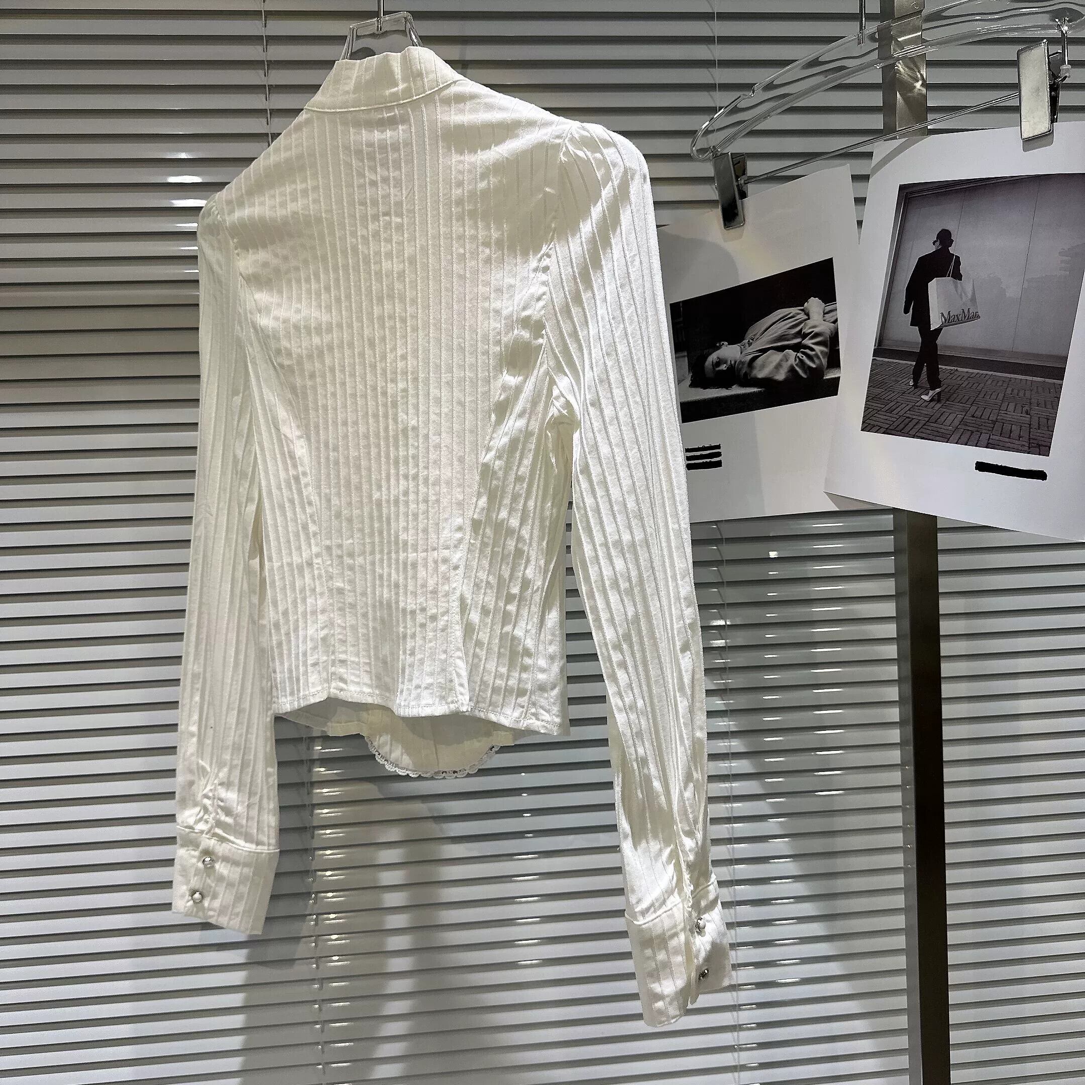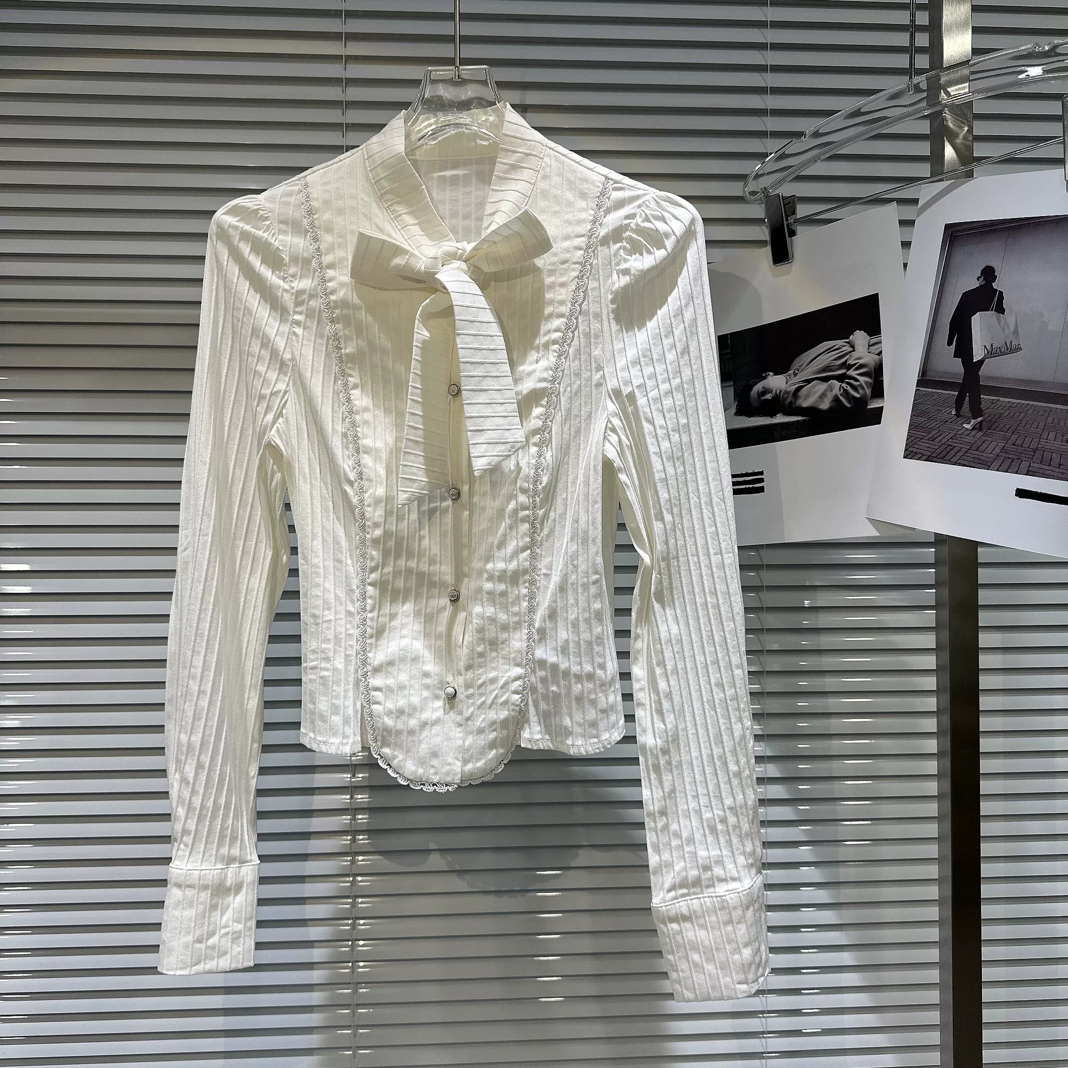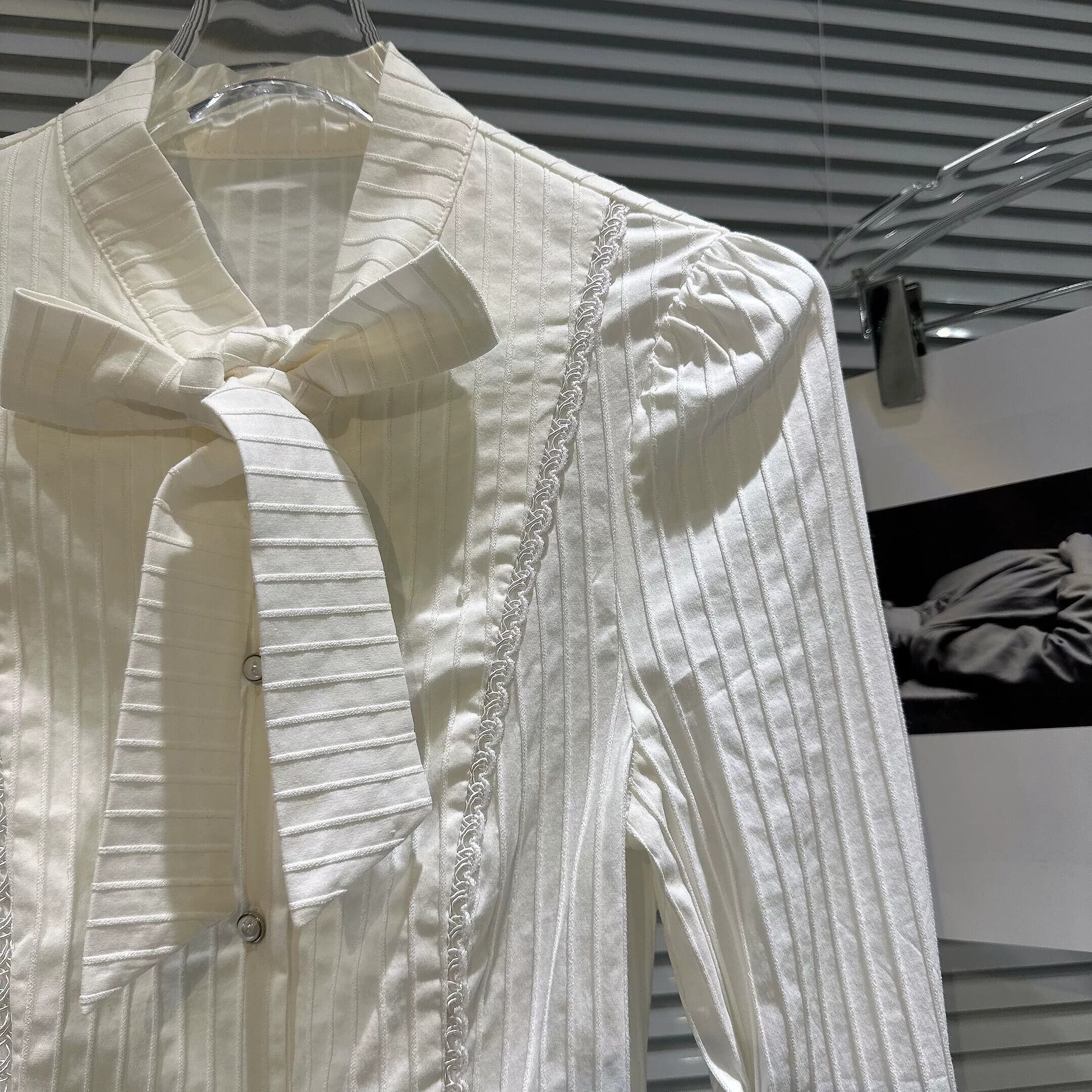 ネット有名人の同じスタイル 2024 春の新スタイルの小さな香りのよいリボン襟プリーツデザインエレガントな女性のシャツシャツ女性 スプリング 春物 gyan3312094243045 | vestitialla
