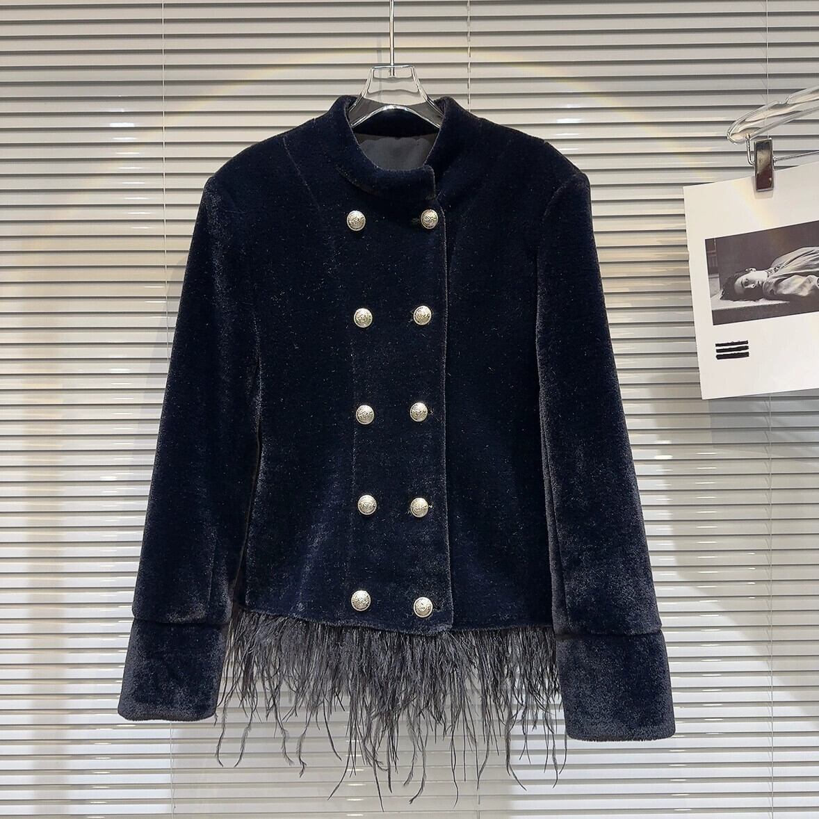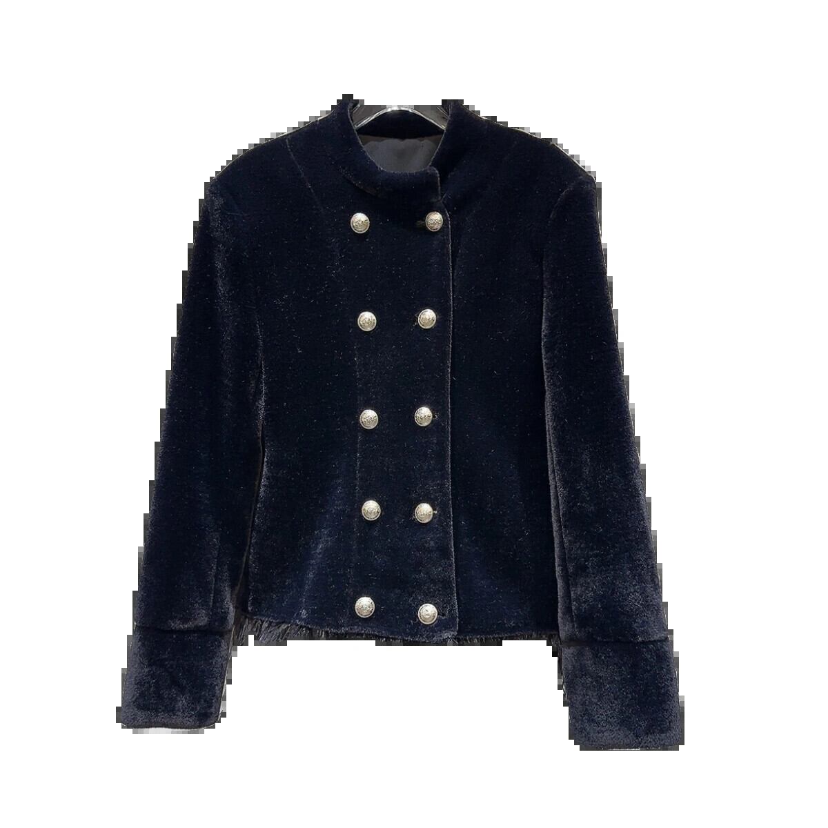 インターネット有名人同じスタイル 2024 冬の新スタイル小さな香りのよい毛皮エッジ金属バックル上質ベルベットキルティングスタンドカラージャケット女性 ウィンター 冬物 gyan3346586279003 | vestitialla