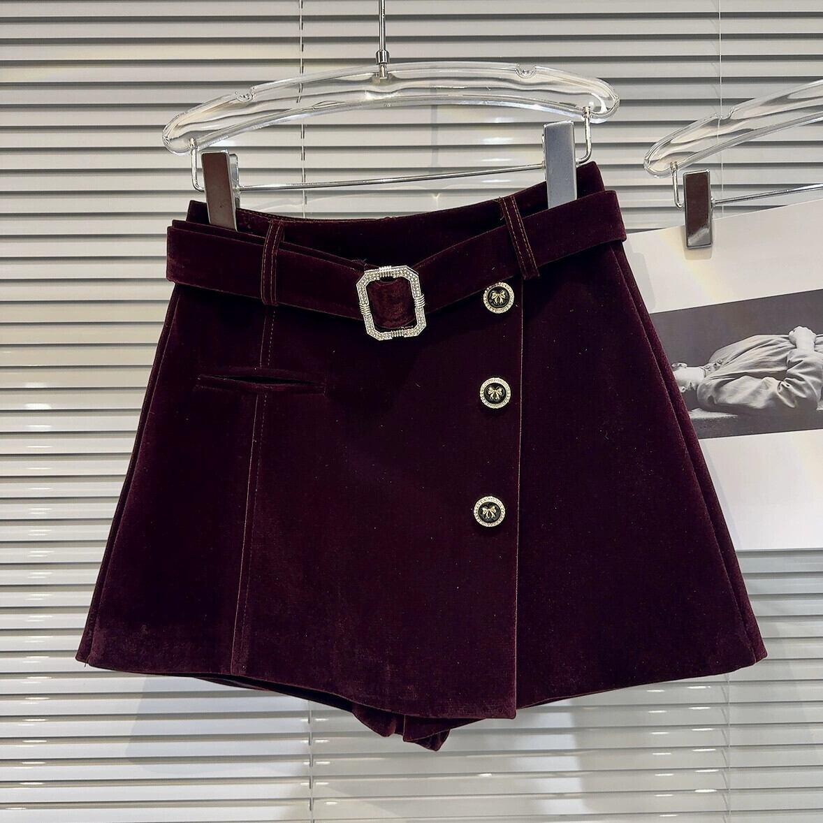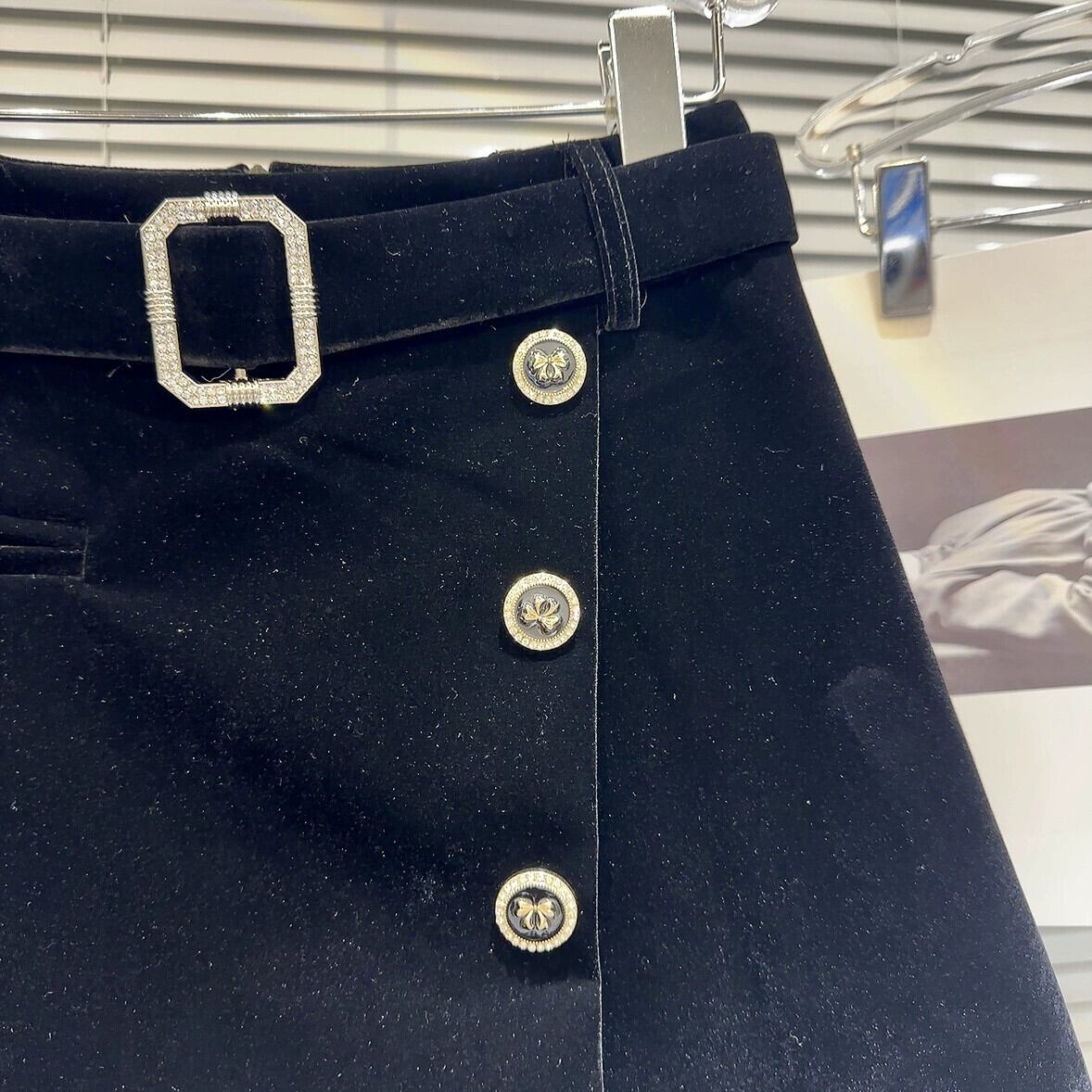 インターネット有名人の同じ2024冬の新しいスタイルの面取りメタルバックルベルトエレガントな女性ベルベットAラインスカートスカート ウィンター 冬物 ハーネス gyan3379677256267 | vestitialla