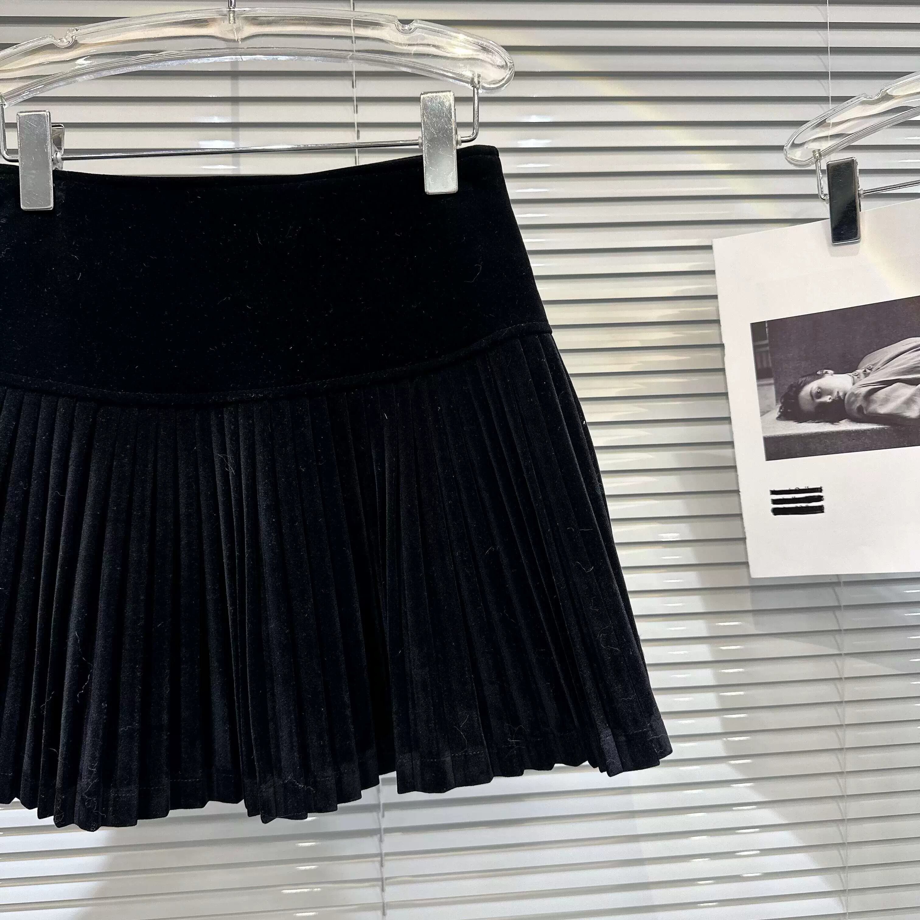 インターネット有名人同じスタイル 2024 春の新ダークレディベルベット生地ハイウエストプリーツスカートショートスカートスカート女性 ハイウェスト スプリング 春物 gyan3384249525243 | vestitialla
