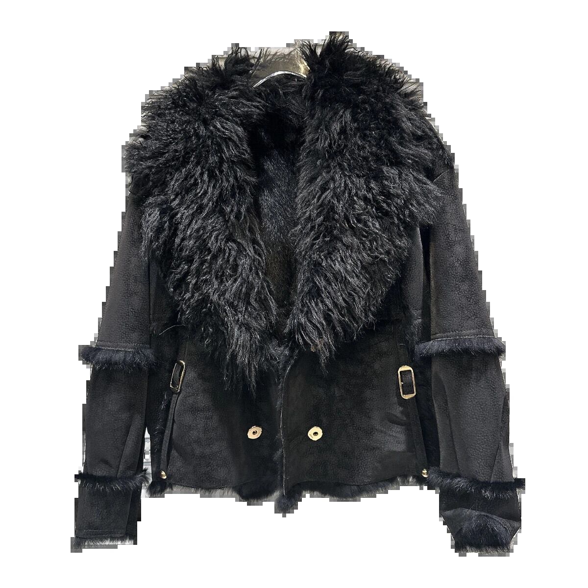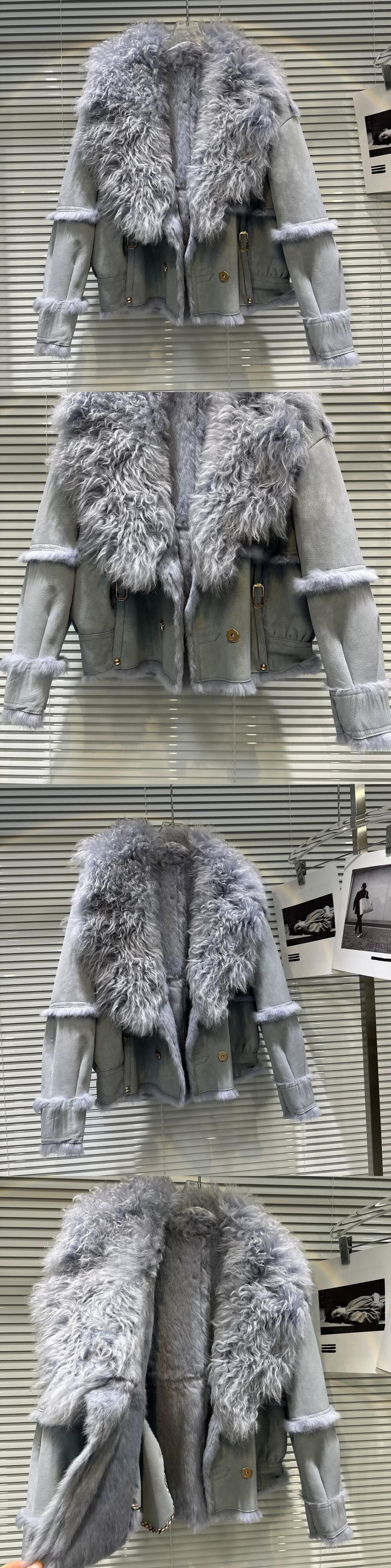 ネット有名人の同じスタイル 2024 新しい冬スタイルフライドストリートラムファー襟ラビットファーライニングファーワンピース暖かいレザージャケット ウィンター 冬物 gyan3371564619055 | vestitialla