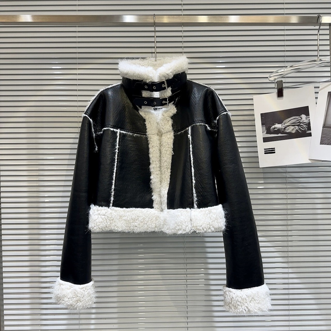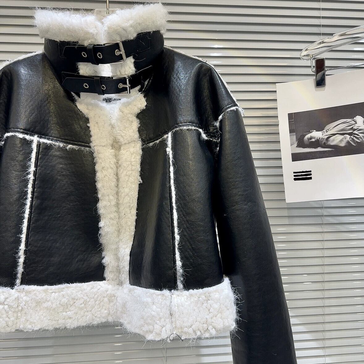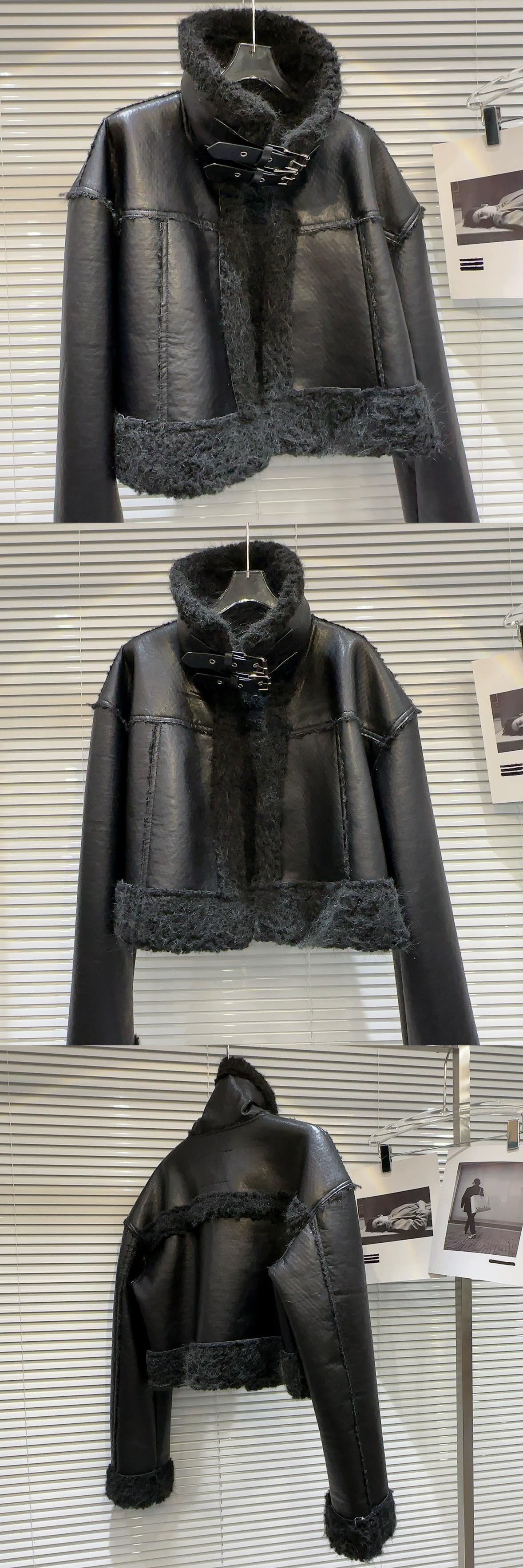 ネット有名人同スタイル2024冬新作ストリートベルトバックル襟デザイン毛皮ワンピースバイクジャケットレザージャケット ウィンター 冬物 ハーネス gyan334402759808 | vestitialla