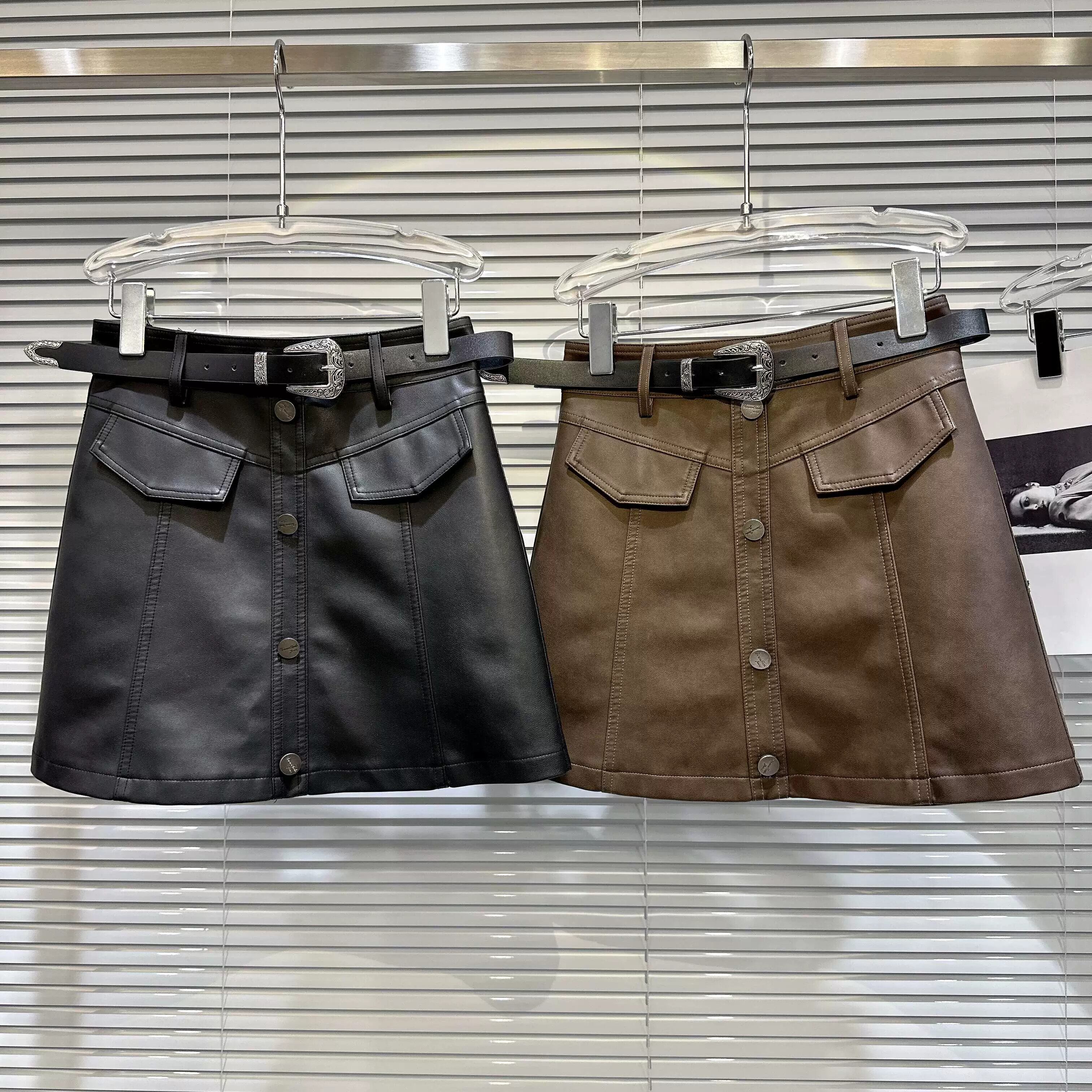 ネットセレブ同スタイル20242春新作ダークメタル彫刻ベルトポケットPUレザースカートショートスカートAラインスカート スプリング 春物 ハーネス gyan3334160496476 | vestitialla