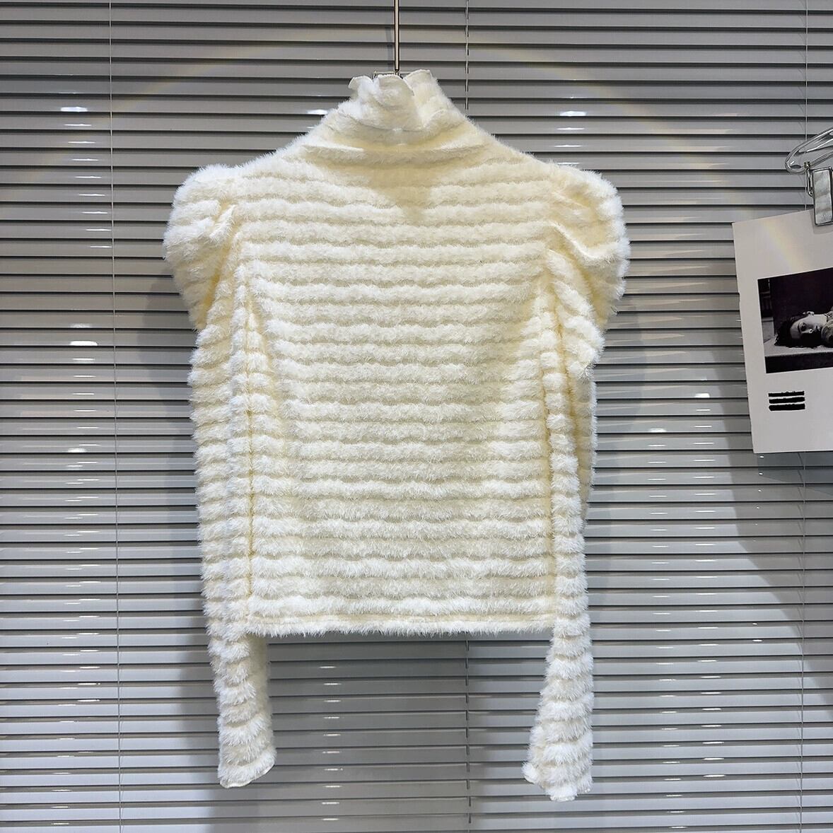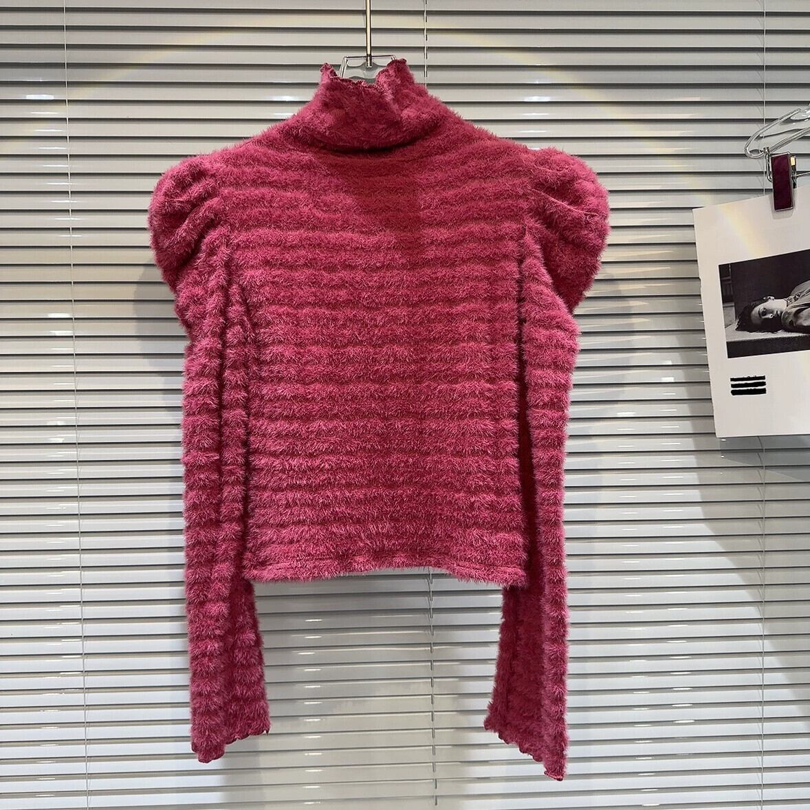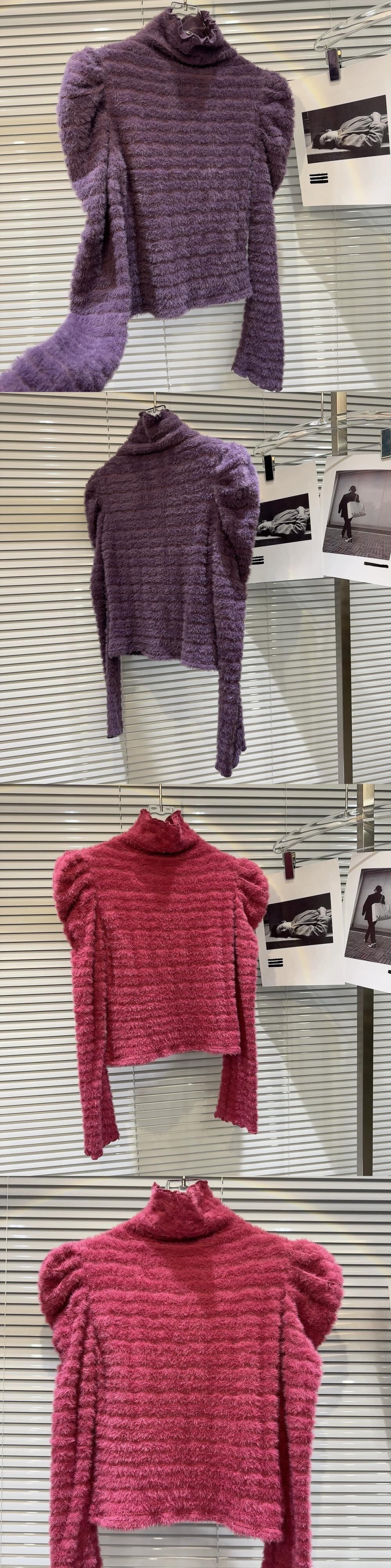 インターネット有名人同じスタイル 2024 新しい冬スタイル小さな香りパフスリーブ毛皮のようなモヘアハイカラーセーター小さなシャツ女性 ウィンター 冬物 gyan3394819793742 | vestitialla