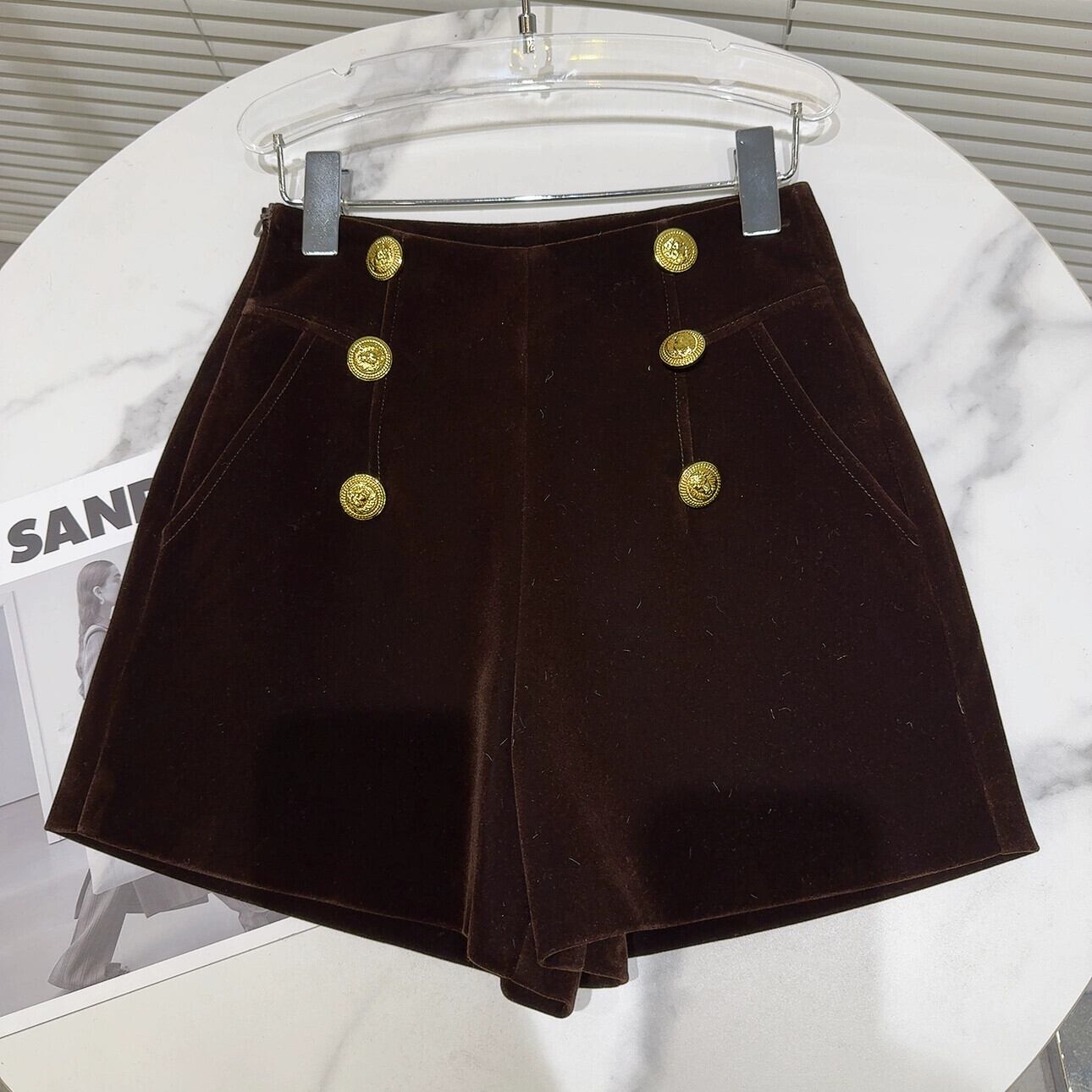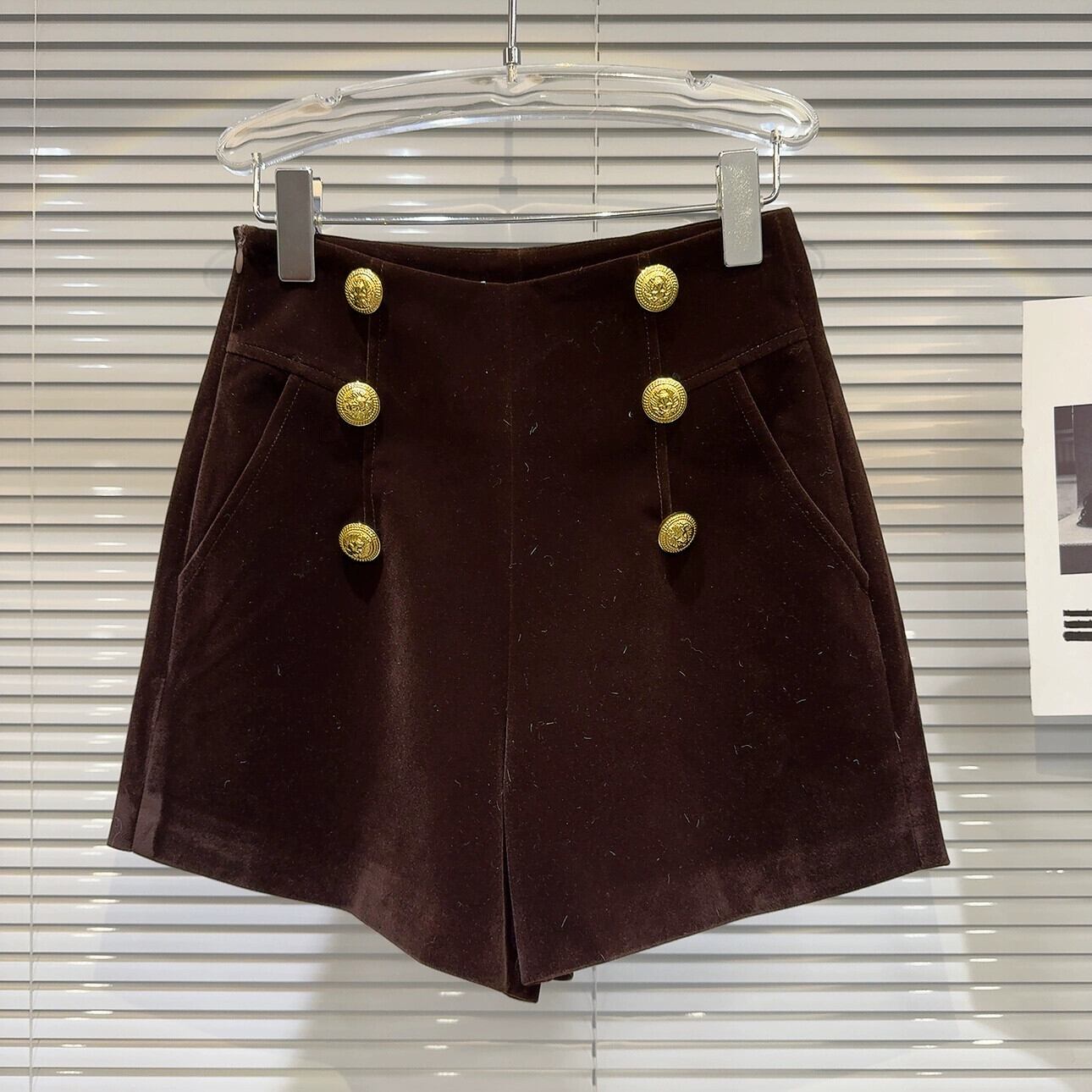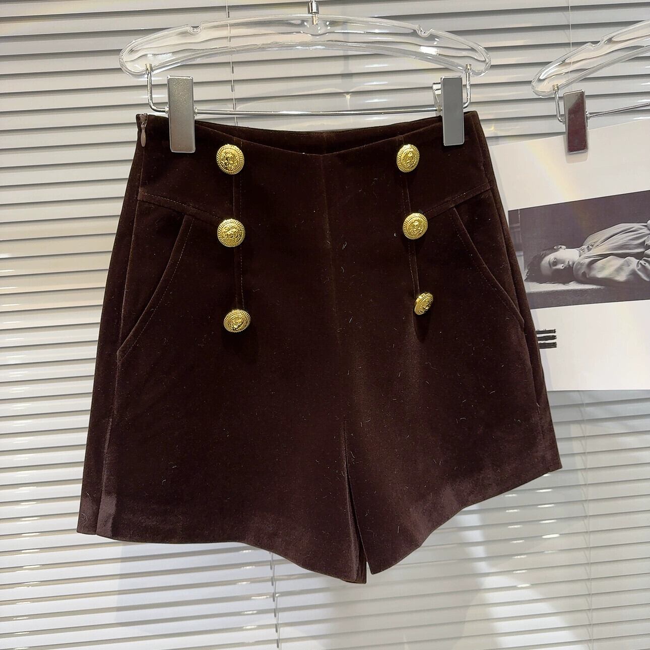 インターネット有名人の同じスタイル2024冬の新しいニッチスタイル二列メタルバックルベルベット生地エレガントな女性のショートパンツブーツパンツ ウィンター 冬物 ショーツ ブルマー gyan333179863307 | vestitialla