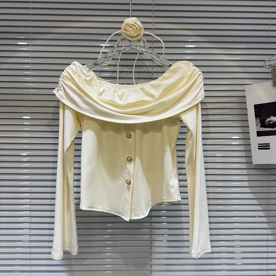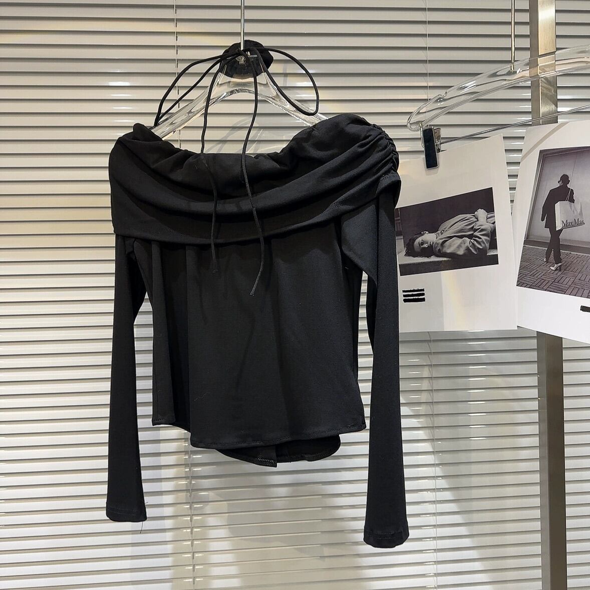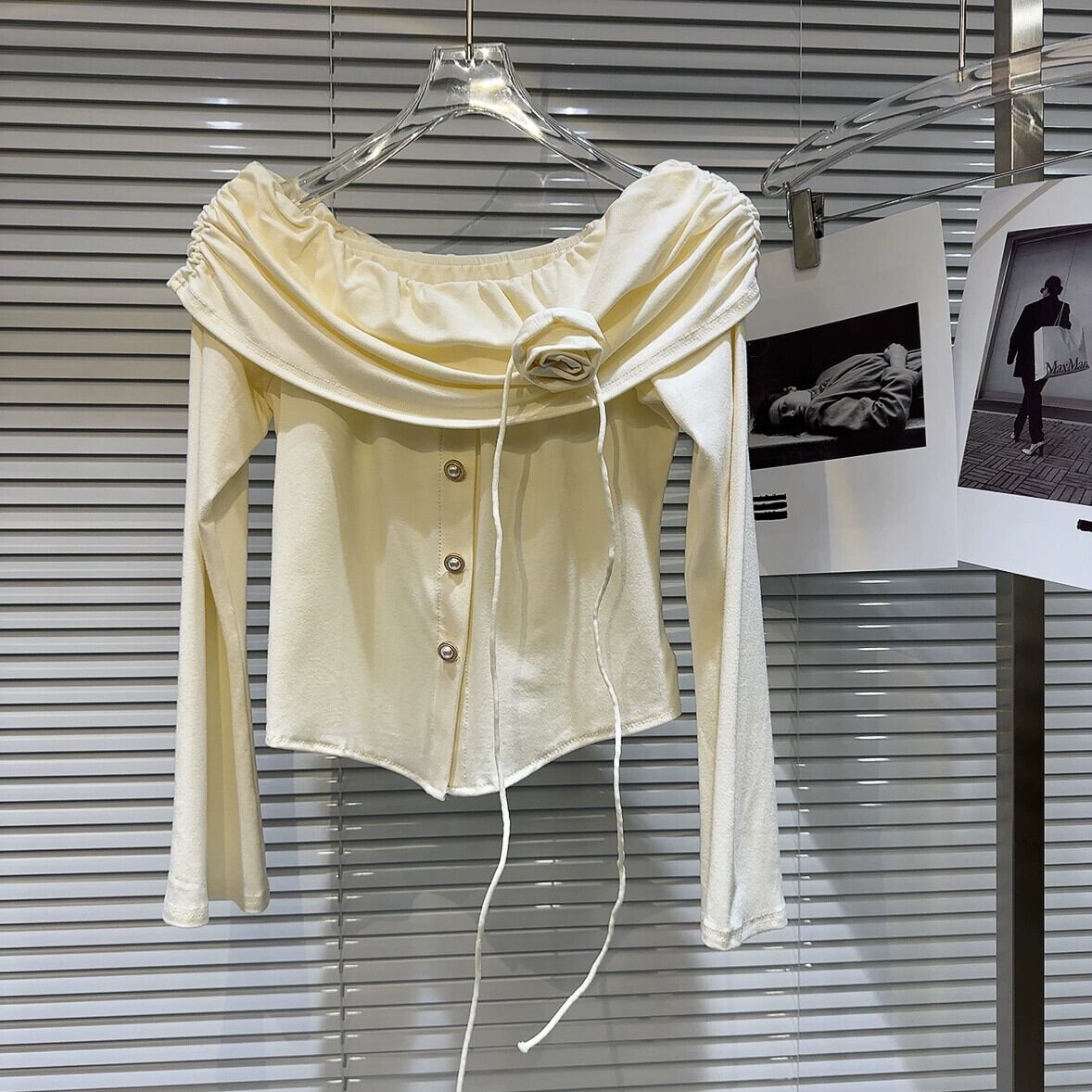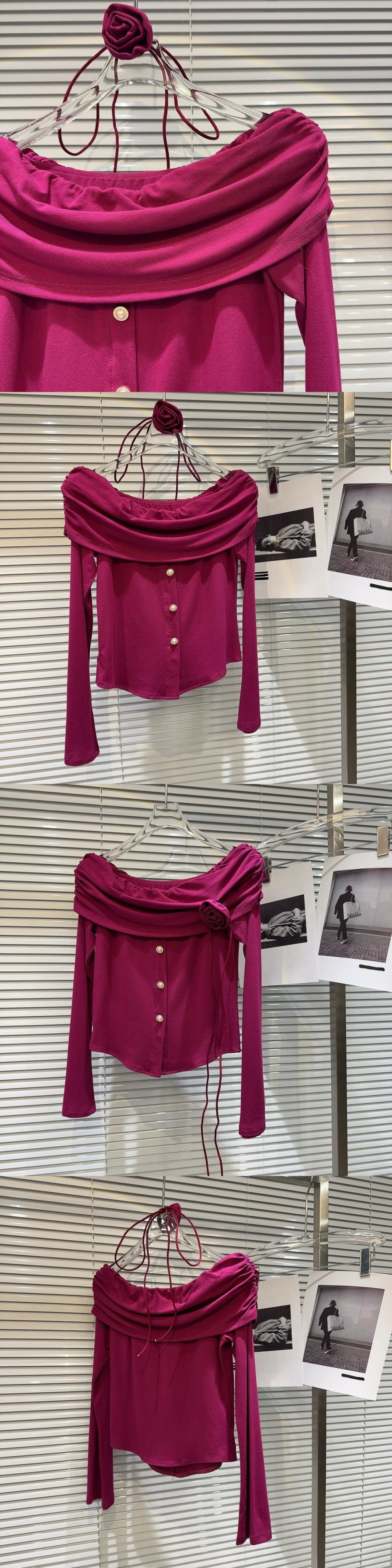 インターネット有名人の同じスタイル2024冬の新しいスタイル小さな香りの女性の花ホルターネックストラップワンショルダーショールTシャツ小さなシャツ ウィンター 冬物 フラワーデザイン gyan3394915800882 | vestitialla