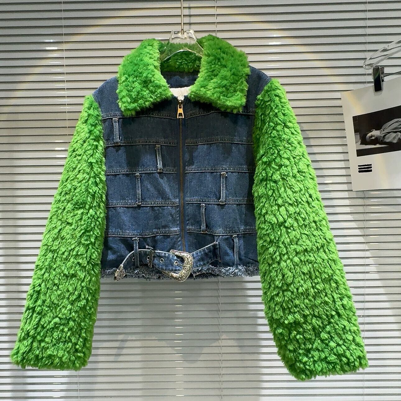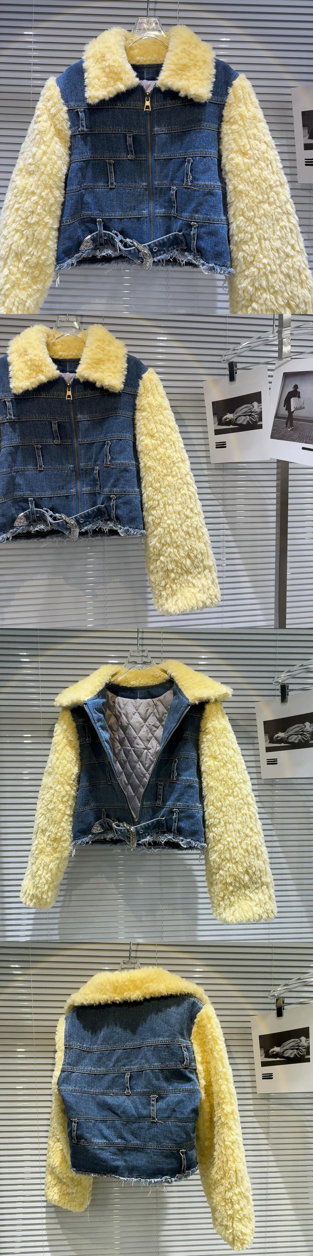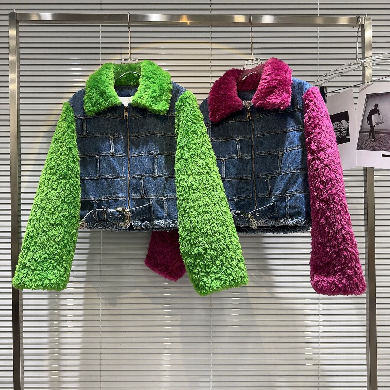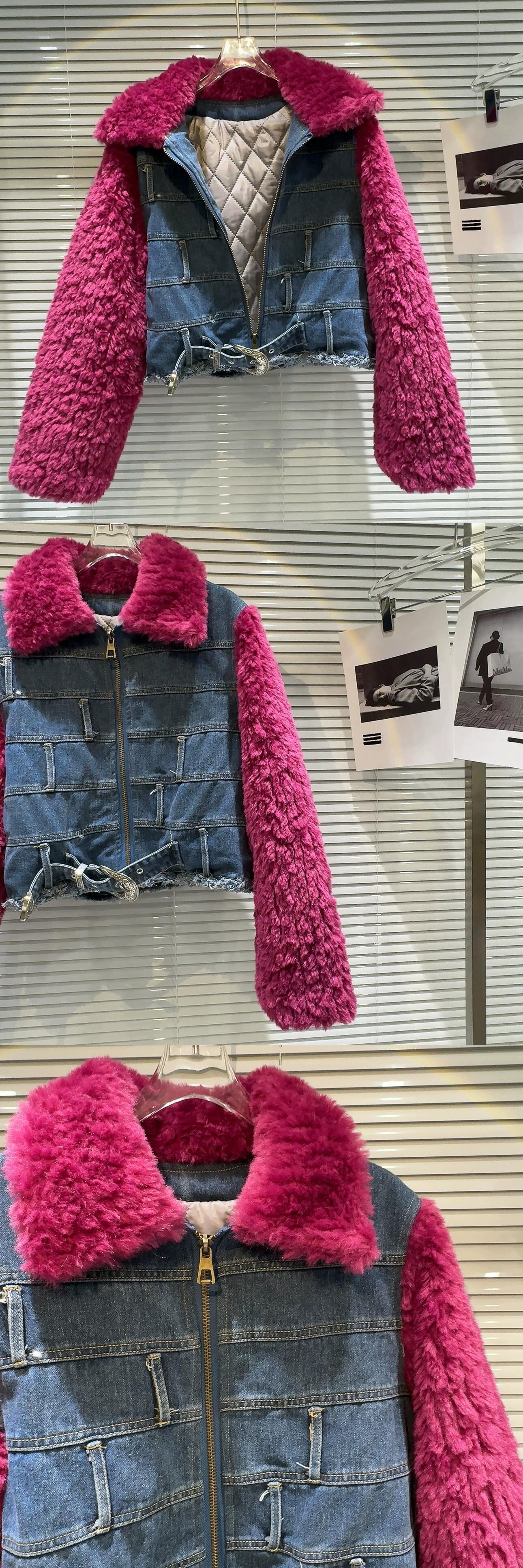 インターネット有名人の同じ2024冬の新しいニッチスタイルキャンディーカラーのポーラーフリーススプライシングデニムキルティングショートジャケット レッド ウィンター 冬物 gyan3328463511935 | vestitialla