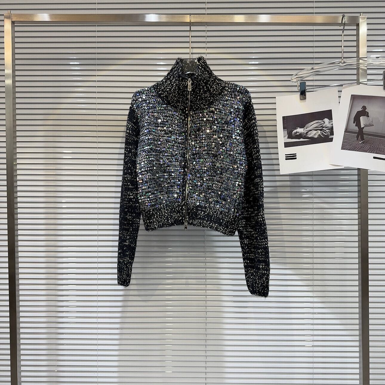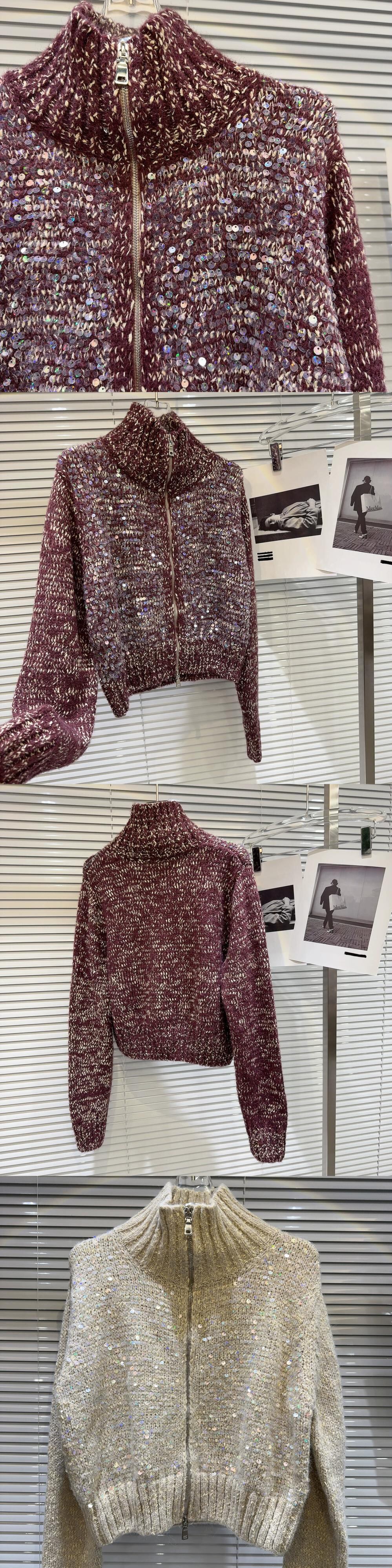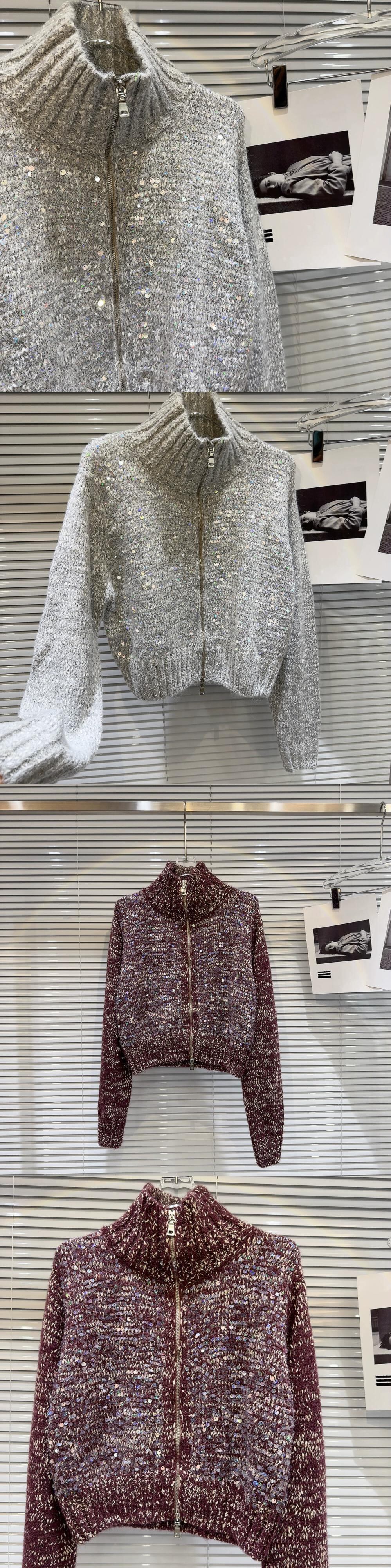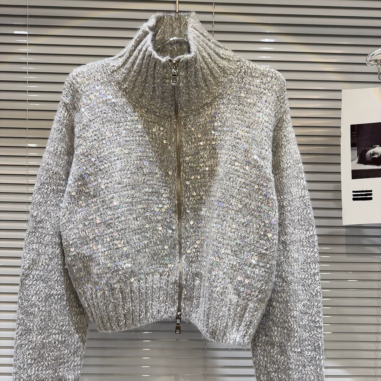 インターネット有名人の同じスタイル 2024 冬の新しいニッチスタイル重工業グラデーションスパンコールデザインニットセータージャケットカーディガン女性 ウィンター 冬物 gyan3310905242262 | vestitialla