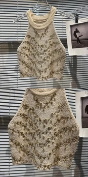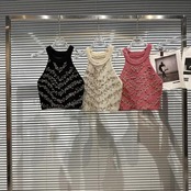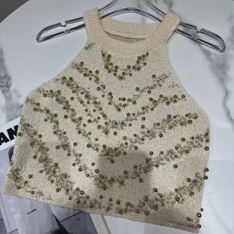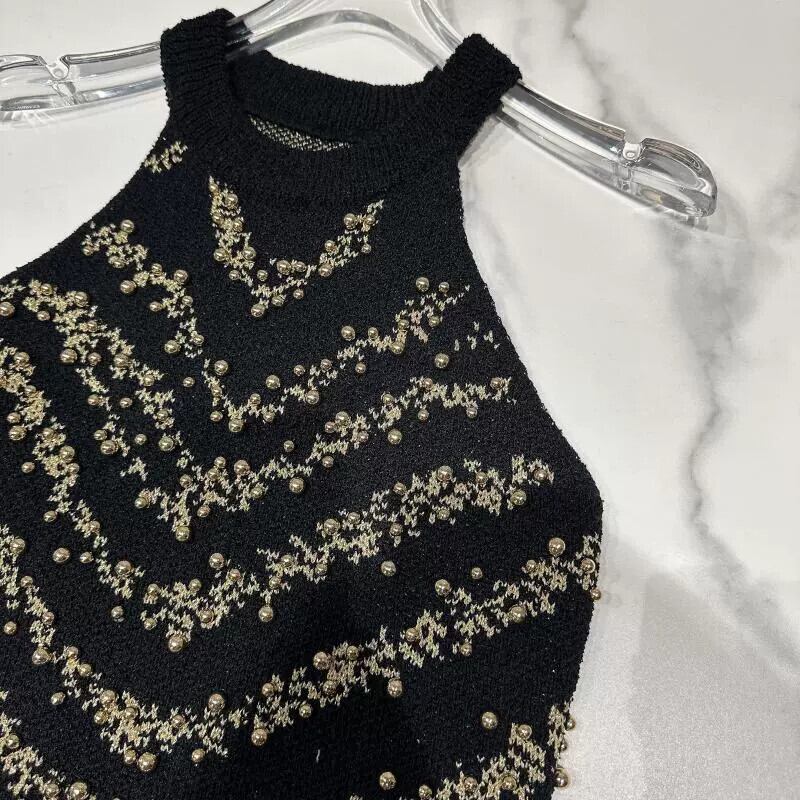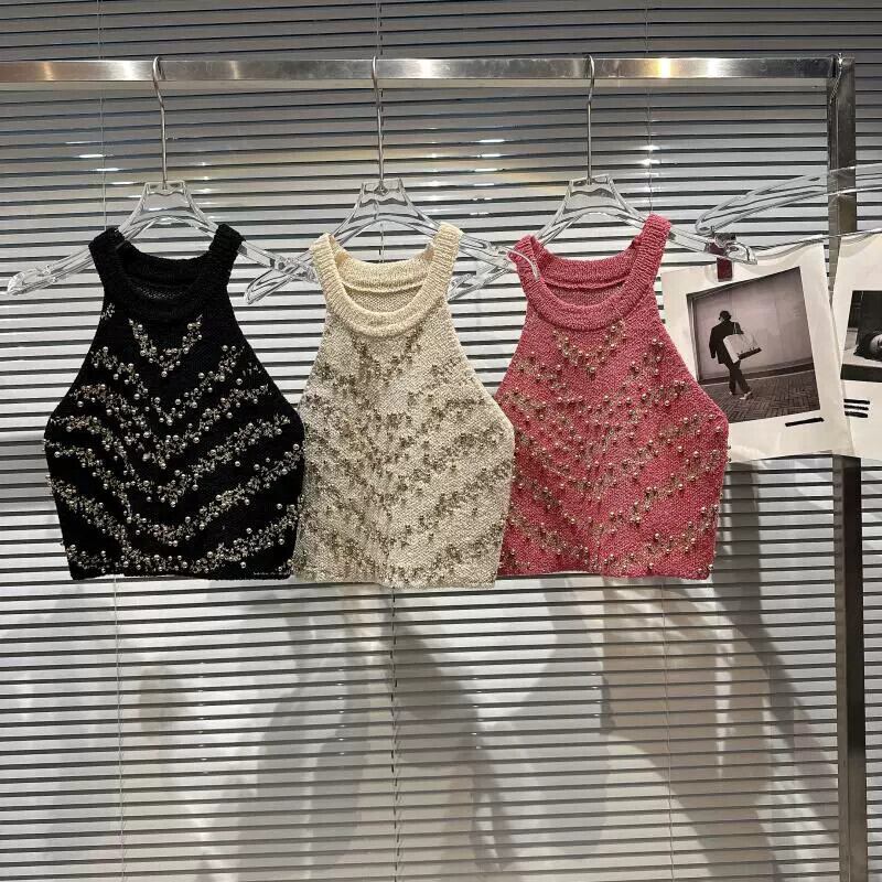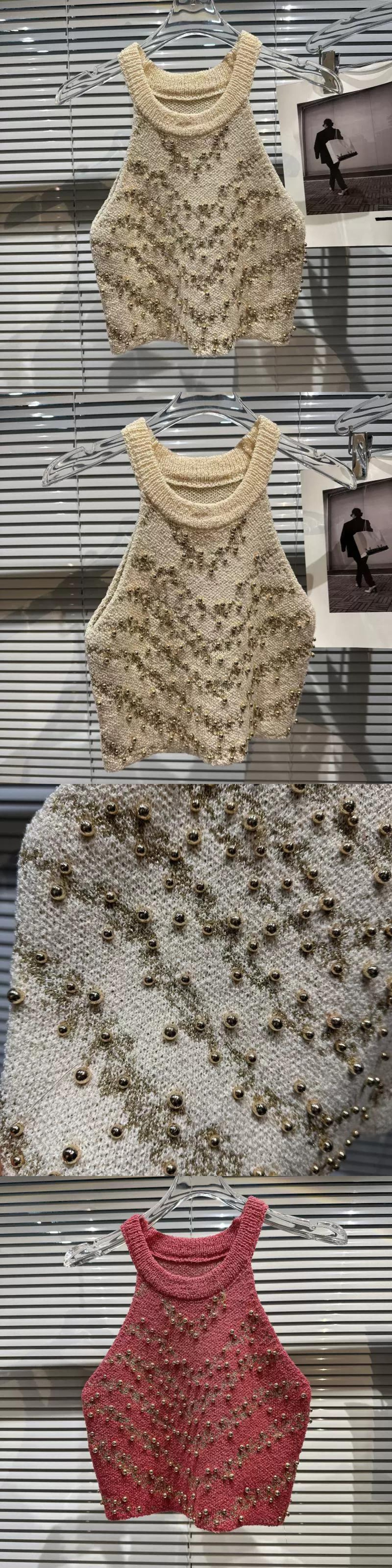 インターネットセレブの同じスタイル 2024 春の新スタイル小さな香りのスタイルセレブビーズホルターデザインショートニットベスト女性 スプリング 春物 gyan33393491838 | vestitialla