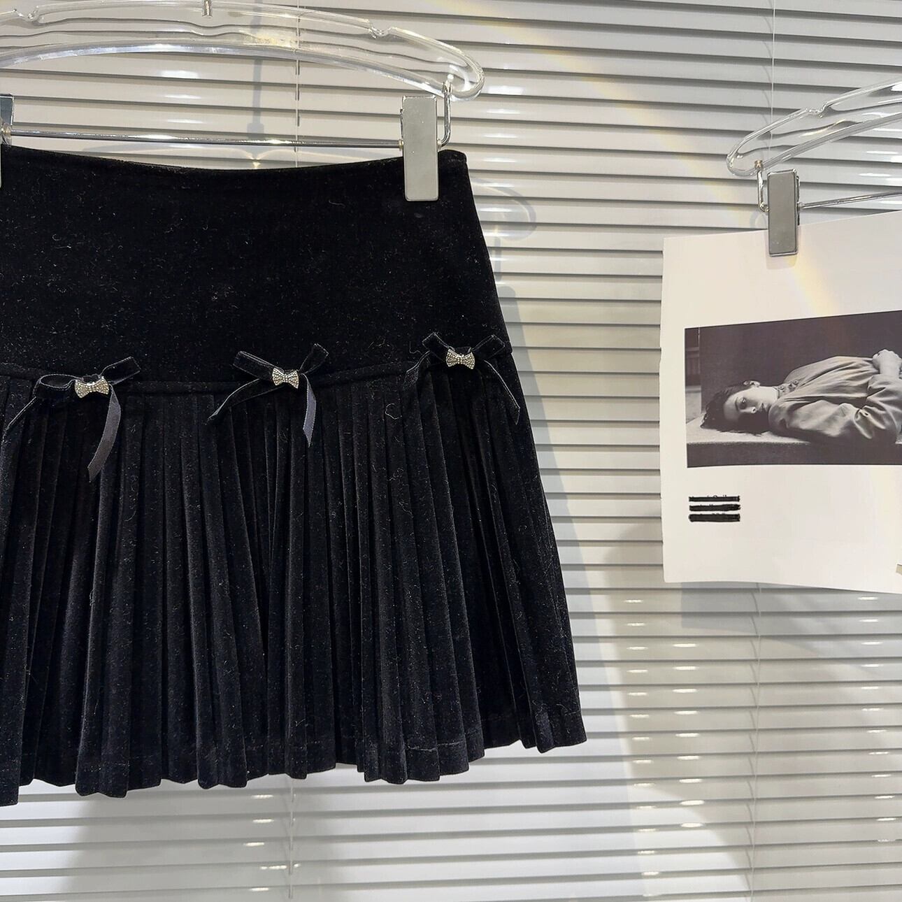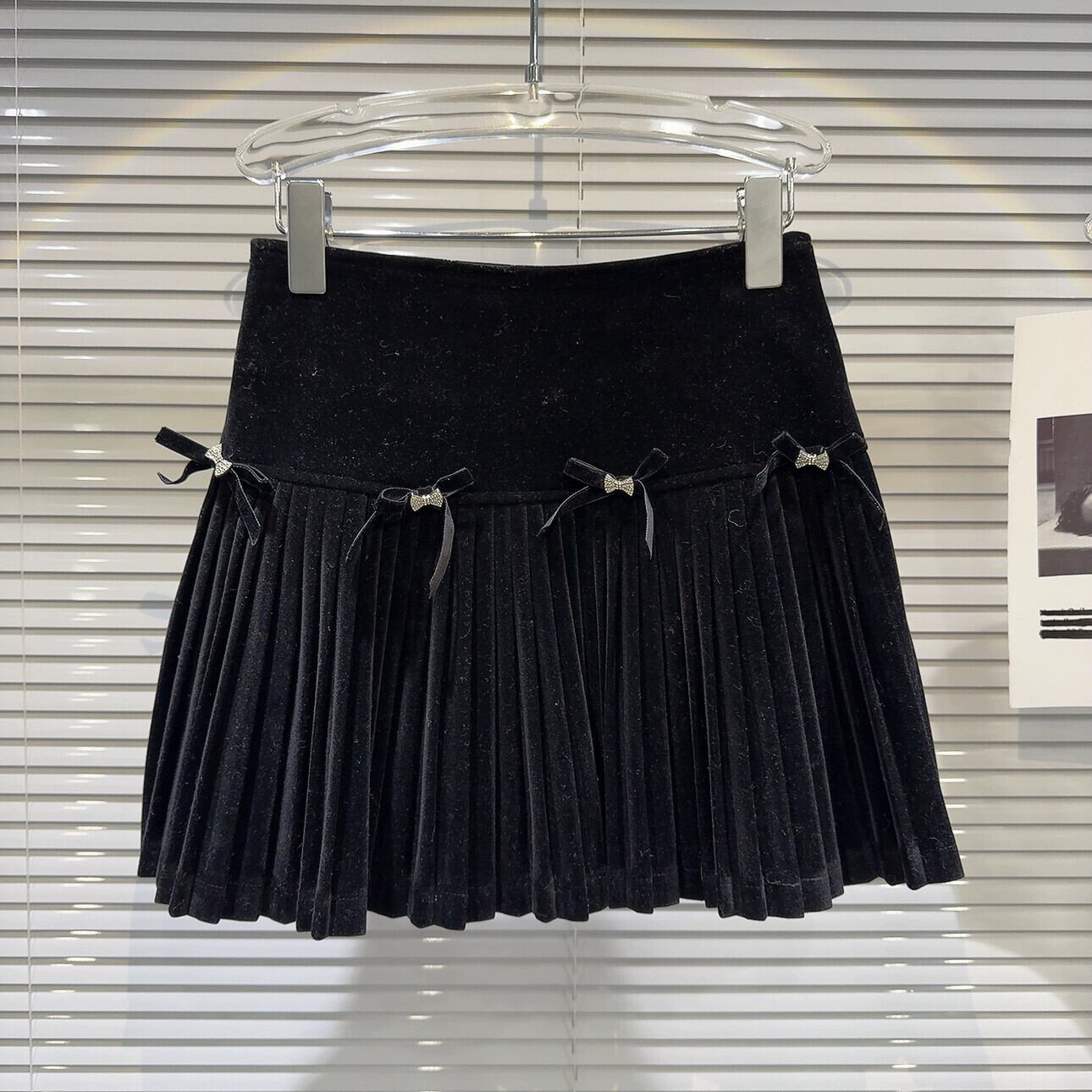 インターネット有名人同じスタイル2024冬の新スタイル小さな香りラインストーンリボンダークベルベットプリーツスカートスカート ウィンター 冬物 gyan3386224718582 | vestitialla