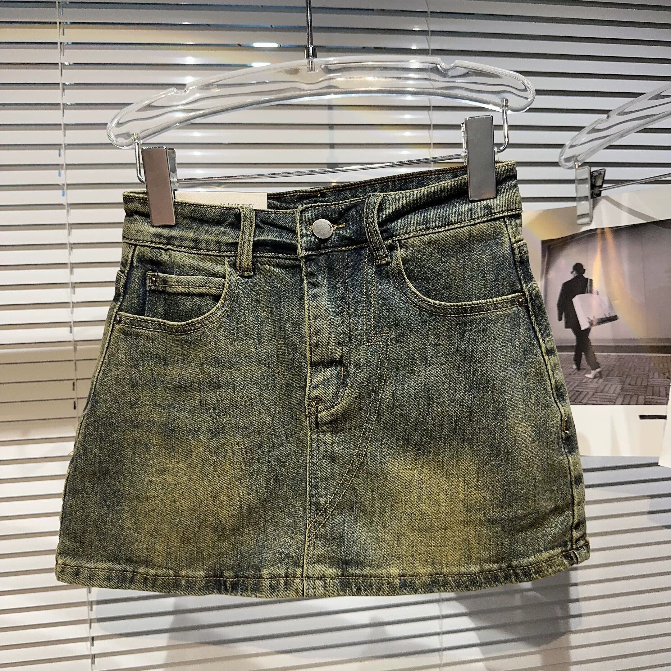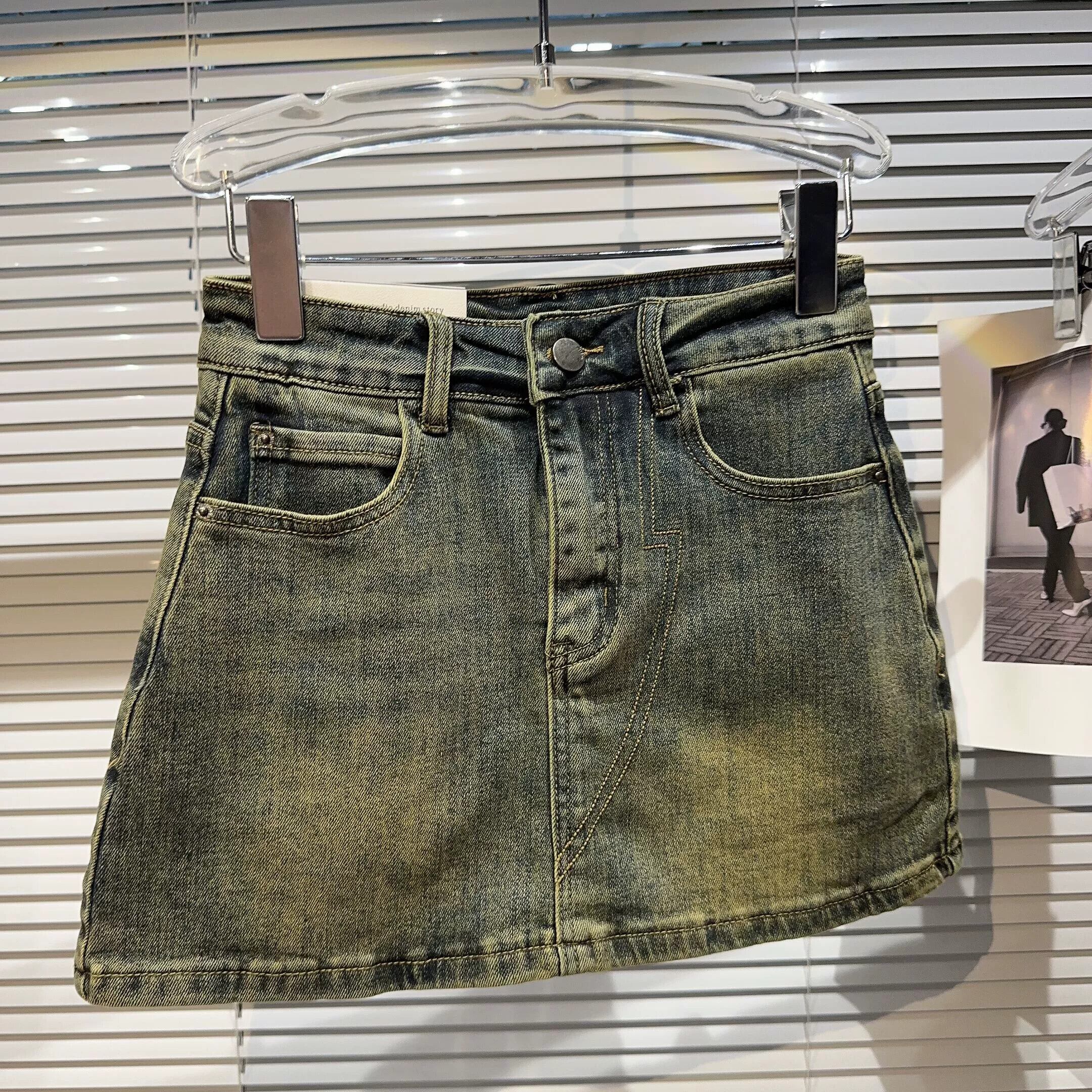 ネット有名人同スタイル2024春新作ストリートスタイルウォッシュ&エイジングタイトデニムヒップカバースカートショートスカート スプリング 春物 gyan3367649783279 | vestitialla