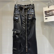 インターネットセレブと同じスタイル 2024 春の新作ダーク作業服ポケットジッパーデザイン PU レザースカートロングレザースカート スプリング 春物 gyan3394493231764 | vestitialla