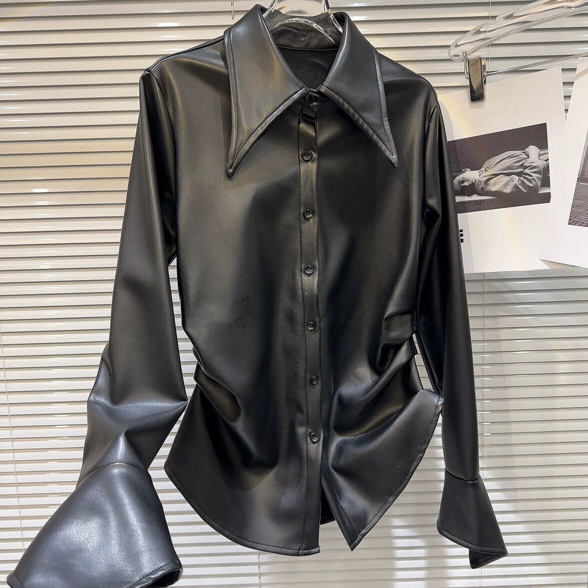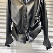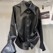 インターネットセレブの同じスタイル2024春の新しいストリートスタイルプリーツサイドデザインウォッシュレザーダークシャツシャツ スプリング 春物 gyan3380509654678 | vestitialla