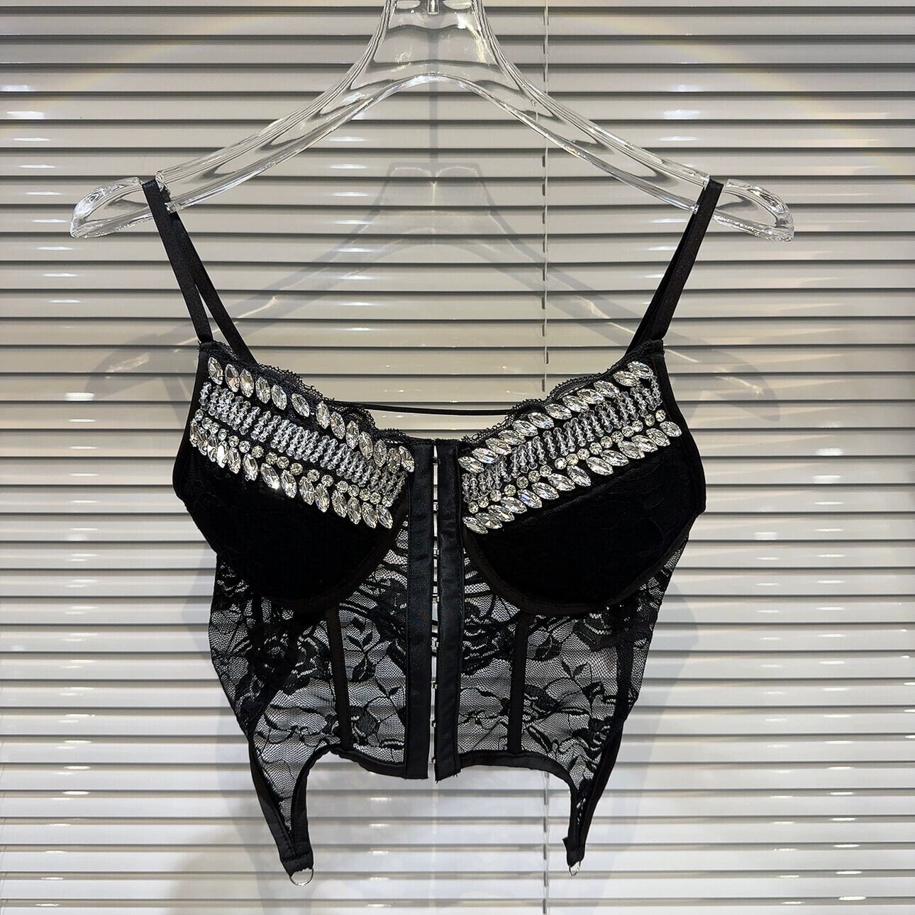 インターネットセレブと同じスタイル 2024 春の新セクシーなセレブのラインストーンビーズエッジレースヘリンボーンウエストストラップチューブトップ女性 スプリング 春物 gyan3332967045615 | vestitialla