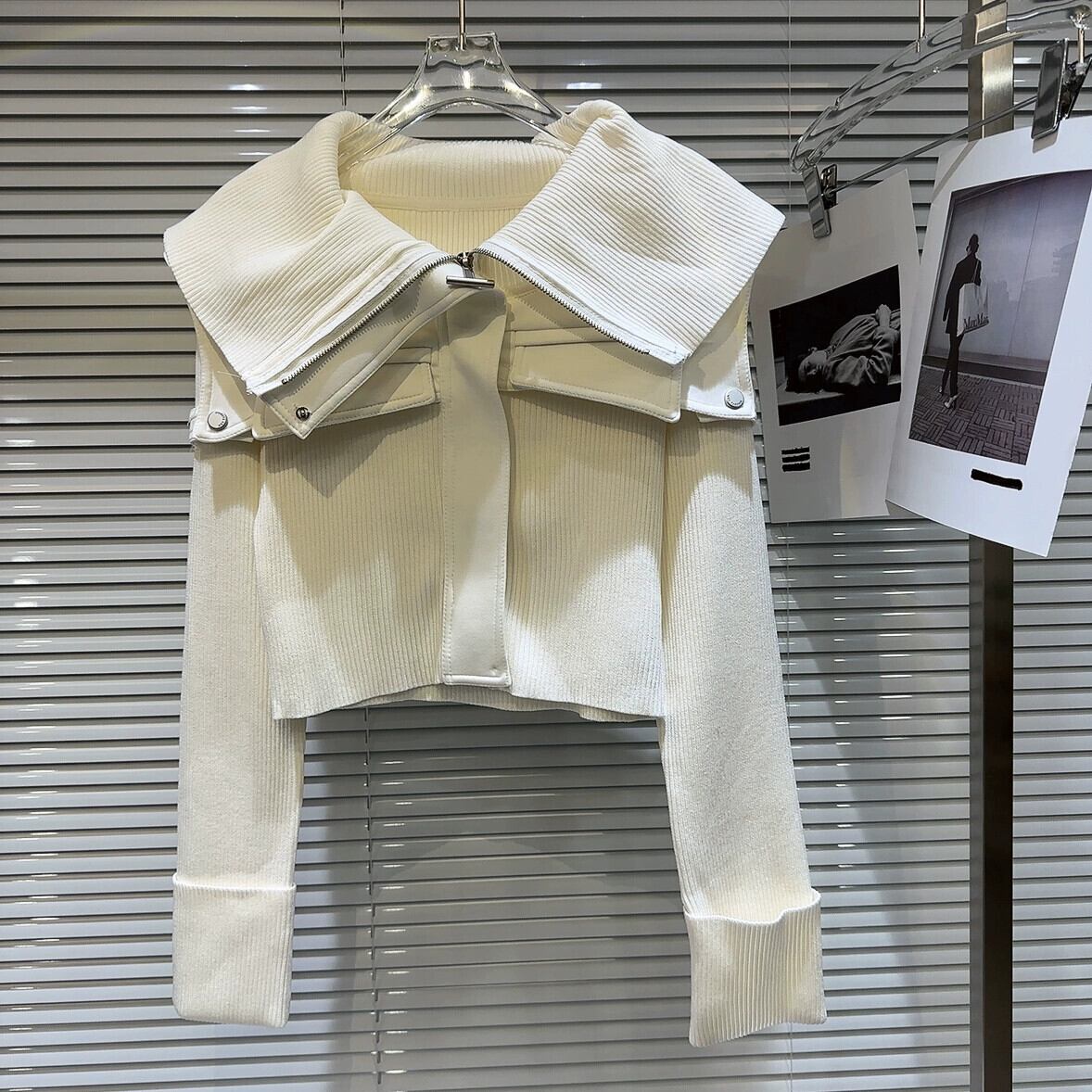 インターネットセレブと同じスタイル 2024 春の新ニッチメタルジッパーパッチワークポケットラペルダークセータージャケット スプリング 春物 gyan3370716970942 | vestitialla