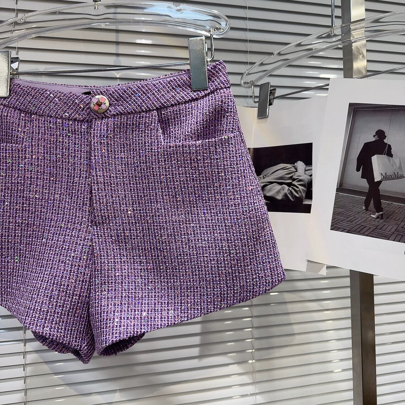 ネット有名人の同じ2024春の新しいスタイルの小さな香りの良いスパンコール付きシルクツイードメタルバックルベスト+ショーツセット スプリング 春物 ブルマー gyan3320072109091 | vestitialla