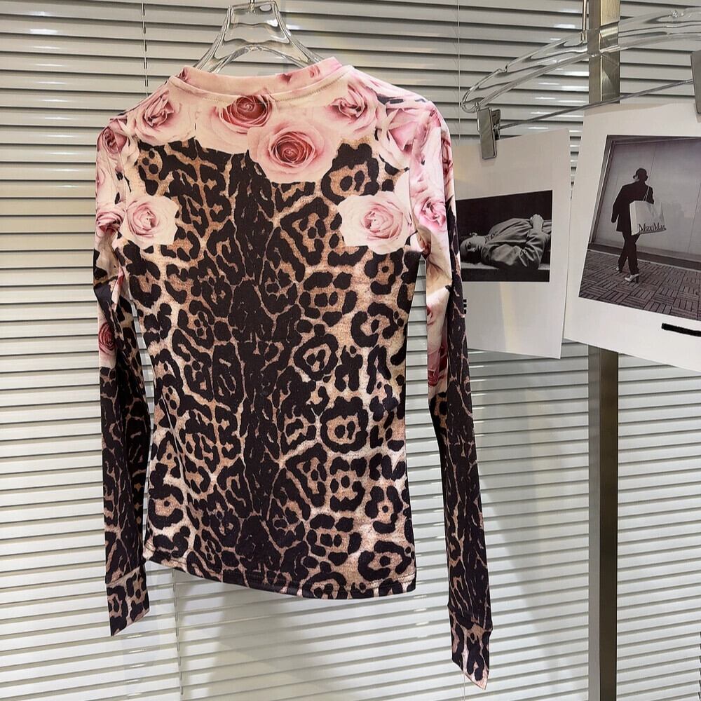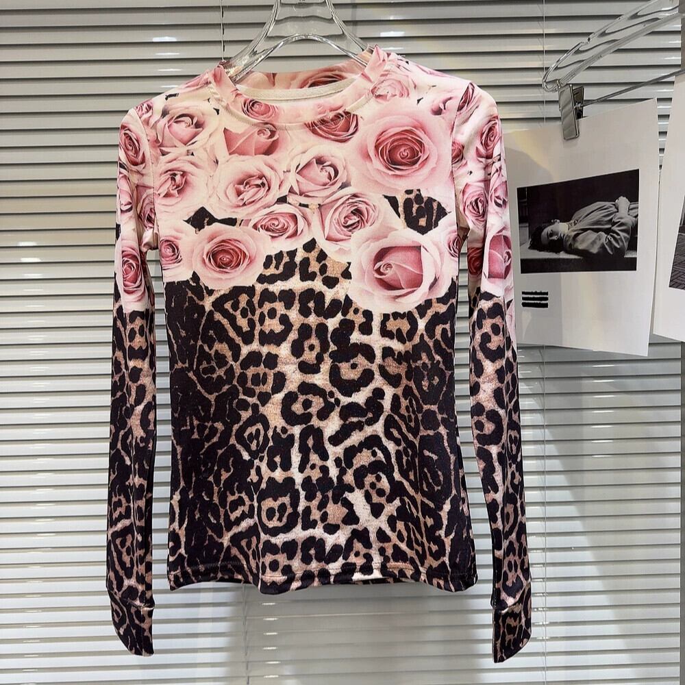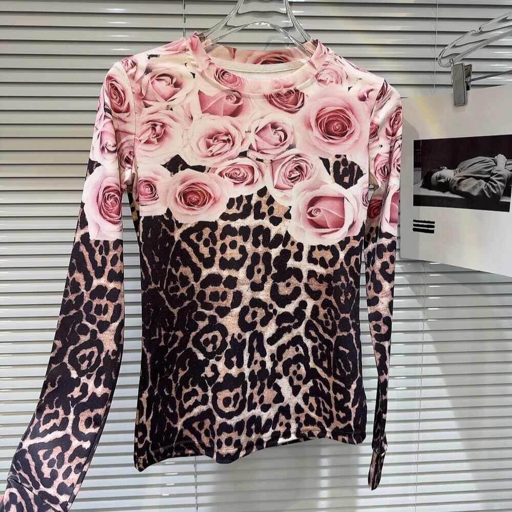 インターネット有名人の同じスタイル2024春の新しいニッチスタイルローズコントラストヒョウ柄長袖ボトムTシャツレディース ロング スプリング 春物 gyan3381860131436 | vestitialla