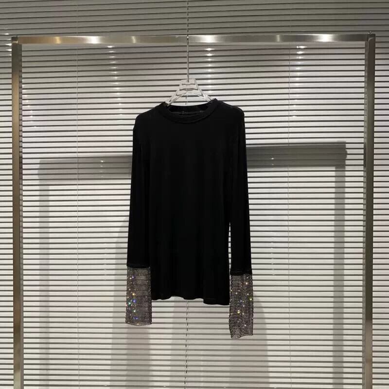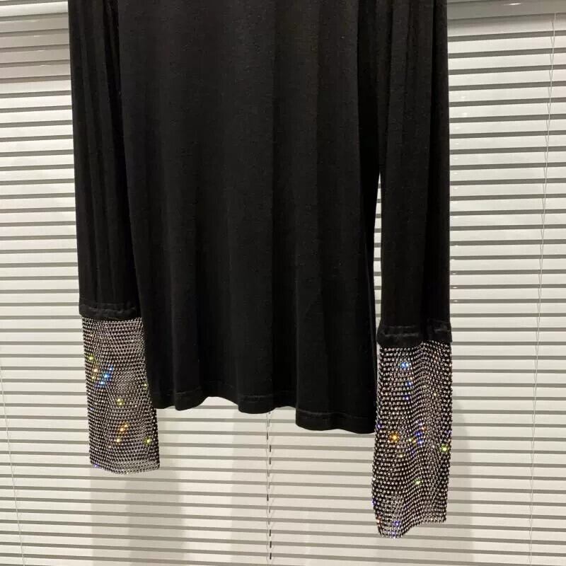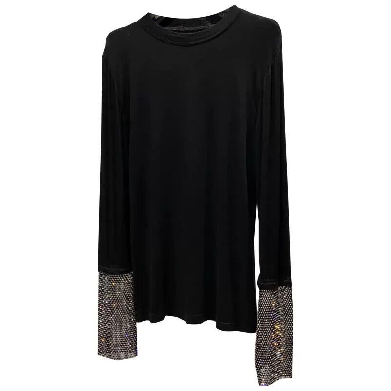 インターネット有名人同じスタイル 2024 春の新ラインストーンメッシュスプライシング袖弾性スリム長袖ボトム Tシャツ小さなシャツ女性 ロング エラスティック 伸縮 スプリング 春物 gyan3343562865385 | vestitialla