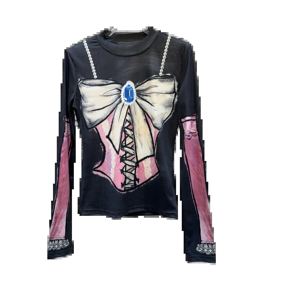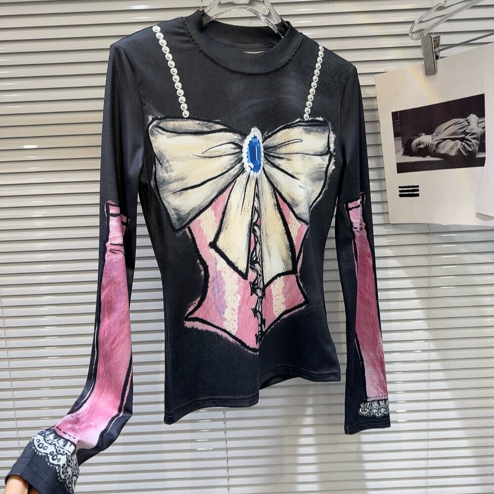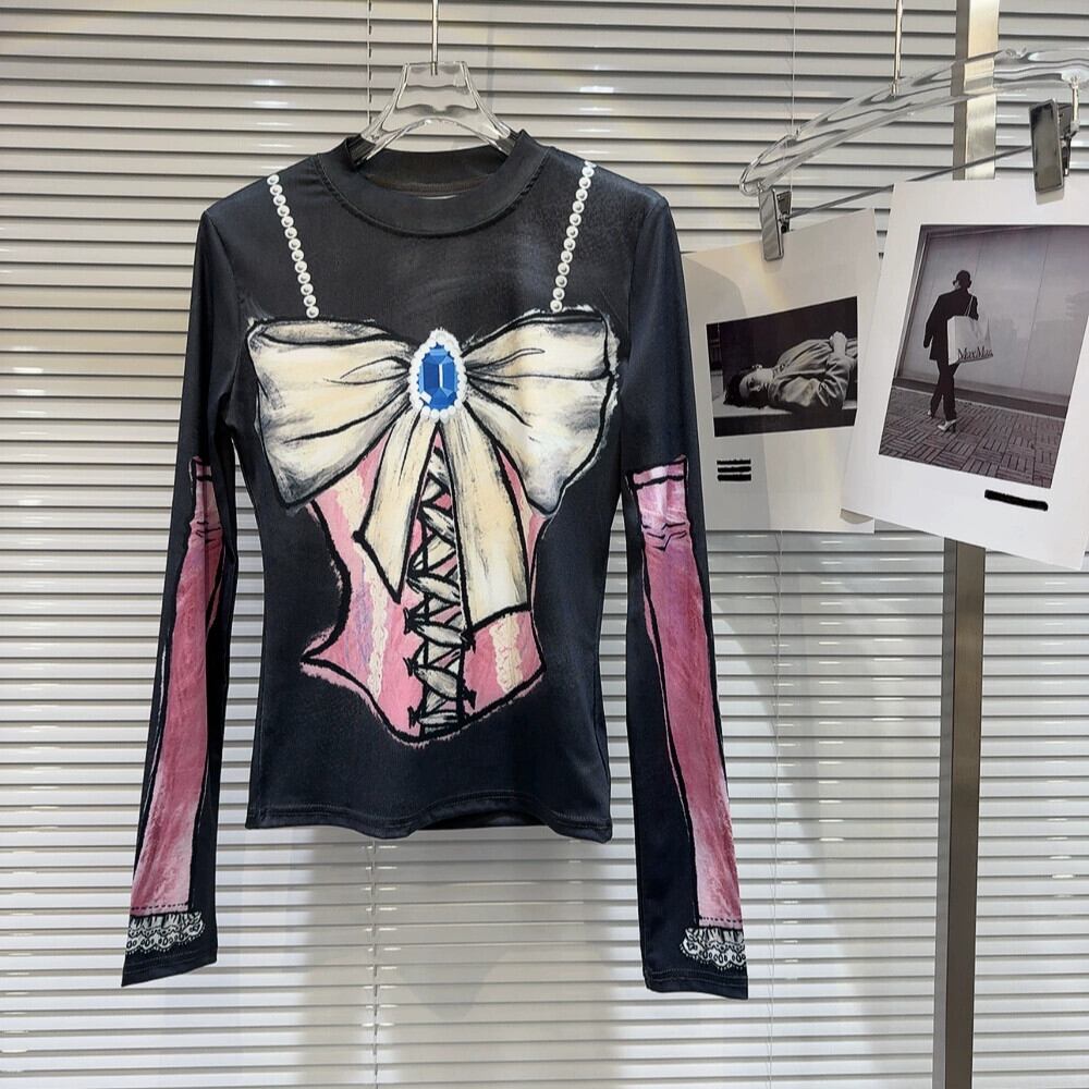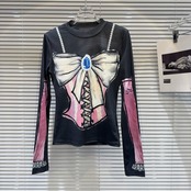 インターネットセレブと同じスタイル 2024 初春の新しいニッチスタイルカラフルな手描きのリボンデザイン底メッシュ Tシャツ女性 スプリング 春物 gyan3399722960015 | vestitialla