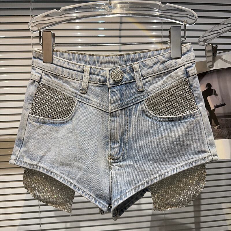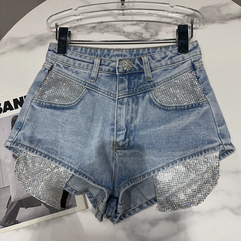 ネットセレブと同じスタイル 2024 春の新作ストリートメタルダイヤモンドポケット漏れデザイン 3 点デニムショーツ女性 スプリング 春物 ブルマー gyan3335358773674 | vestitialla